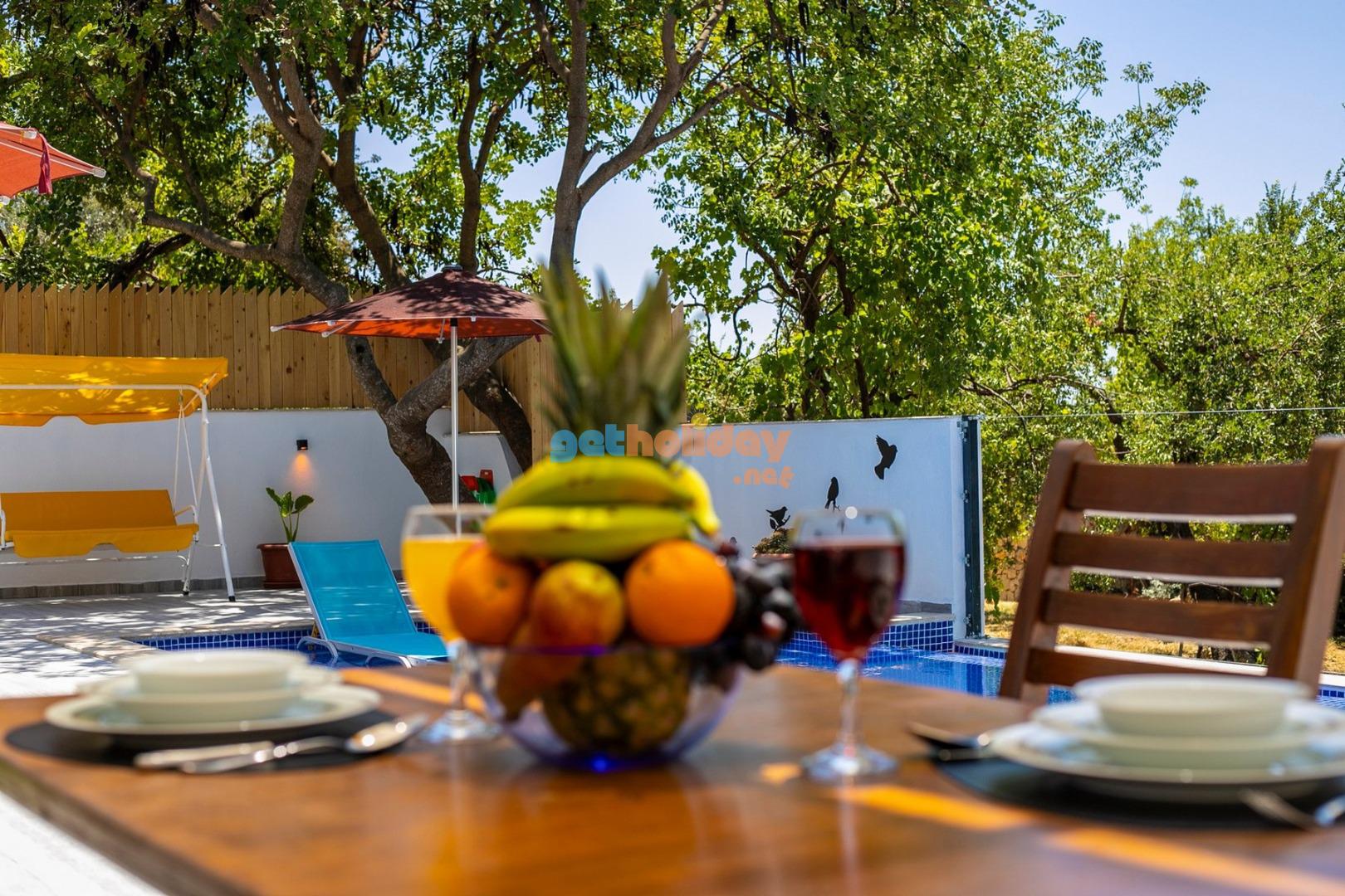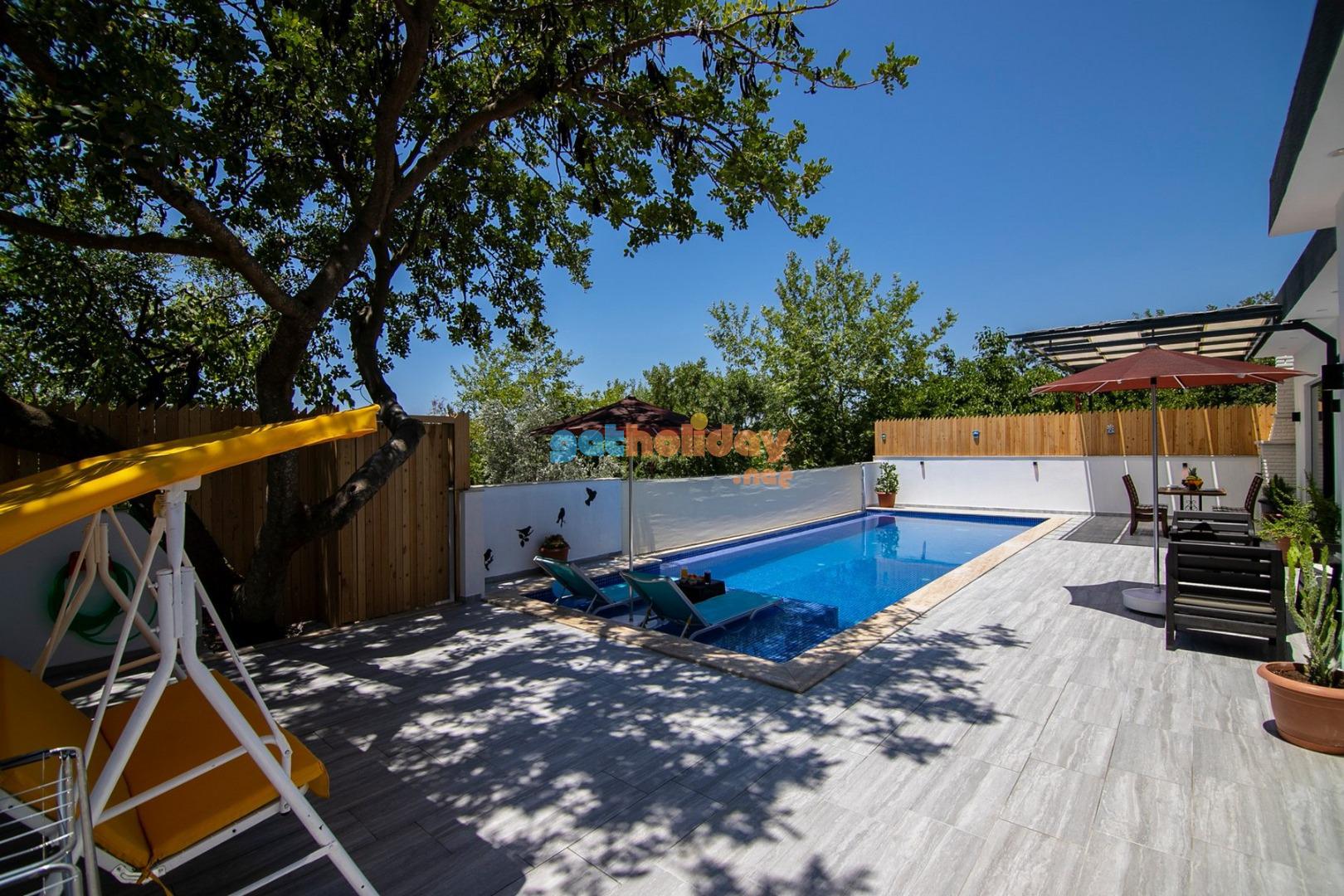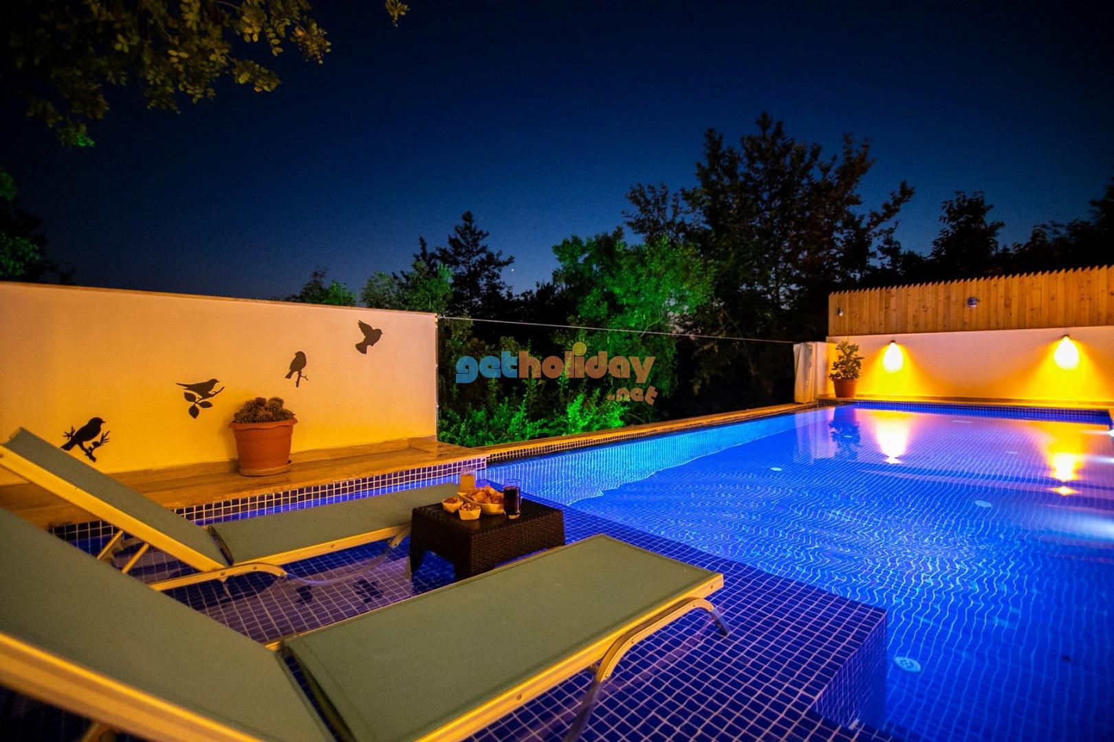 Bahçe : Villamızın bahçesinde özel yüzme havuzu, güneşlenmeniz için 2 adet şezlong, güneşlenme terası, 4 kişilik masa, oturma grubu, mangal keyfiniz için barbekü, güneş şemsiyesi bulunmaktadır.