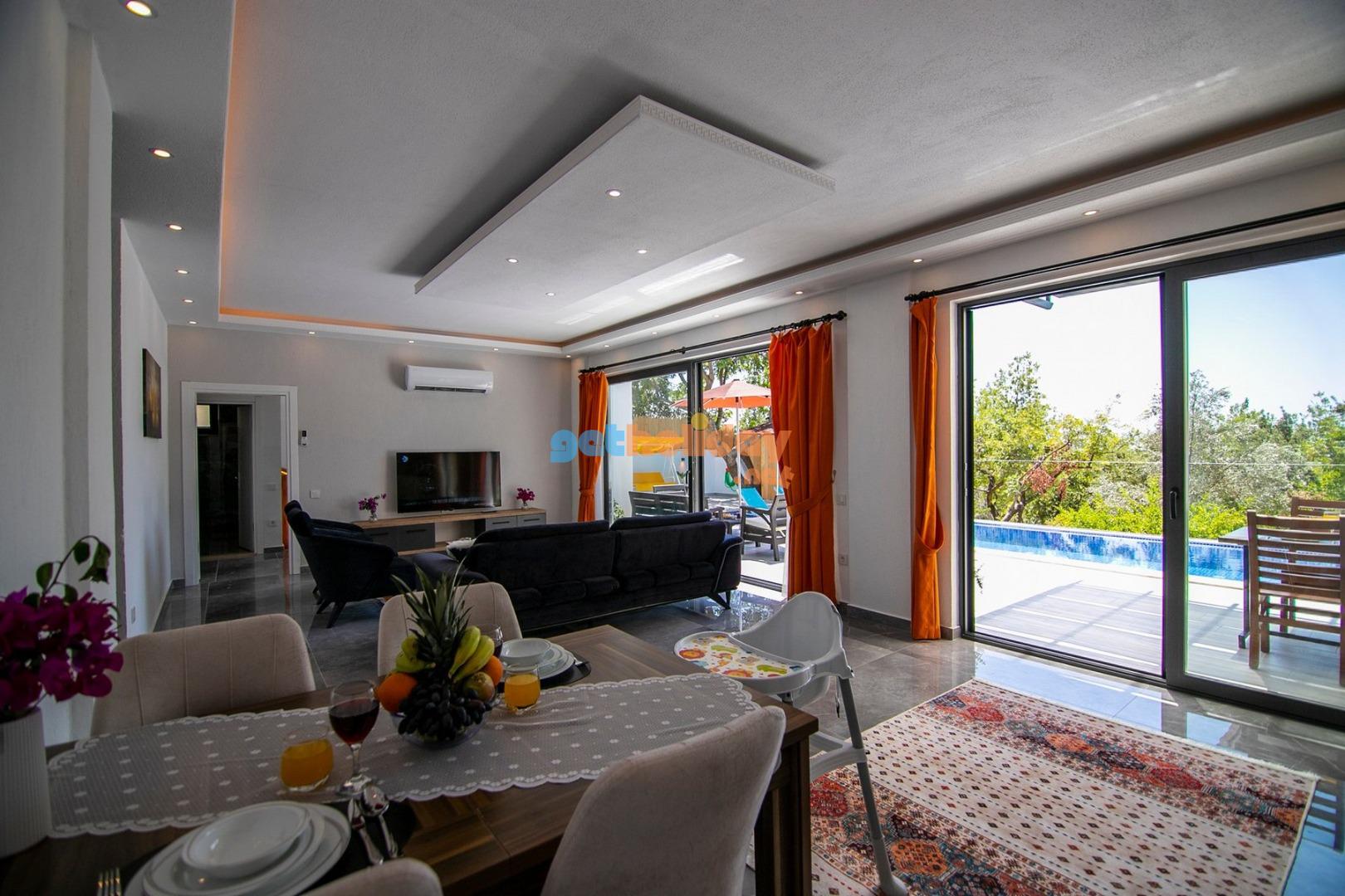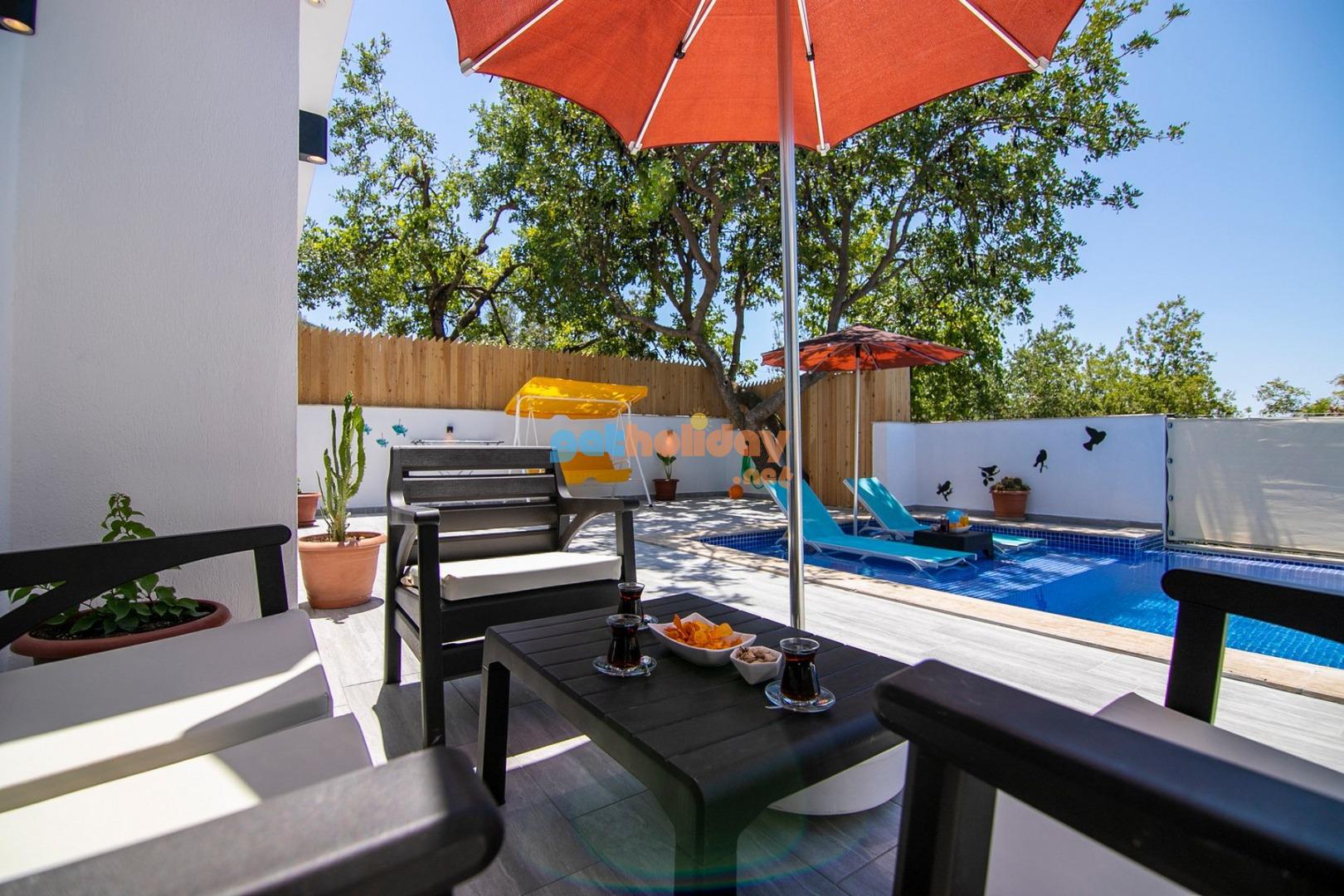 Kalkan’ın Üzümlü mevkiinde yer almakta olan muhafazakar, kiralık, yazlık, tek katlı müstakil villamız ile huzurlu ve sakin bir tatlı deneyimi gerçekleştirebilirsiniz.
