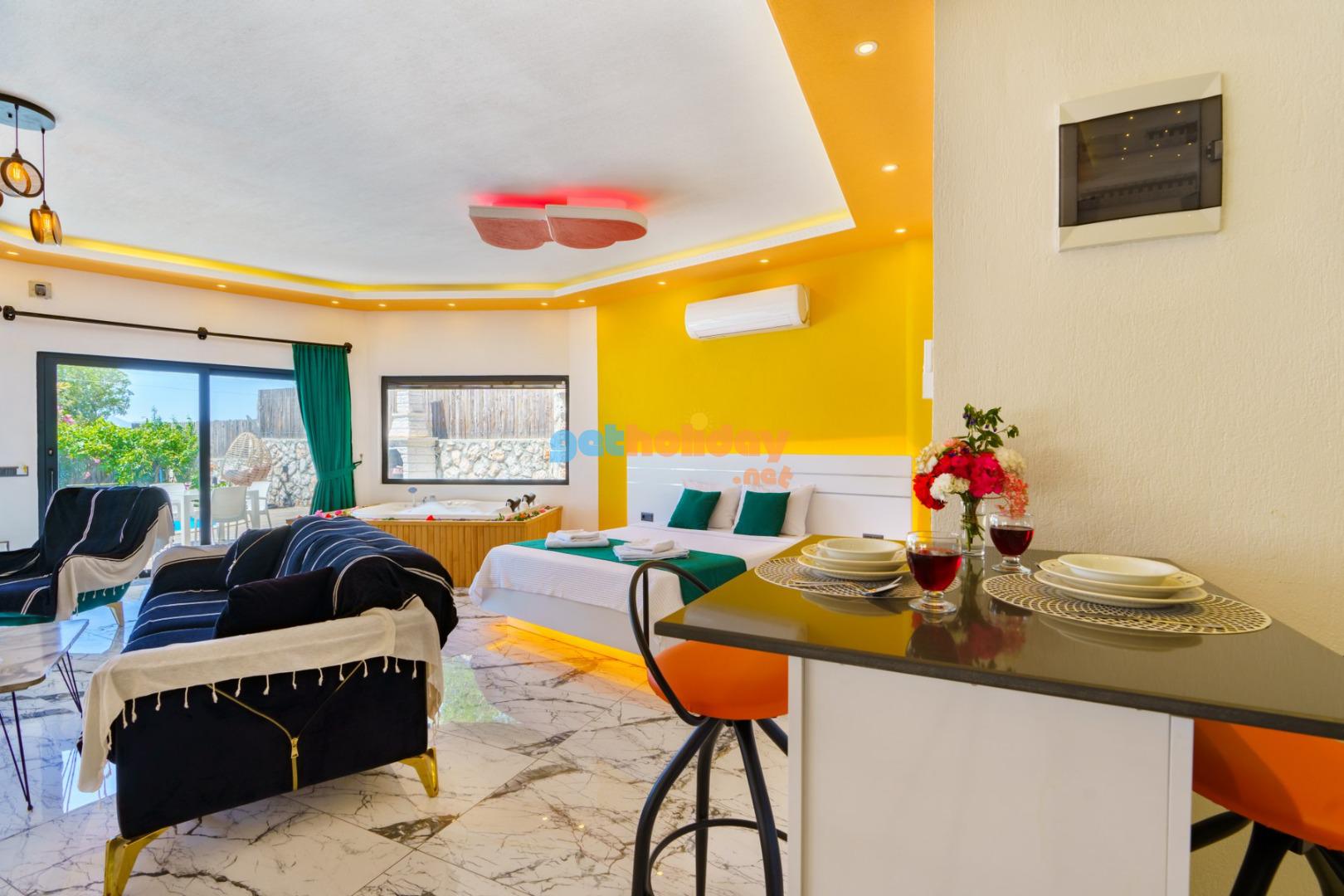 Villa Hep Kalkan üzümlü mevkiinde yer almaktadır.1 yatak odalı 2 kişi konaklama kapasitesine sahiptir.Villamız oldukça lüks dizayn edilmiştir.Mükemmel bir doğa manzarasına sahiptir.Muhafazakar bir villadır.Balayı çiftlerimiz için uygundur.