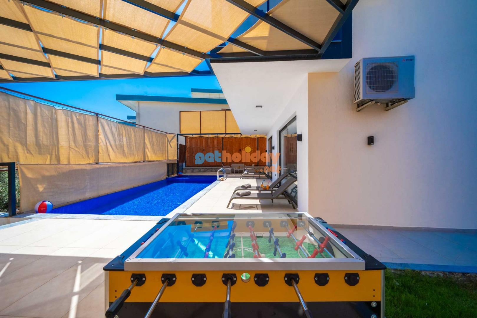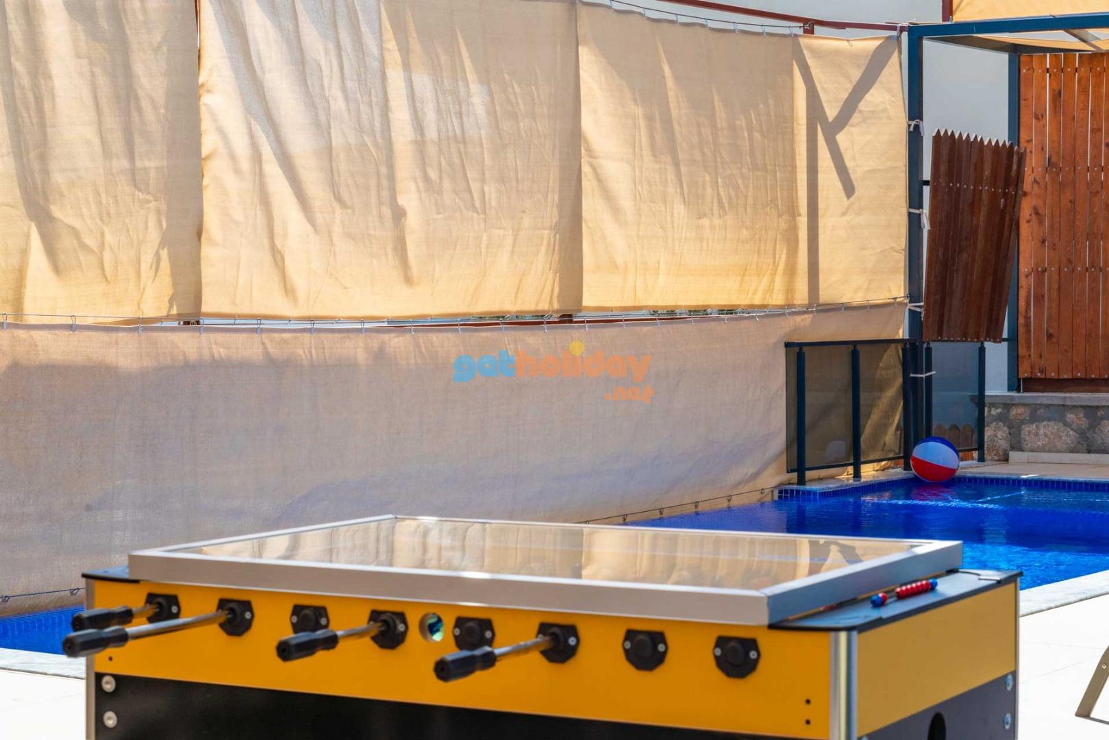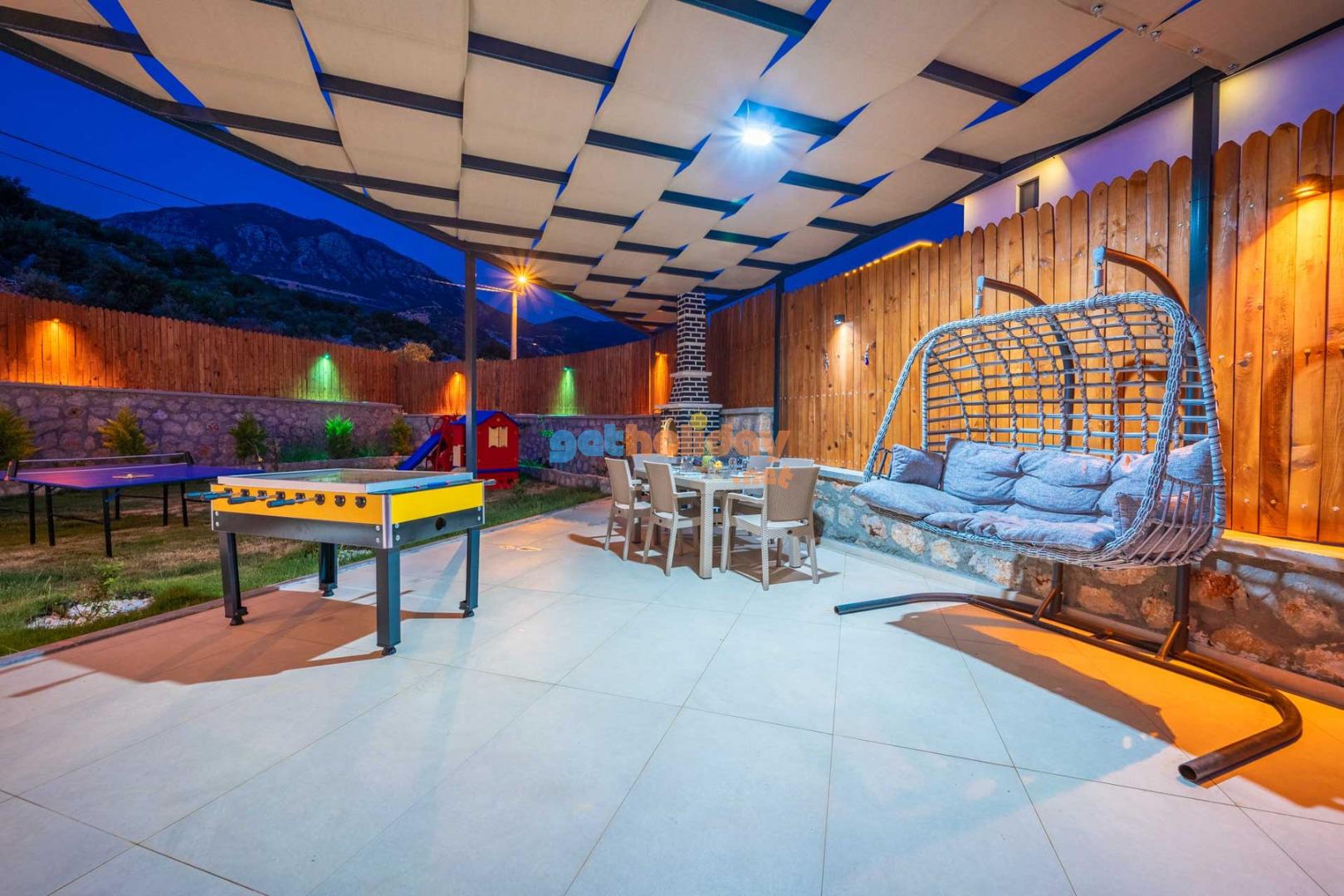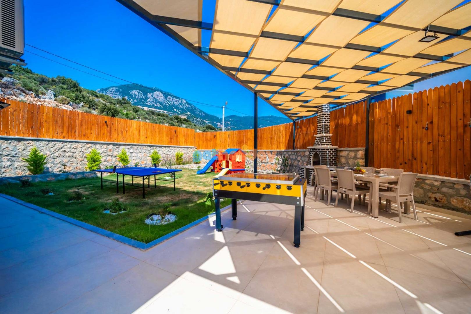 Özellikle çocuklu aileler için ideal olan villamızın bahçesinde, çocuklarınızın güvenle oynayabileceği bir mini oyun parkı bulunmaktadır. Bu özellik sayesinde tatiliniz hem sizin için hem de çocuklarınız için keyifli ve eğlenceli bir tatil deneyimi yaşayabilirsiniz.