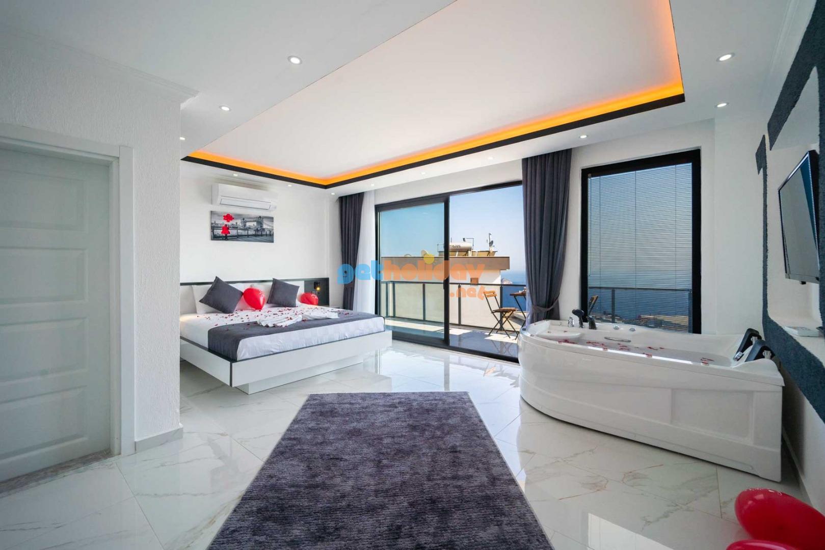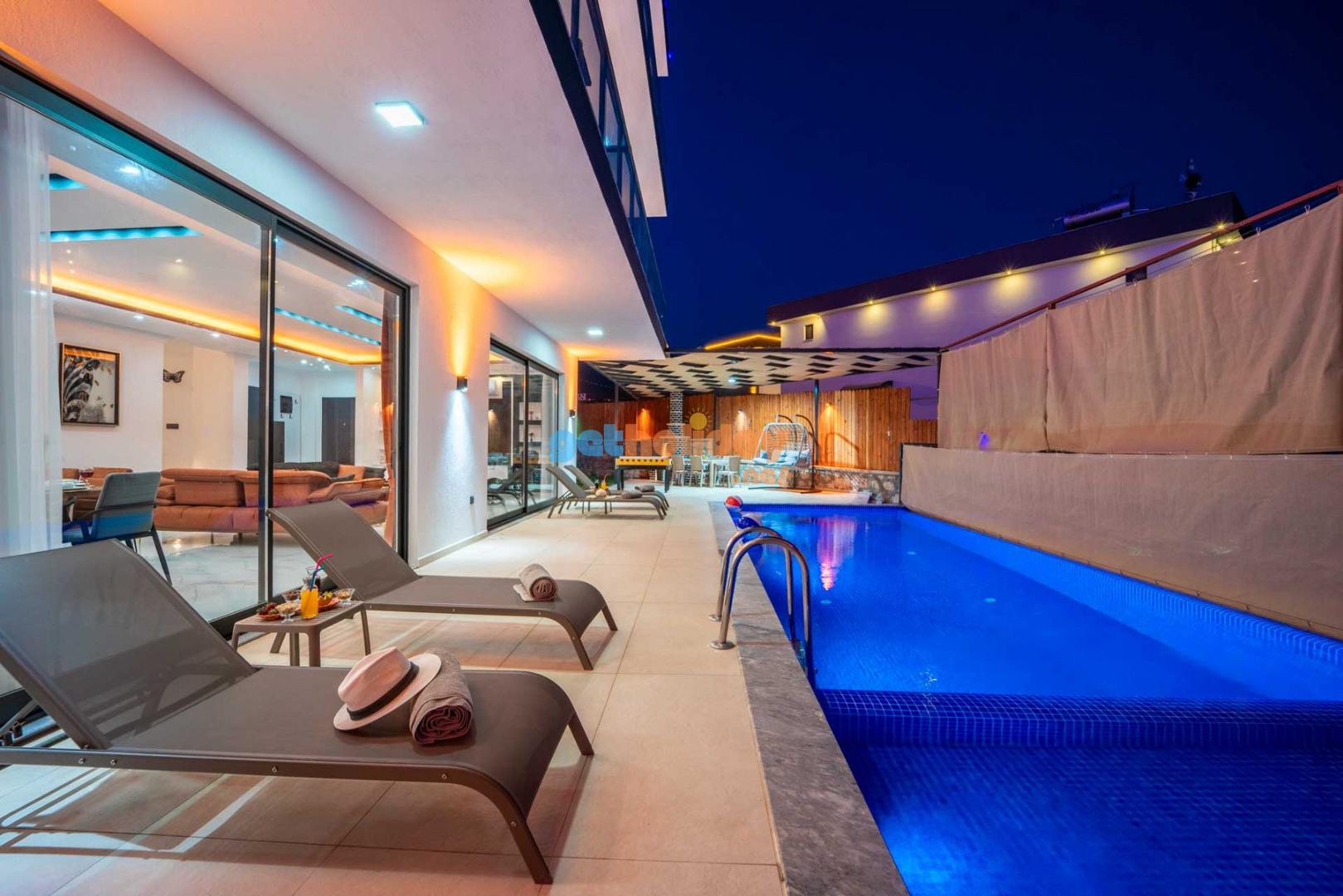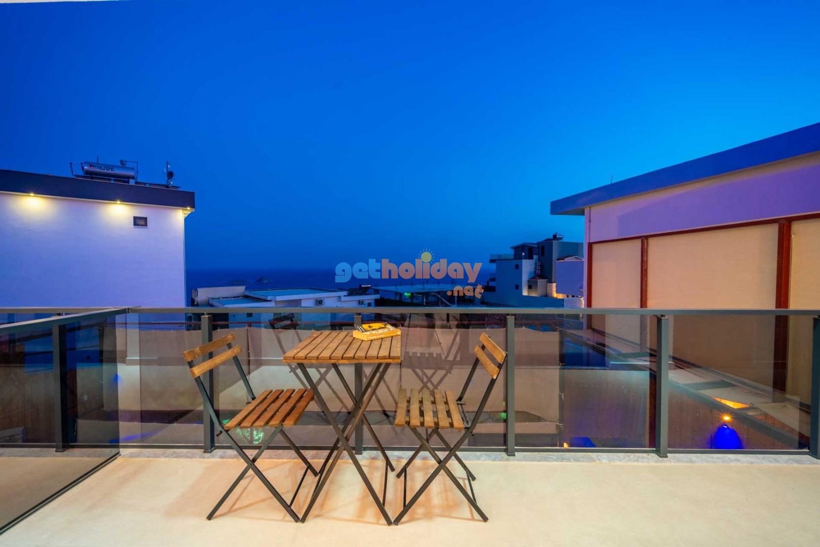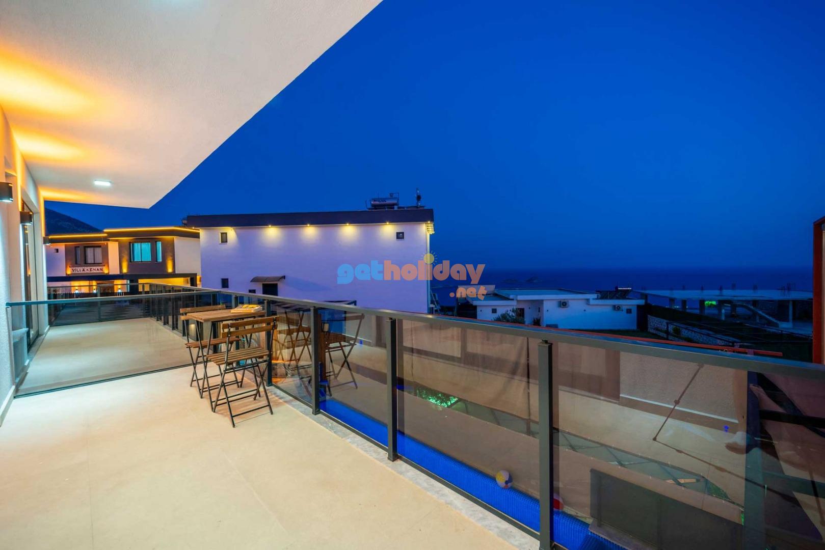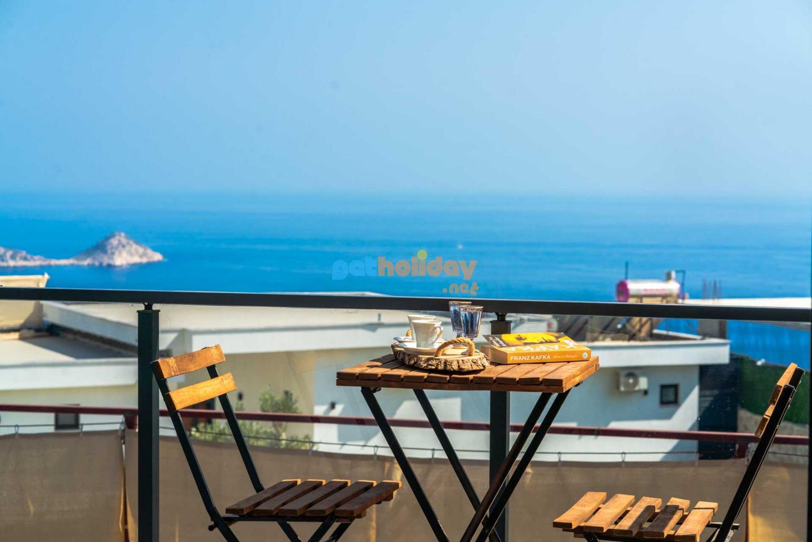 Villamızın balkonundan, Kalkan'ın eşsiz Deniz Manzarasını seyretme imkanını sizlere sunuyoruz. Ayrıca, hamam, sauna ve spor odası ile vücudunuzu ve zihninizi yenileme fırsatı sunuyoruz.