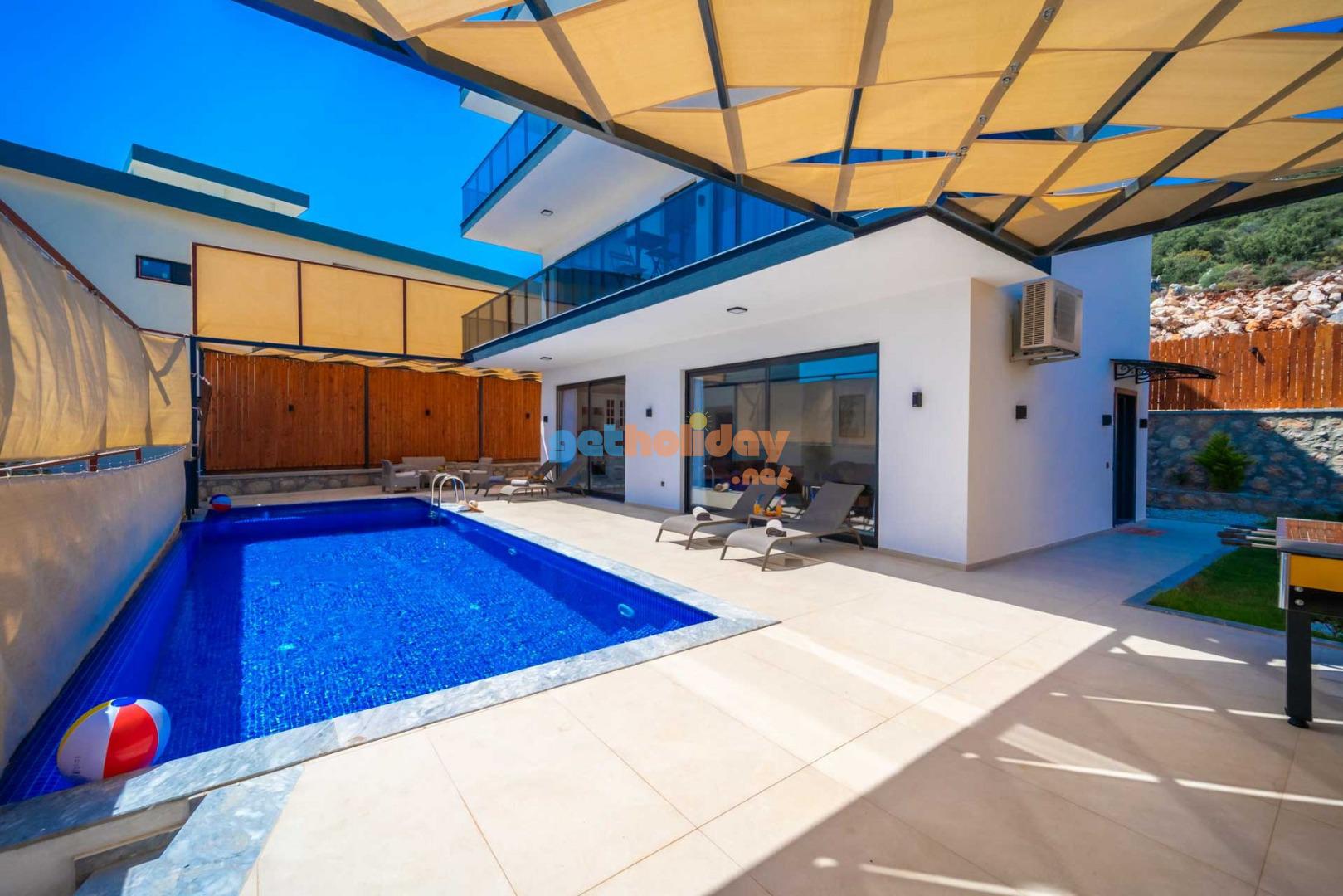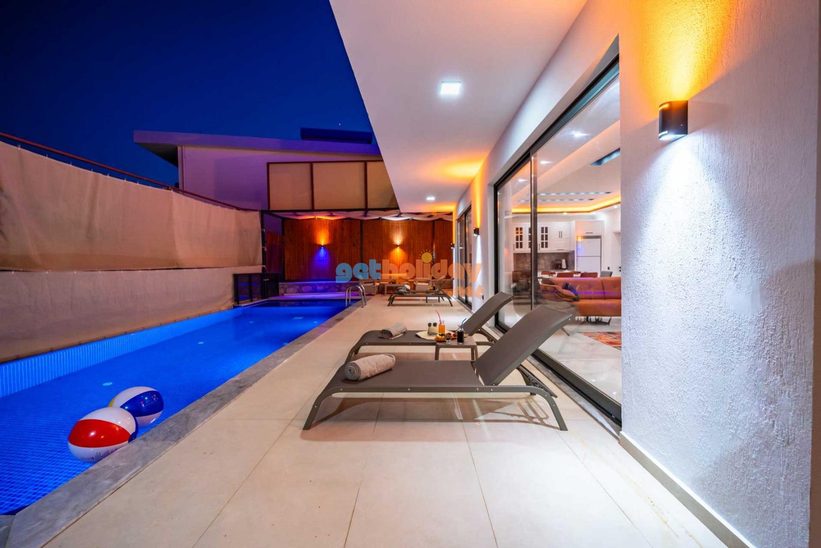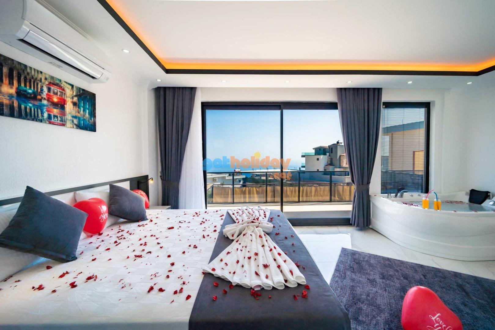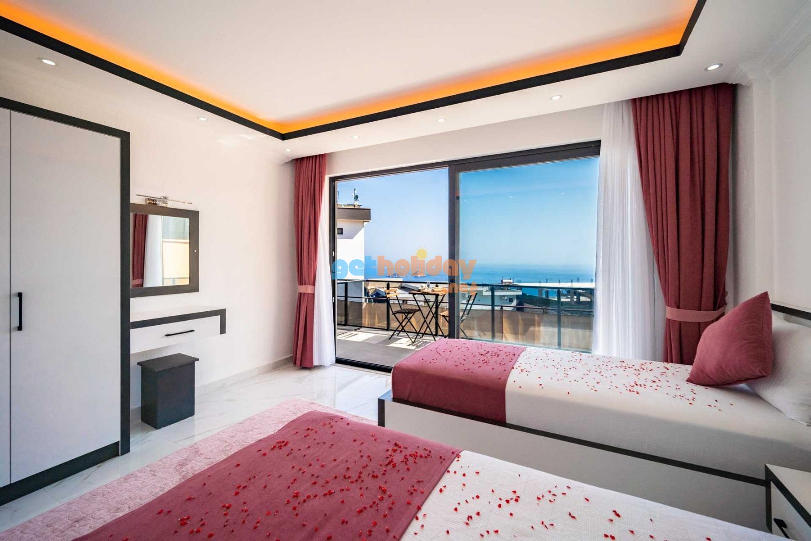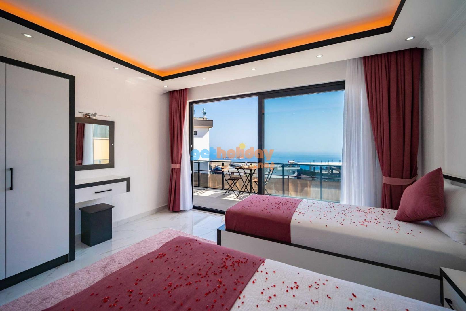 Villamızın balkonundan, Kalkan'ın eşsiz Deniz Manzarasını seyretme imkanını sizlere sunuyoruz. Ayrıca, hamam, sauna ve spor odası ile vücudunuzu ve zihninizi yenileme fırsatı sunuyoruz.