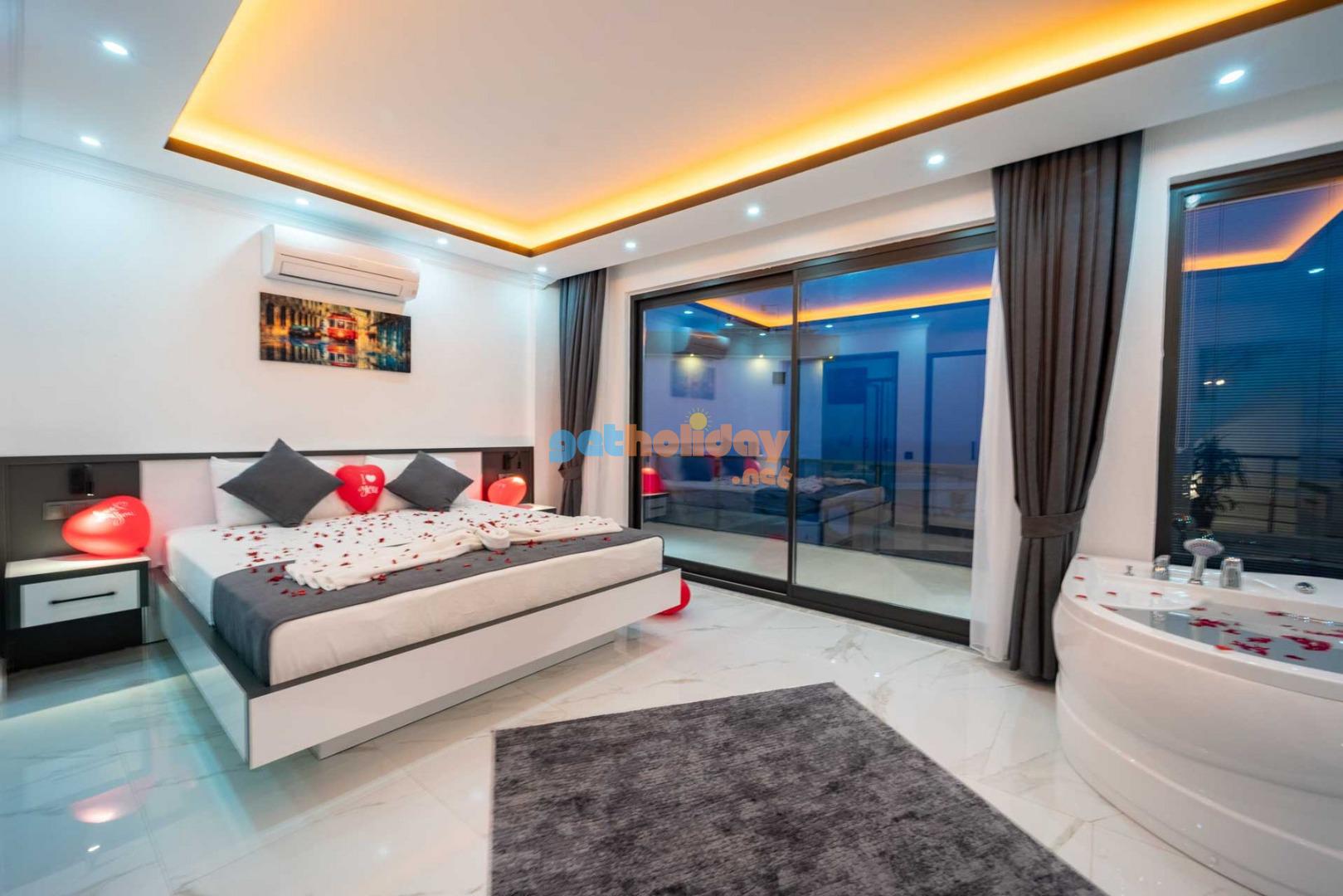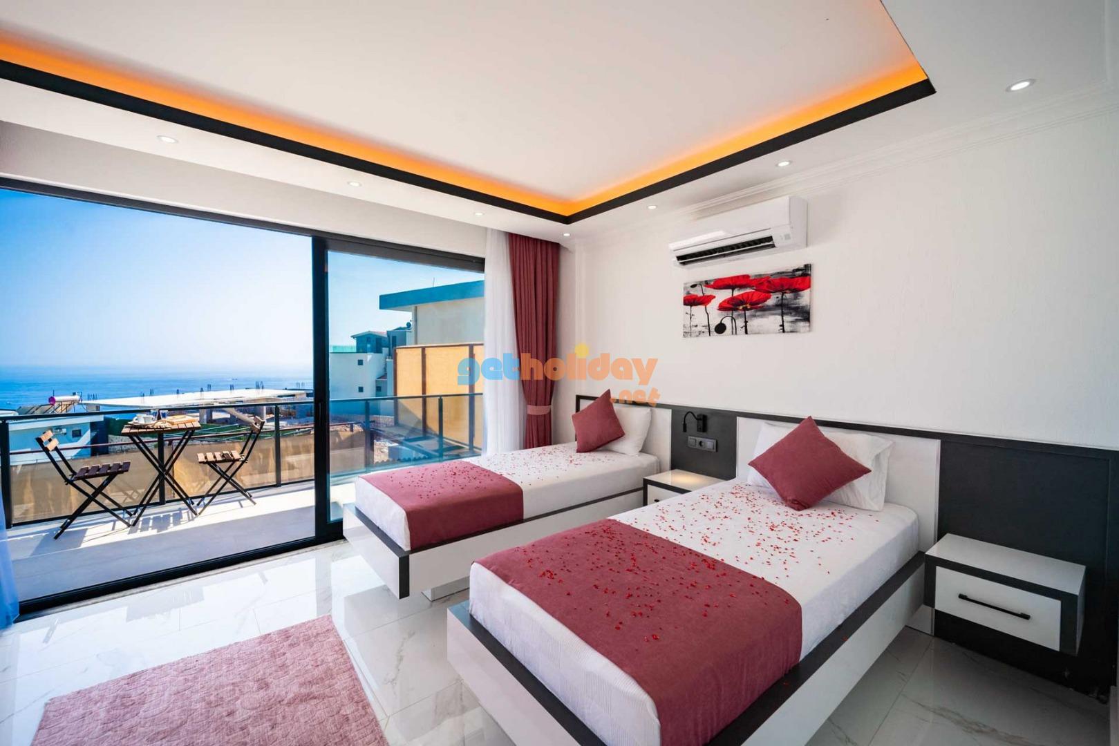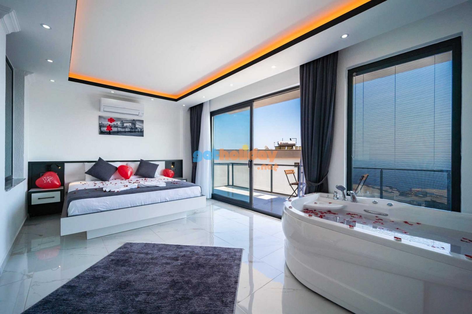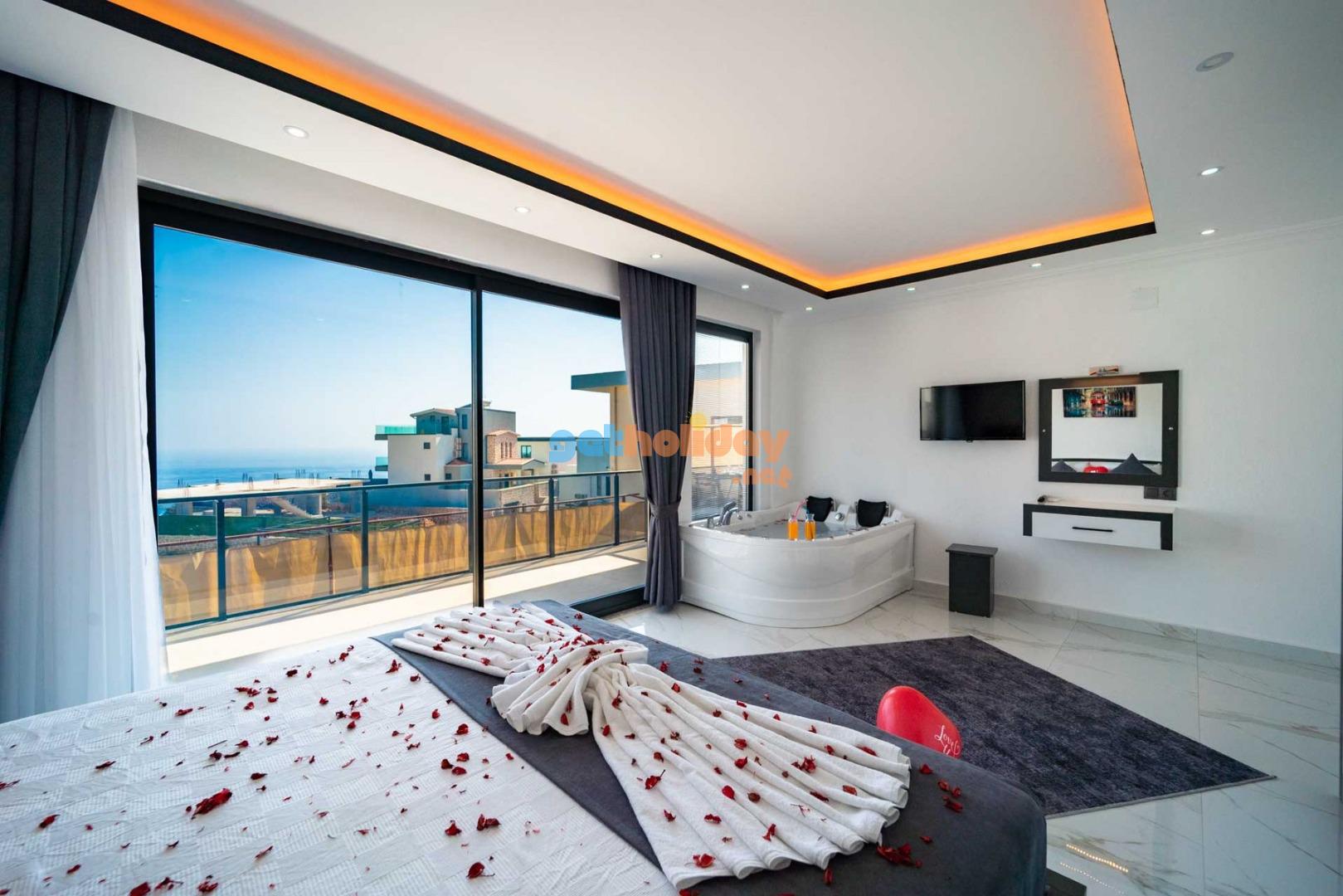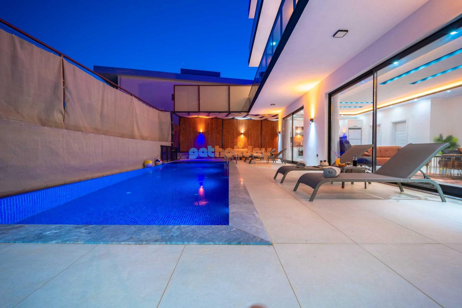 Villamızın balkonundan, Kalkan'ın eşsiz Deniz Manzarasını seyretme imkanını sizlere sunuyoruz. Ayrıca, hamam, sauna ve spor odası ile vücudunuzu ve zihninizi yenileme fırsatı sunuyoruz.