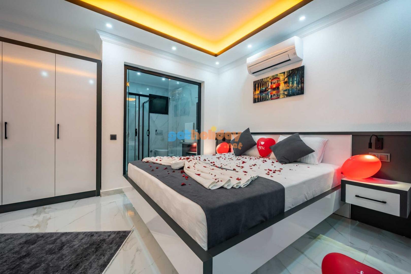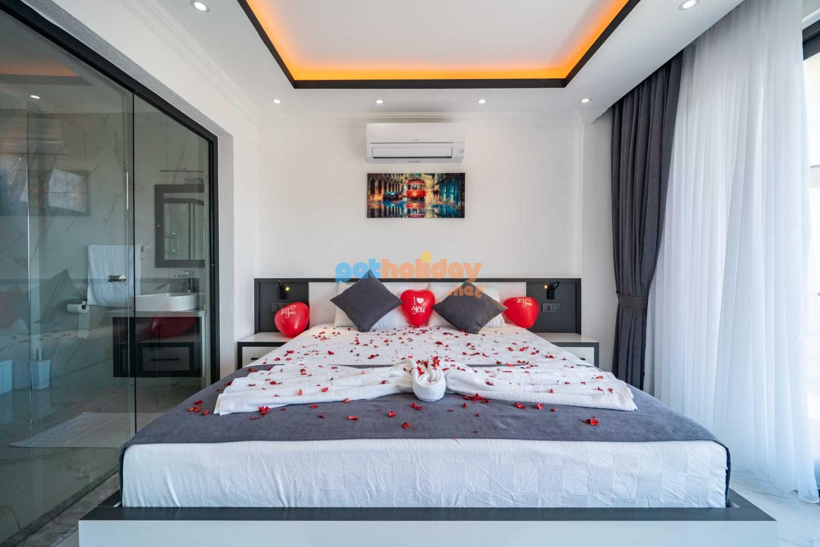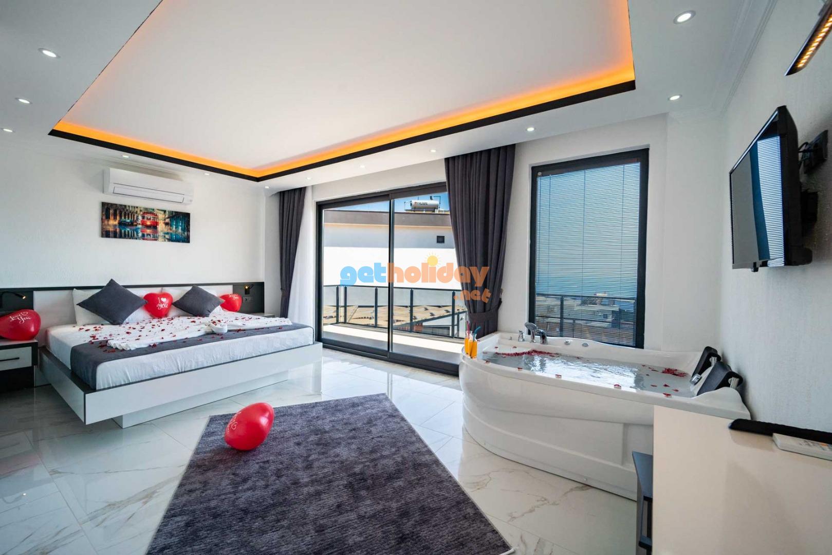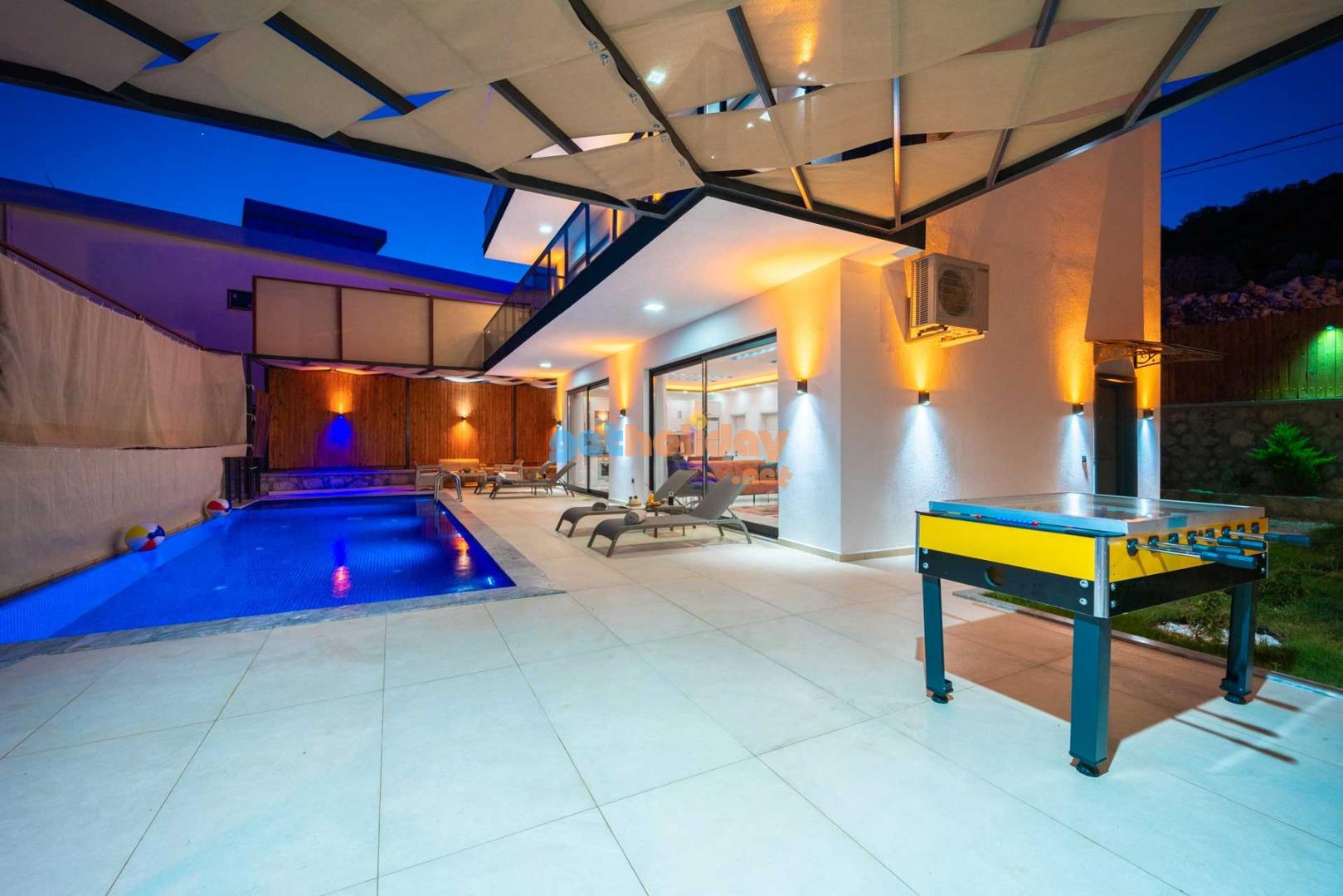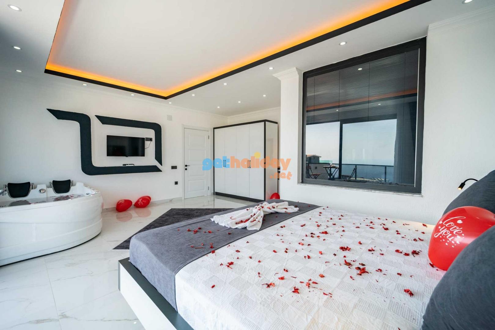 Villamızın balkonundan, Kalkan'ın eşsiz Deniz Manzarasını seyretme imkanını sizlere sunuyoruz. Ayrıca, hamam, sauna ve spor odası ile vücudunuzu ve zihninizi yenileme fırsatı sunuyoruz.