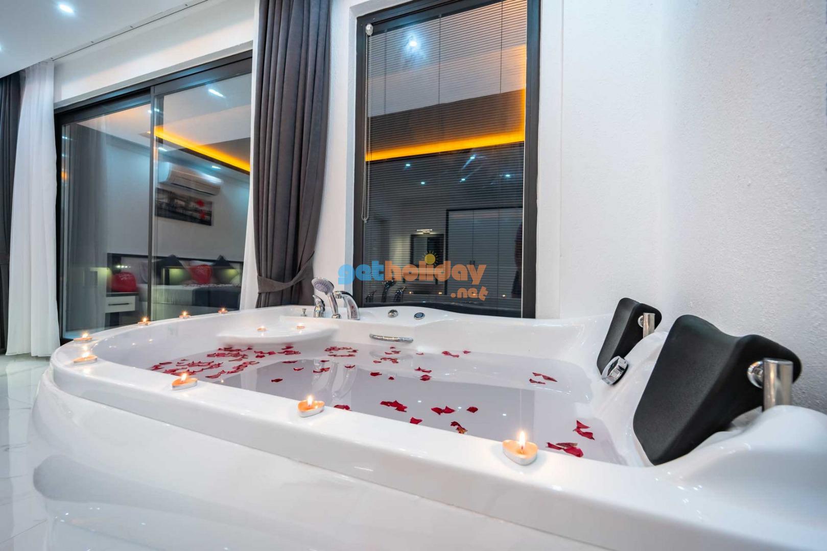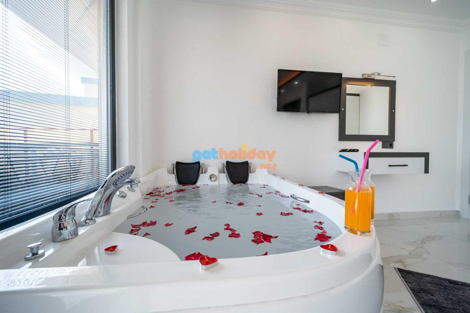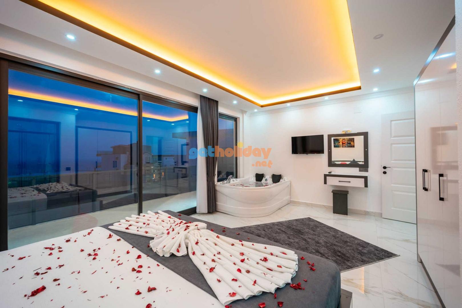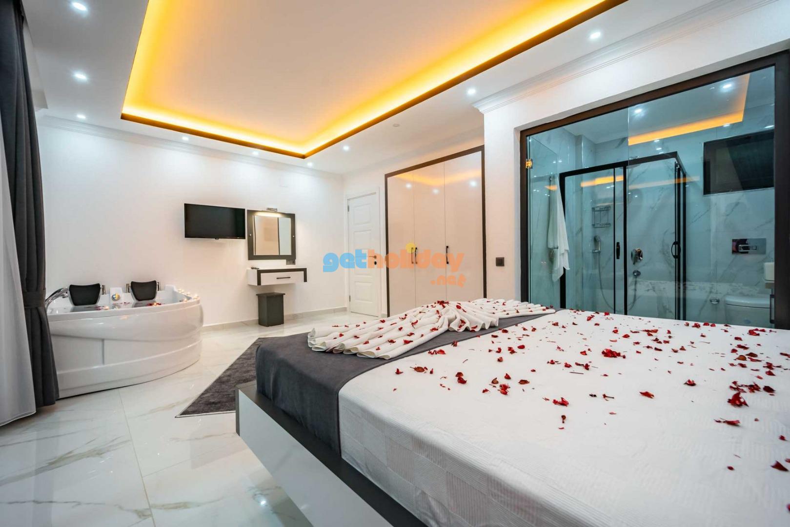 Çift jakuzili villamız, tatilinize Lüks ve konfor katar. Hem iç mekanlar hem de geniş bahçemiz rahatlamanız ve huzur bulmanız için mükemmel bir seçenektir