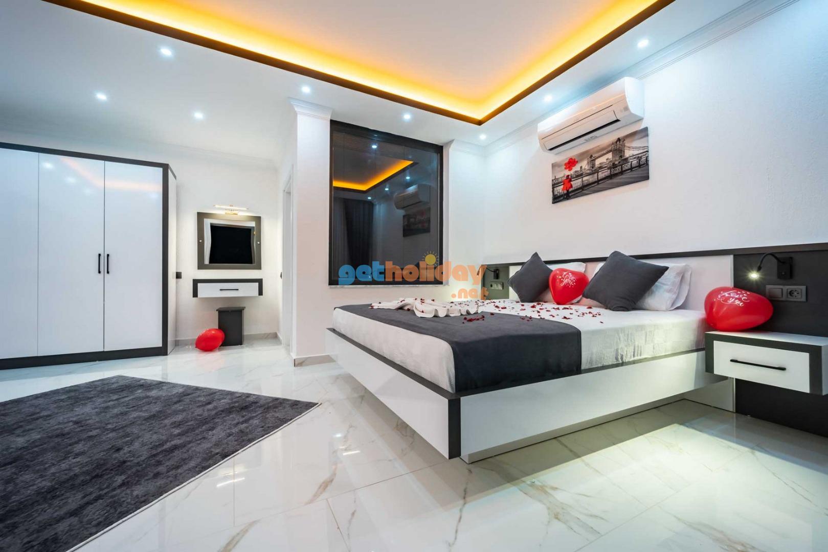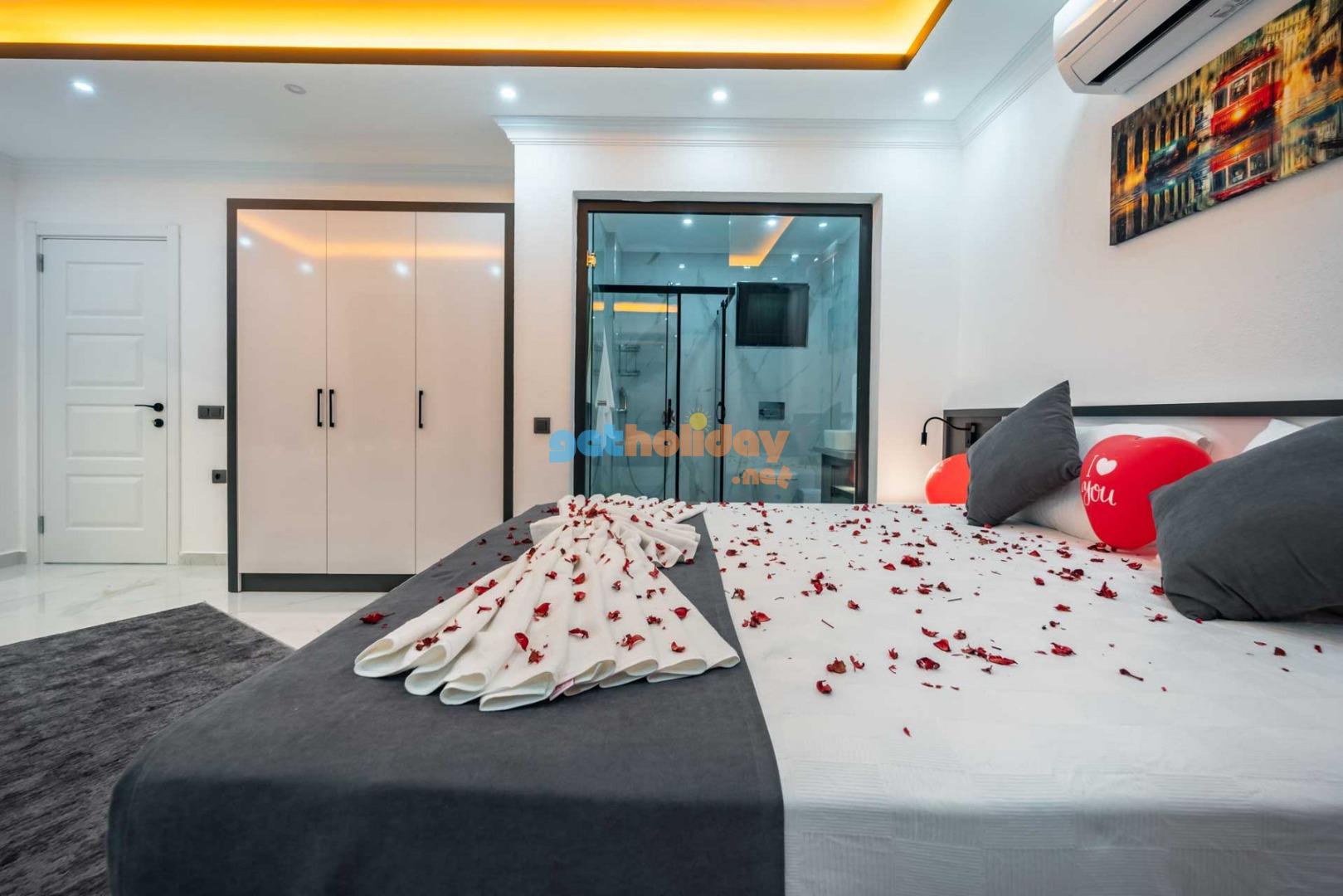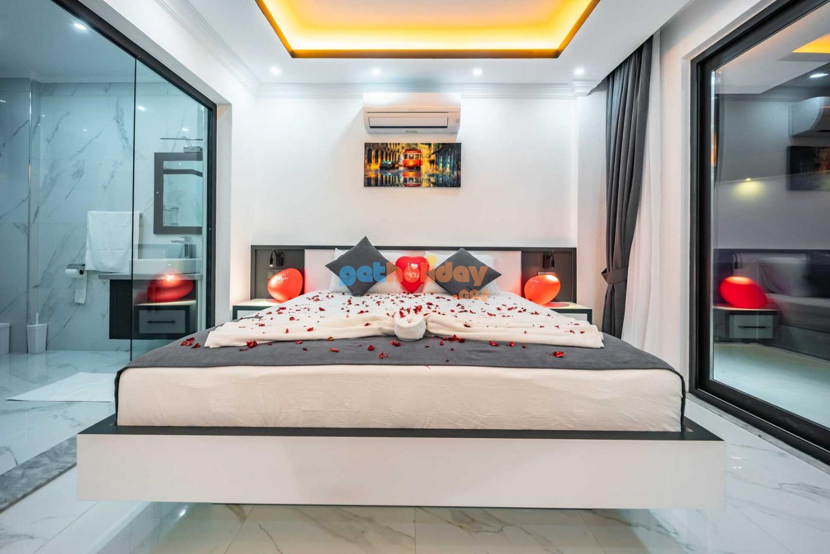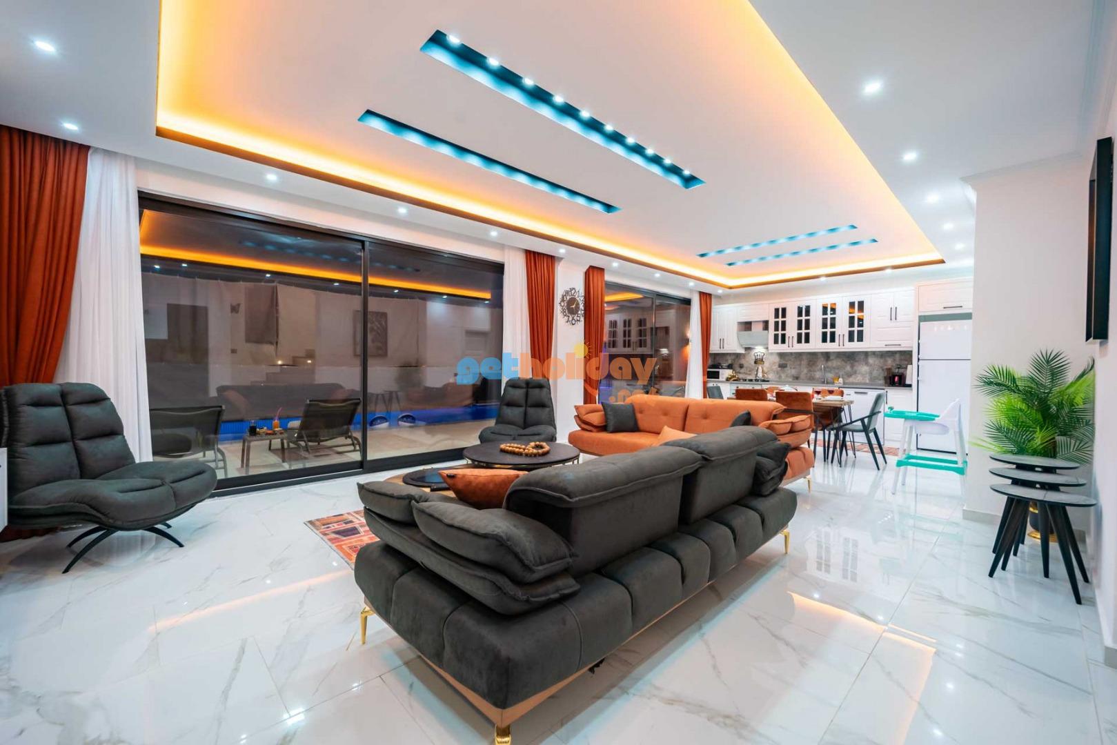 Çift jakuzili villamız, tatilinize Lüks ve konfor katar. Hem iç mekanlar hem de geniş bahçemiz rahatlamanız ve huzur bulmanız için mükemmel bir seçenektir