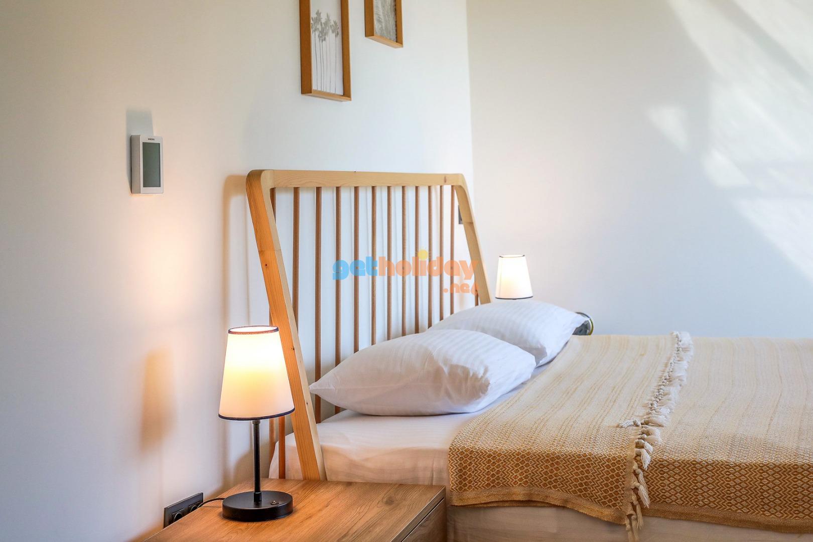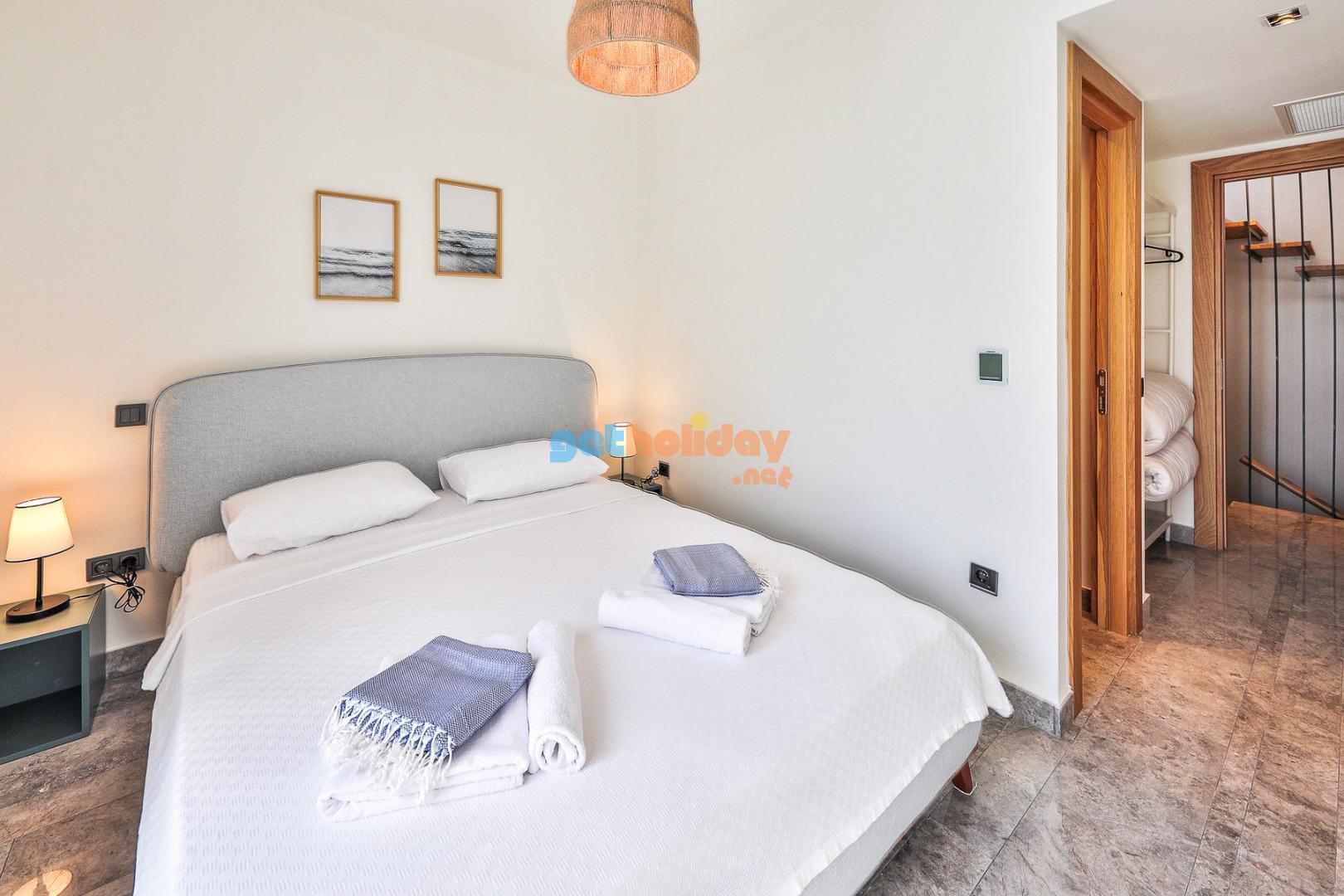1. Yatak Odası :1 adet çift kişilik yatak, klima makyaj masası, komodin ve elbise dolabı, banyo ve tuvalet bulunmaktadır. En üst kattadır.