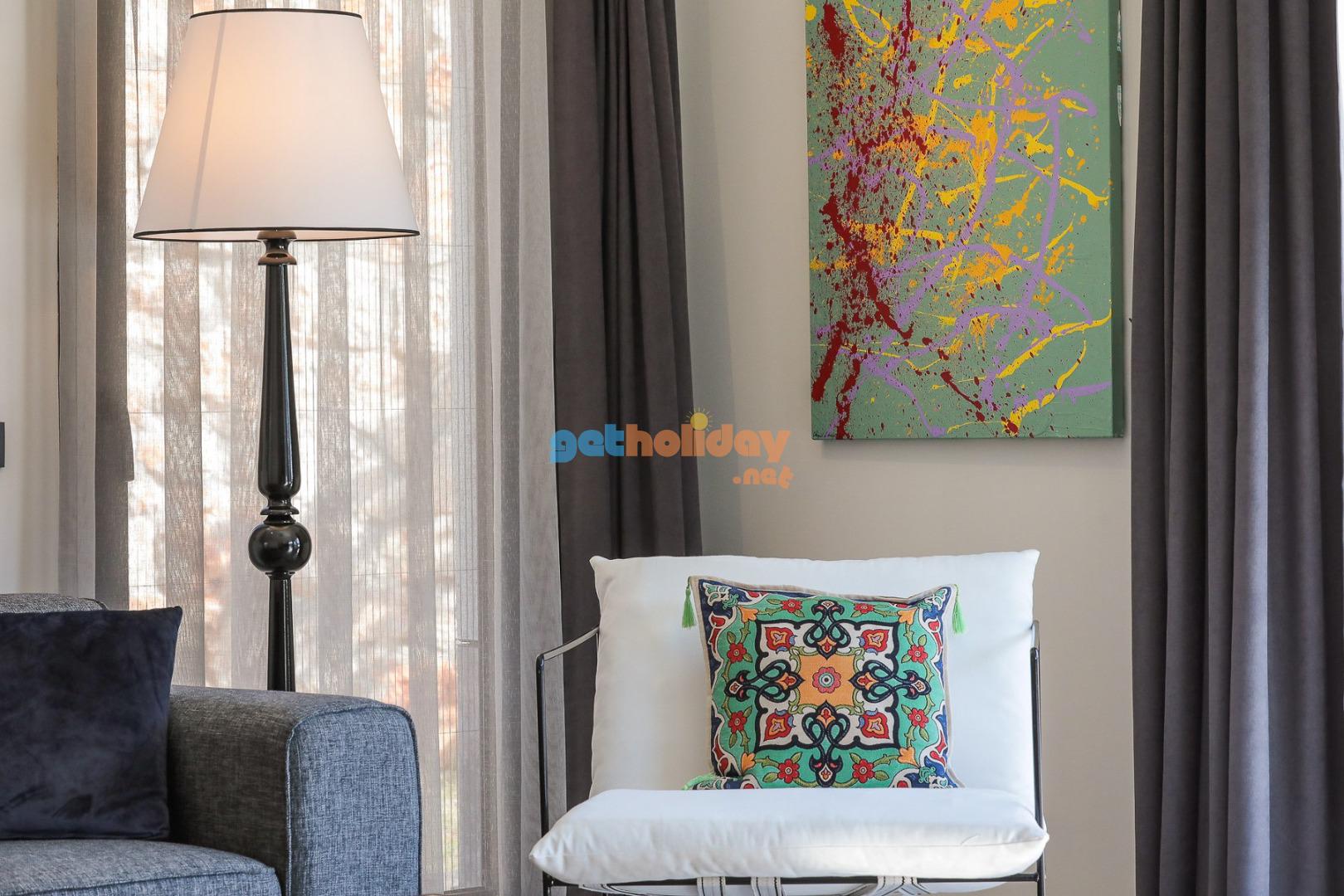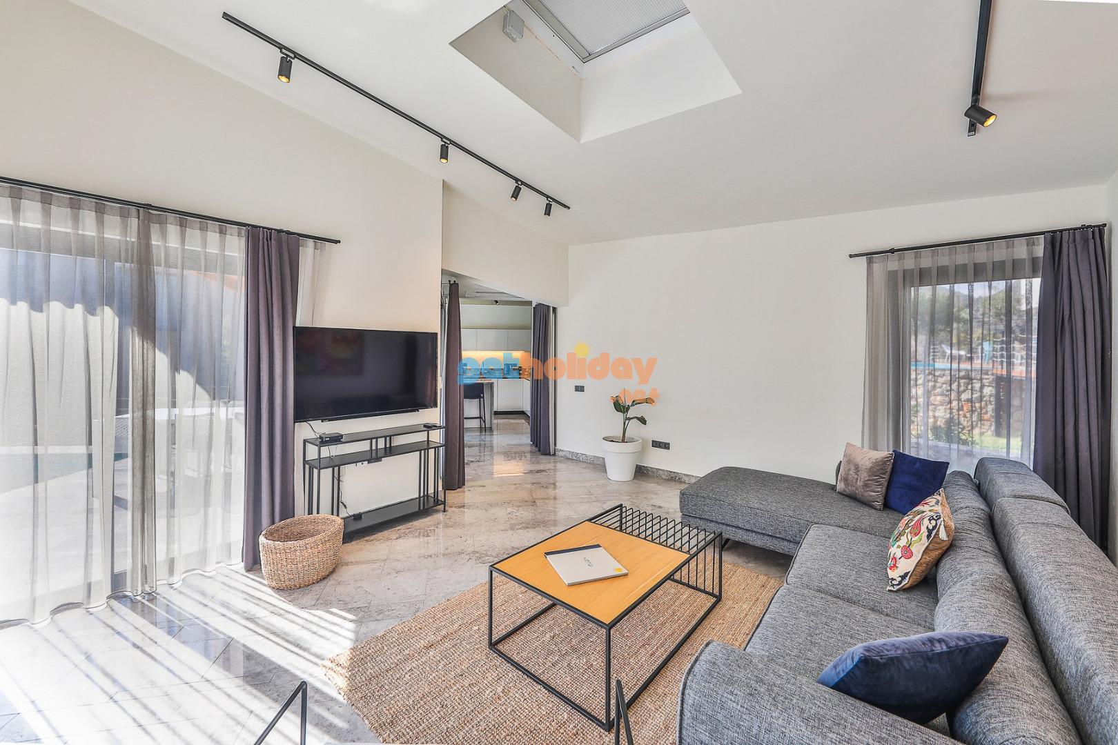 Salon: Konforlu oturma gurubu, şık orta sehpa ,berjerler, 158 ekran smart led tv  ve tivibu bulunmaktadır.