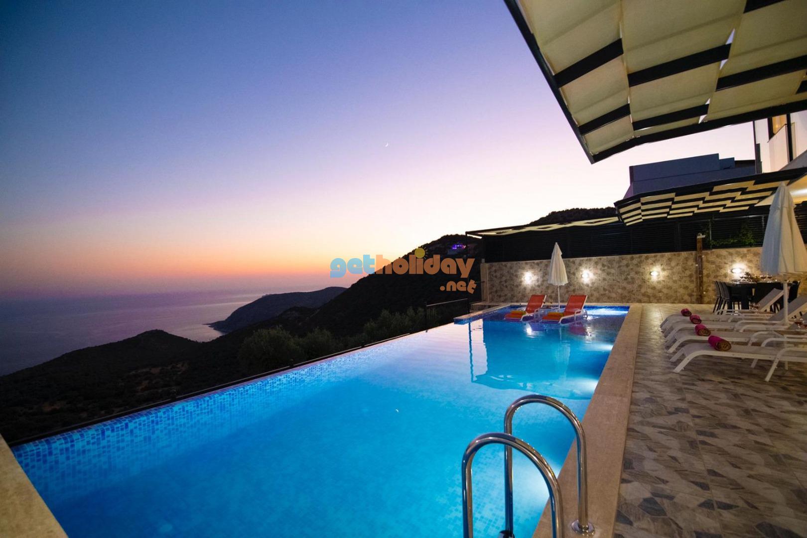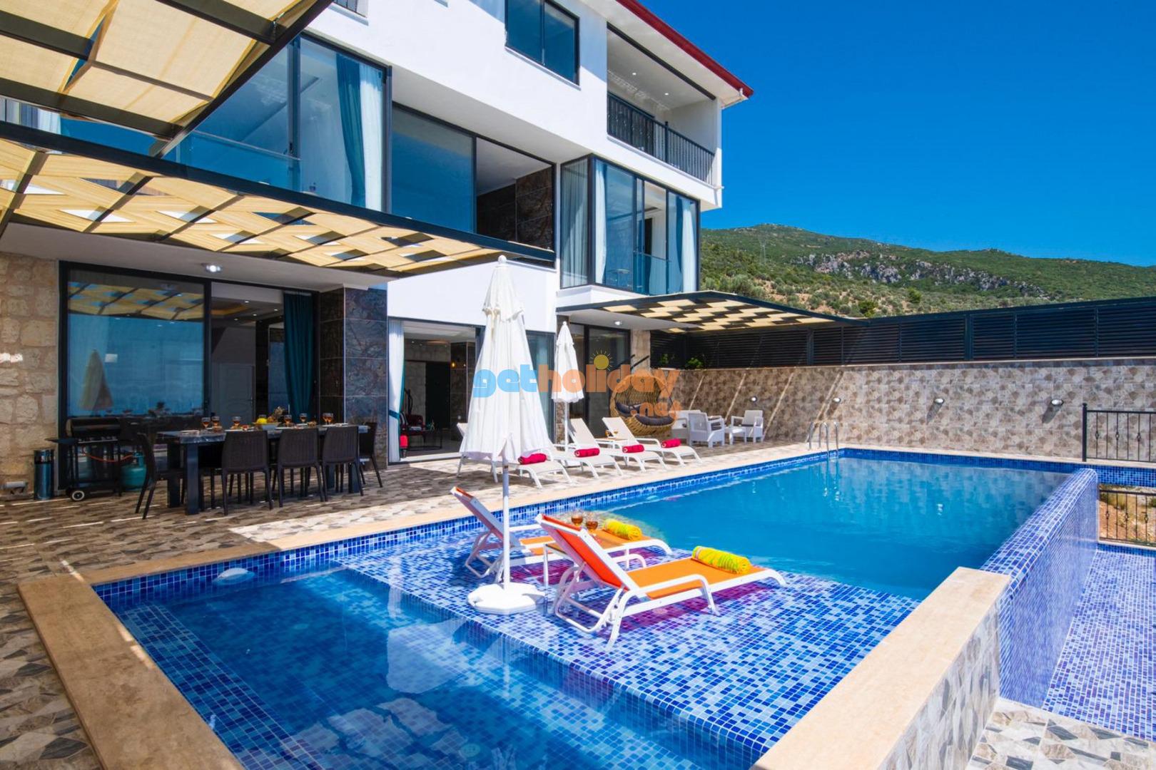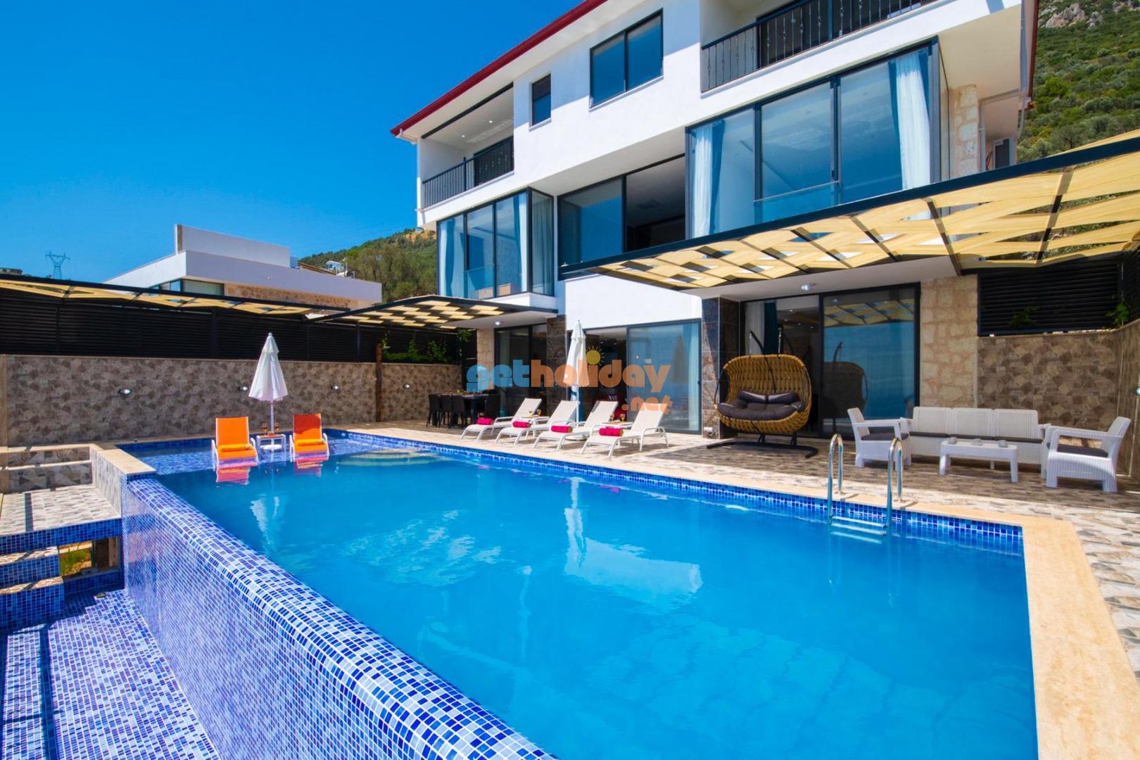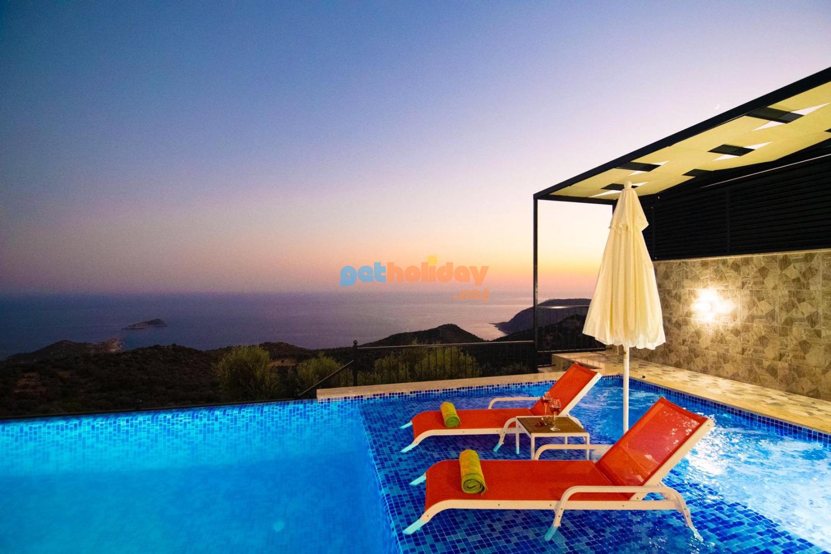 Kalkan Kördere mevkisinde konumlanan Deniz Manzaralı Kiralık Tatil Villası  İzo dört yatak odalı olup sekiz kişi kapasitesine sahip.Villa İzo büyüleyici deniz manzarası, oldukça konforlu ve lüks iç mekanı ile ilk tercihler arasında. Geniş havuz terasında içeceklerinizi yudumlarken  Akdeniz'in mavisi ve yeşilinin büyüleyici tonlarının muhteşem şölenine şahitlik ederek tatil keyfinizi ikiye katlayabilirsiniz. Villamızda kapalı ısıtmalı iç havuz, Hamam ve Sauna bulunmakta olup kış ayları içinde kiralamaya uygundur.