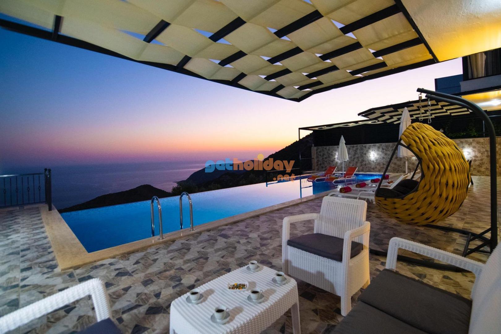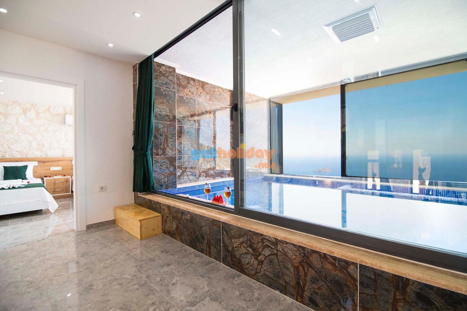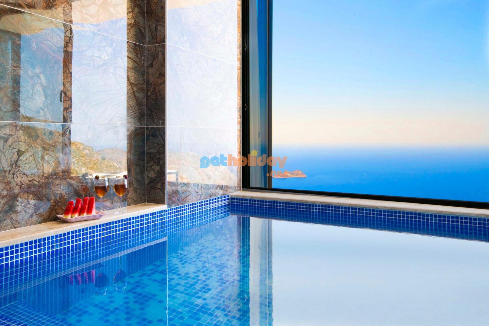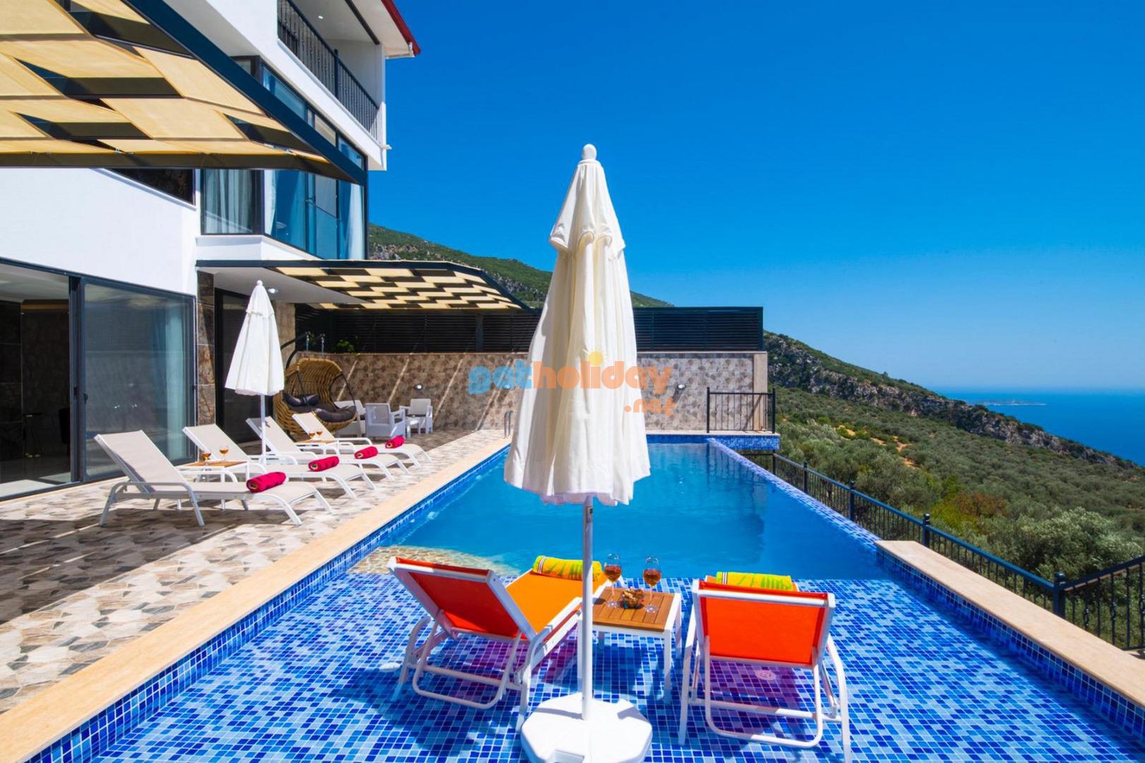Kalkan Kördere mevkisinde konumlanan Deniz Manzaralı Kiralık Tatil Villası  İzo dört yatak odalı olup sekiz kişi kapasitesine sahip.Villa İzo büyüleyici deniz manzarası, oldukça konforlu ve lüks iç mekanı ile ilk tercihler arasında. Geniş havuz terasında içeceklerinizi yudumlarken  Akdeniz'in mavisi ve yeşilinin büyüleyici tonlarının muhteşem şölenine şahitlik ederek tatil keyfinizi ikiye katlayabilirsiniz. Villamızda kapalı ısıtmalı iç havuz, Hamam ve Sauna bulunmakta olup kış ayları içinde kiralamaya uygundur.
