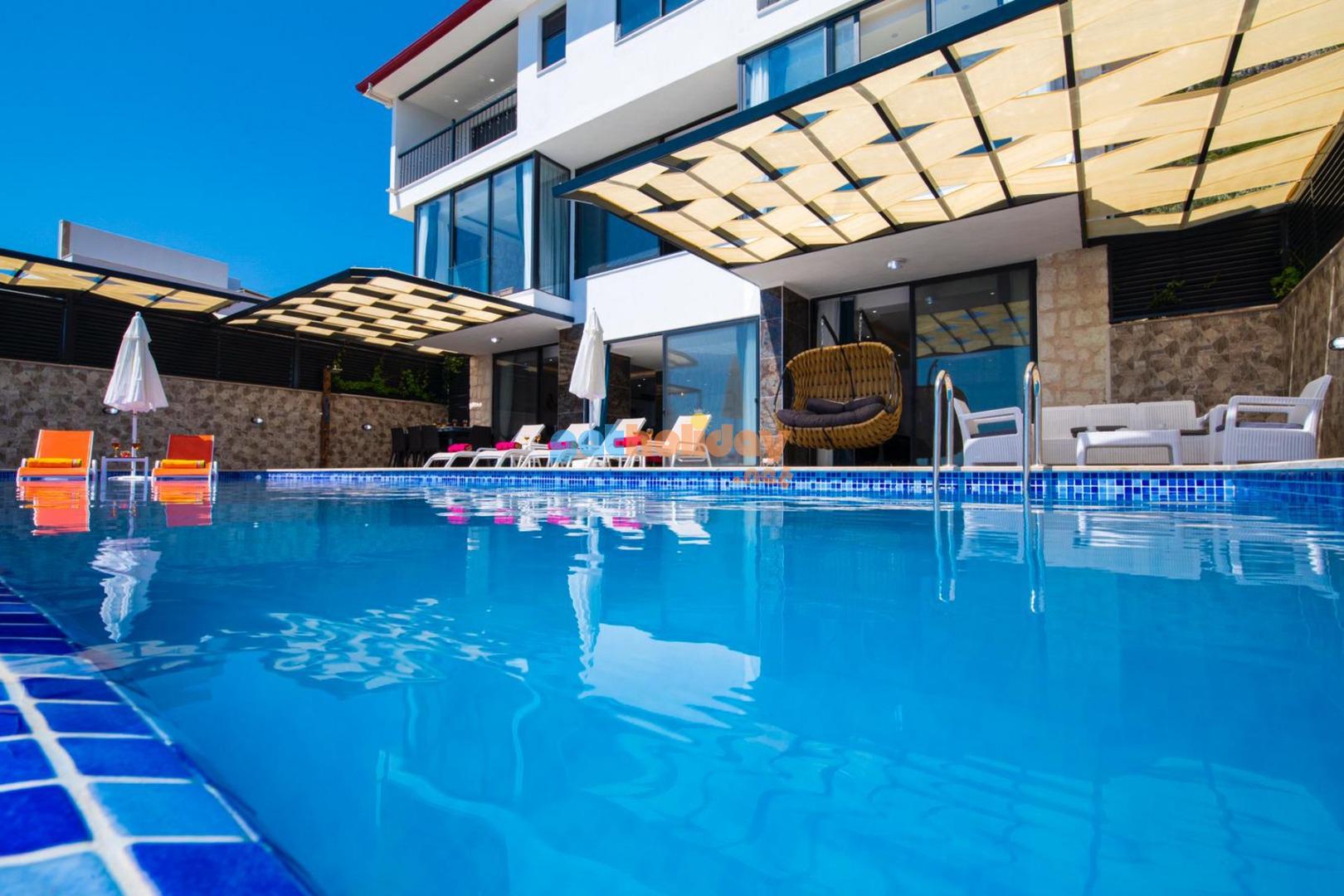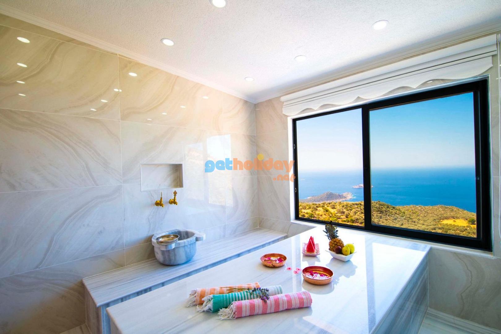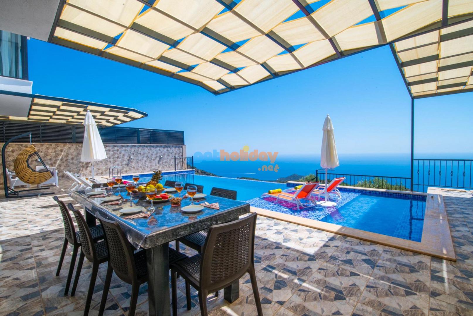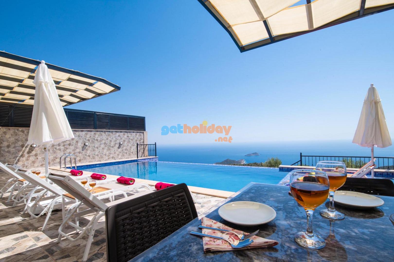 Kalkan Kördere mevkisinde konumlanan Deniz Manzaralı Kiralık Tatil Villası  İzo dört yatak odalı olup sekiz kişi kapasitesine sahip.Villa İzo büyüleyici deniz manzarası, oldukça konforlu ve lüks iç mekanı ile ilk tercihler arasında. Geniş havuz terasında içeceklerinizi yudumlarken  Akdeniz'in mavisi ve yeşilinin büyüleyici tonlarının muhteşem şölenine şahitlik ederek tatil keyfinizi ikiye katlayabilirsiniz. Villamızda kapalı ısıtmalı iç havuz, Hamam ve Sauna bulunmakta olup kış ayları içinde kiralamaya uygundur.