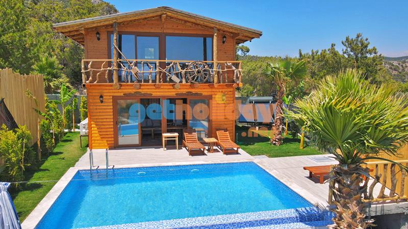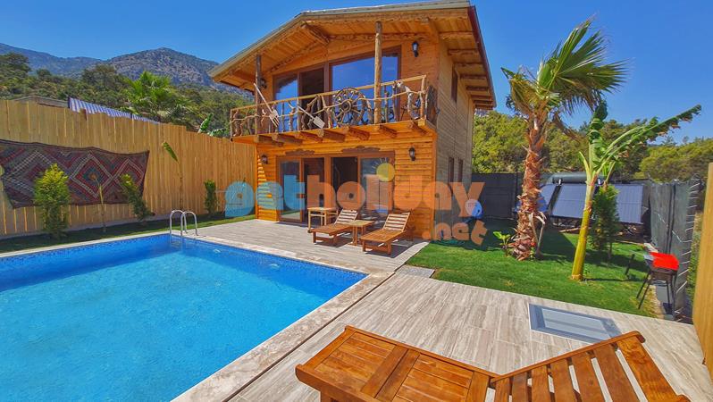 Fethiye Karadere bölgesinde ahşap tasarımıyla inşa edilmiş küçük şirin balayı tatil villasıdır. Kiralık Villa Karadere 1, balayı villalar, deniz manzaralı villalar ve muhafazakar villalar kategorisinde yer alan 1 yatak odalı 2 kişi konaklama kapasitesine sahiptir. Panoramik deniz manzarasına sahip olan villamız havuzu korunaklı olup; muhafazakar ve balayı çiftlerimiz için ideal bir seçenektir.