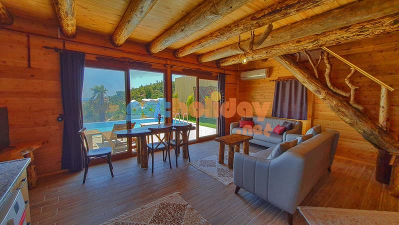 Salon : LCD TV, uydu alıcı, oturma grubu ve klima yer almaktadır. Salondan havuz terasına çıkış bulunmaktadır.