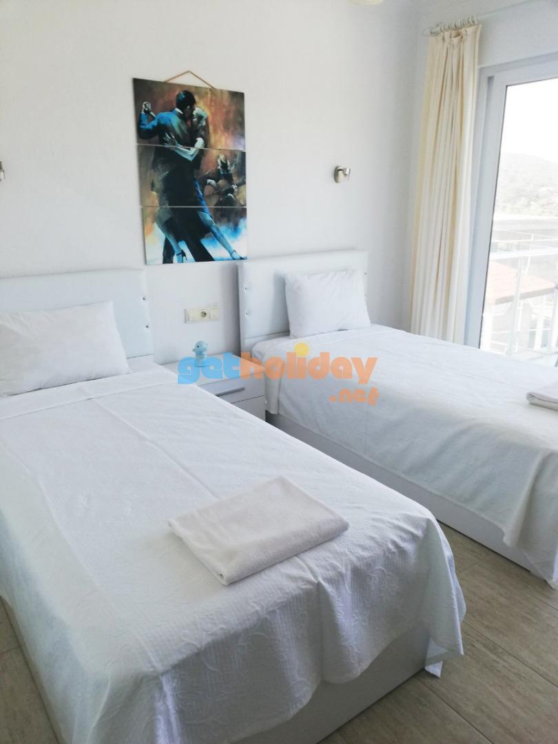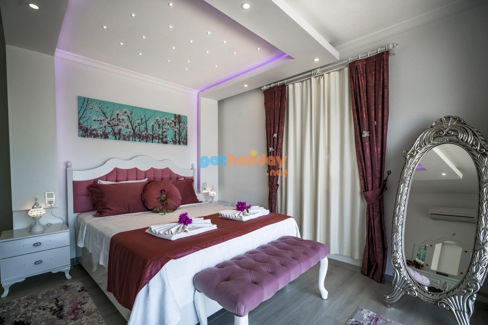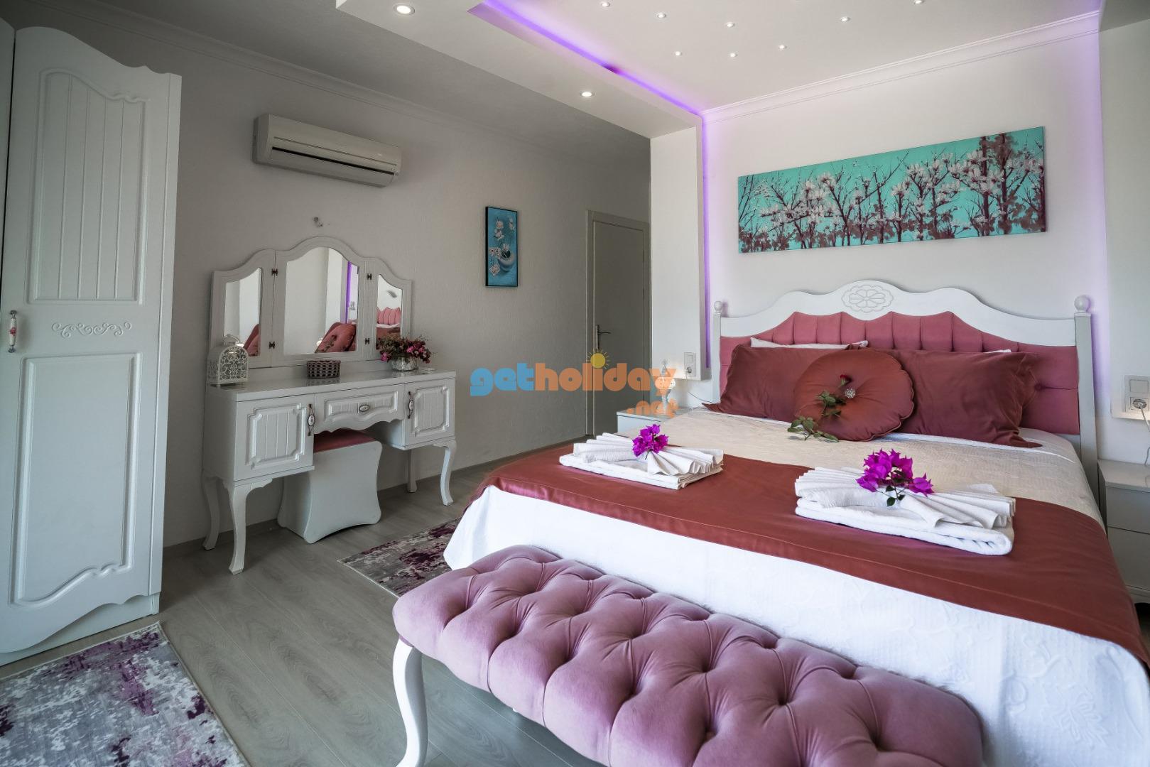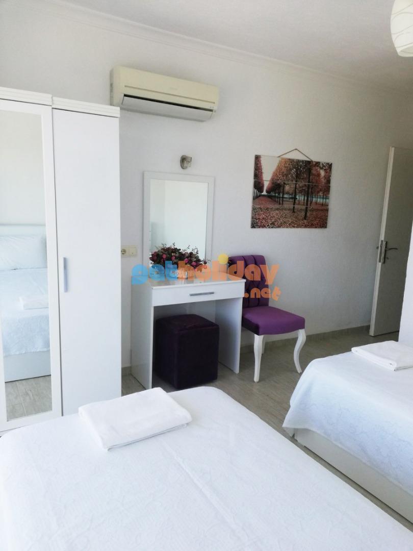 3 yatak odalı 6 kişilik bahçeli özel havuzlu villamızdır. Ana yatak odasında çift kişilik yatak, jakuzi  bulunmaktadır. İkinci yatak odasında çift kişilik yatak bulunmaktadır. Üçüncü yatak odasında iki tane tek kişilik yatak bulunmaktadır. Her yatak odasında klima ve özel banyo bulunmaktadır.