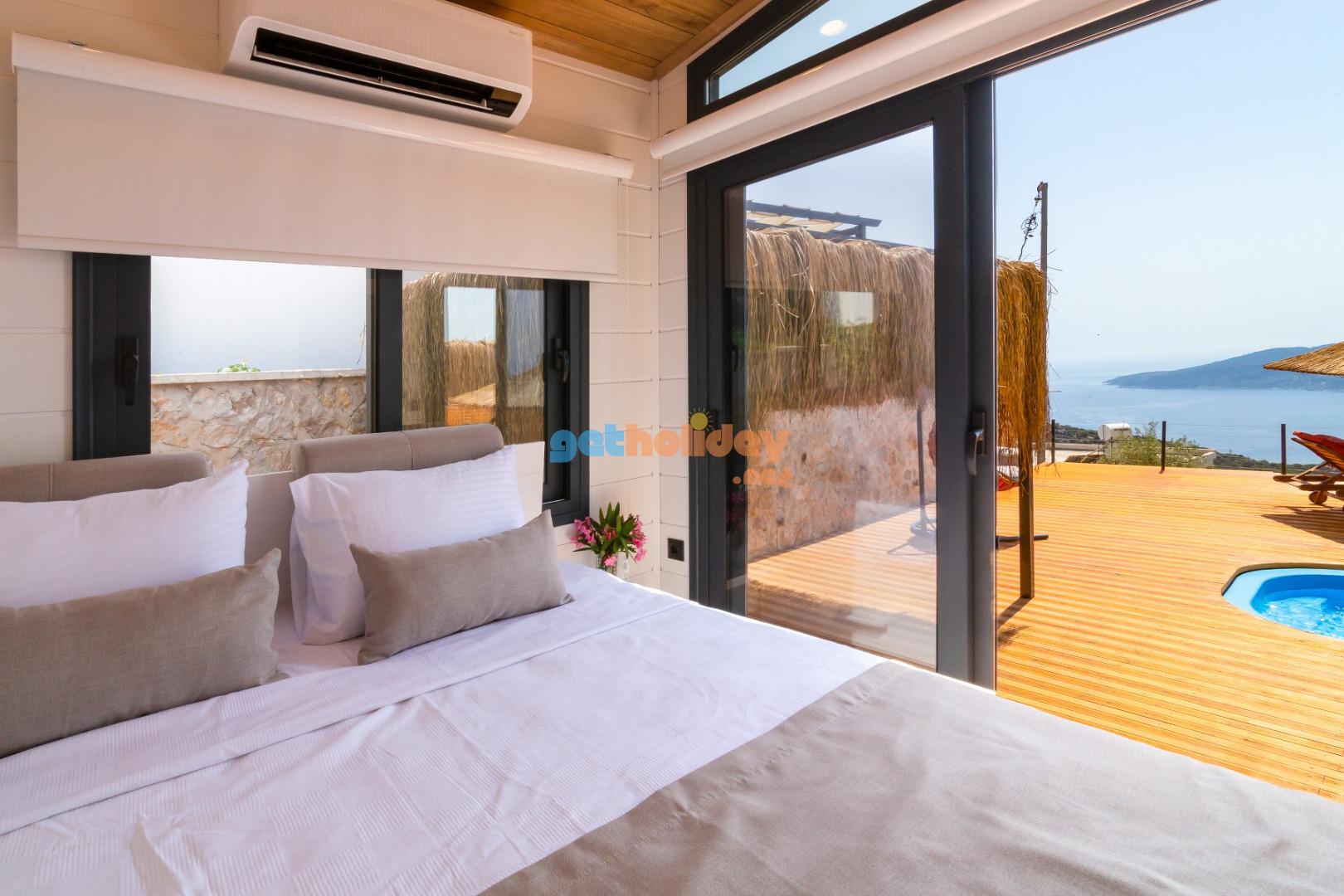 Kalkan Kördere mevkiinde konumlanan muhteşem deniz manzarasına hakim Tatil Villası La Mer Tiny Plus iki yatak odalı olup dört kişi kapasitesine sahip.