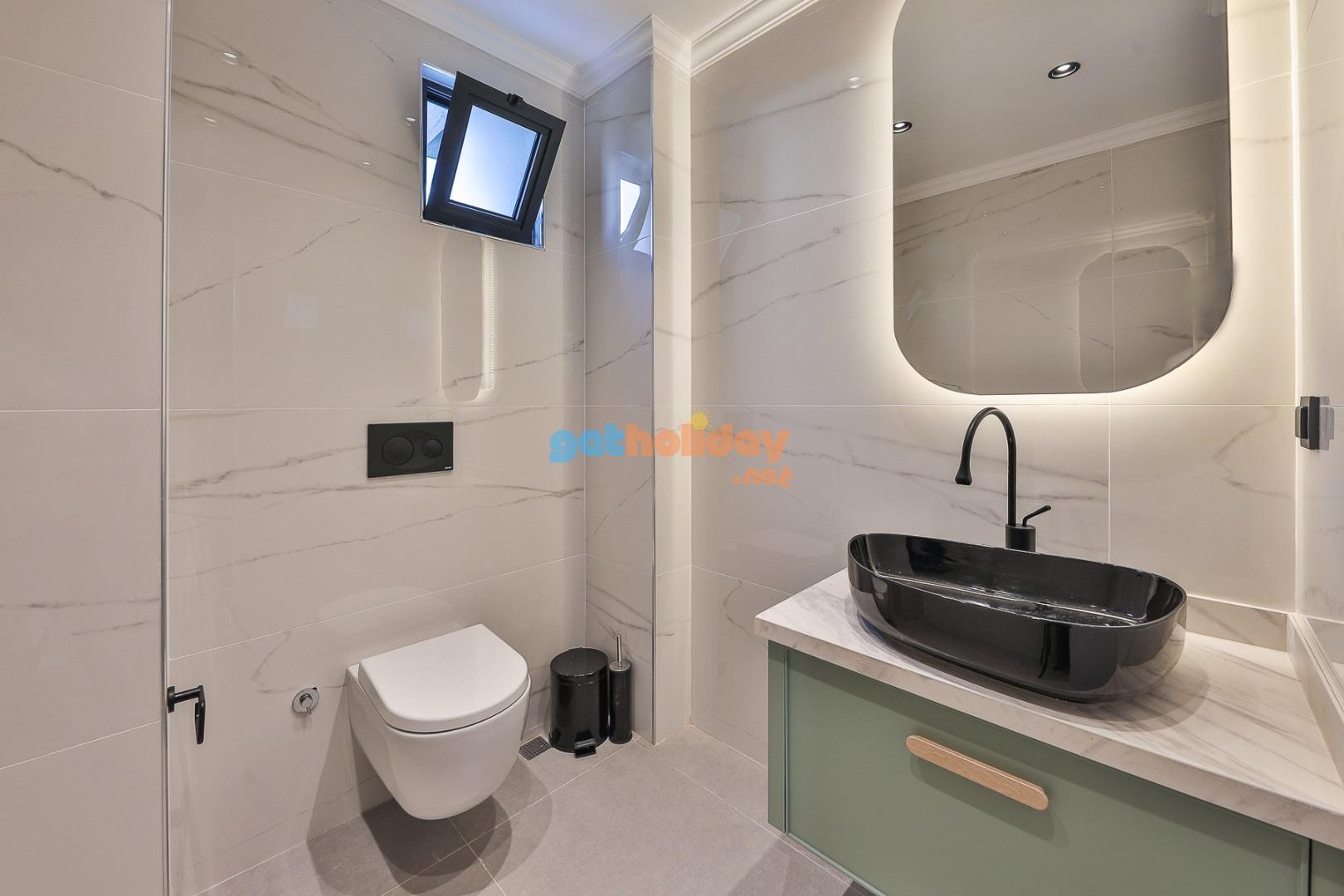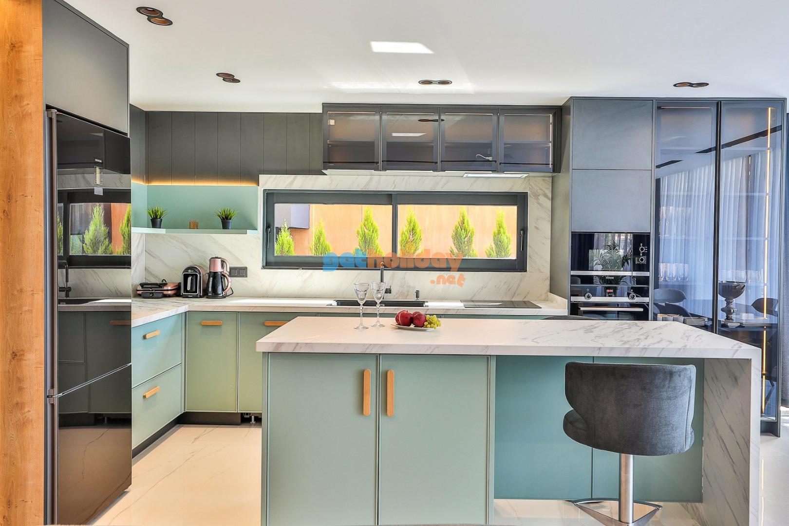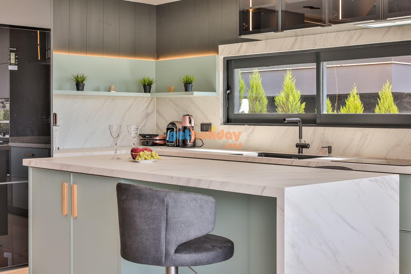 Mutfak : Modern çizgilere sahip bir Amerikan mutfak vardır. Bu mutfakta ihtiyacınız olan her şey elinizin altında bulunmaktadır. Buzdolabı, bulaşık makinesi, ocak, fırın, yemek takımları gibi pek çok mutfak aletlerine rahatlıkla ulaşabilirsiniz.