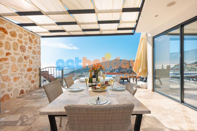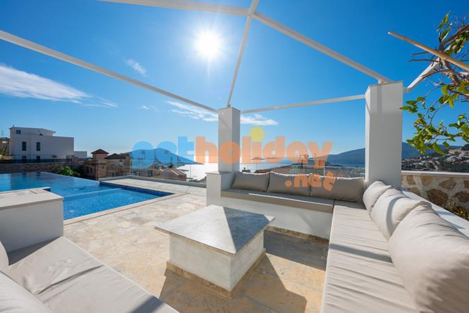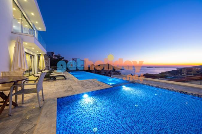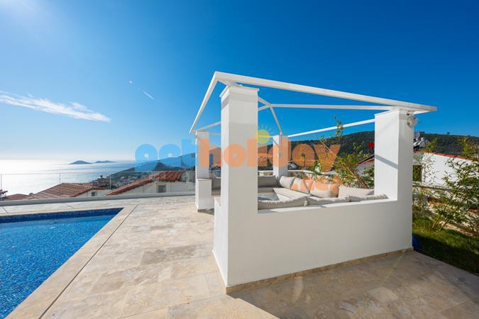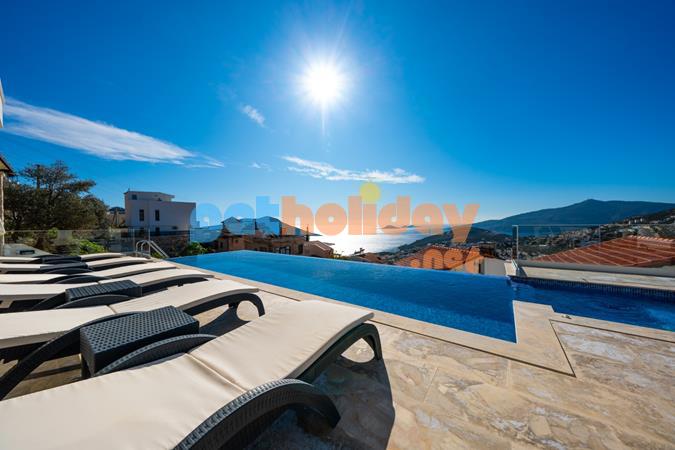 Kalkan Kızıltaş mevkisinde konumlanan Özel Havuzlu, Jakuzili Kiralık Tatil Villası Manzara dört yatak odalı olup sekiz kişi kapasitesine sahip. Büyüleyici deniz manzarasına şahitlik eden Villa Manzara özellikle kalabalık aile ve arkadaş gurupları için ideal bir tercih. Misafirlerimizin unutulmaz bir tatil geçirmesi için her detay düşünülen Villamızda çocuk havuzu ve jakuzi mevcut. Villamızın geniş havuz terasından içeceklerinizi yudumlarken Akdeniz'in mavisi ve yeşilinin büyüleyici tonlarının muhteşem şölenine şahitlik ederek tatil keyfinizi ikiye katlayabilirsiniz. Kalkan merkeze 1 km, plaja ise sadece 1,5 km uzaklıkta yer alan Villa Manzara misafirlerimize rüya gibi bir tatil imkanı sunuyor.