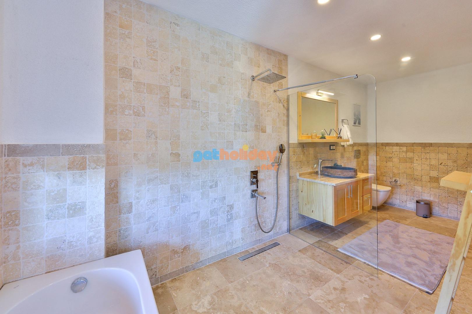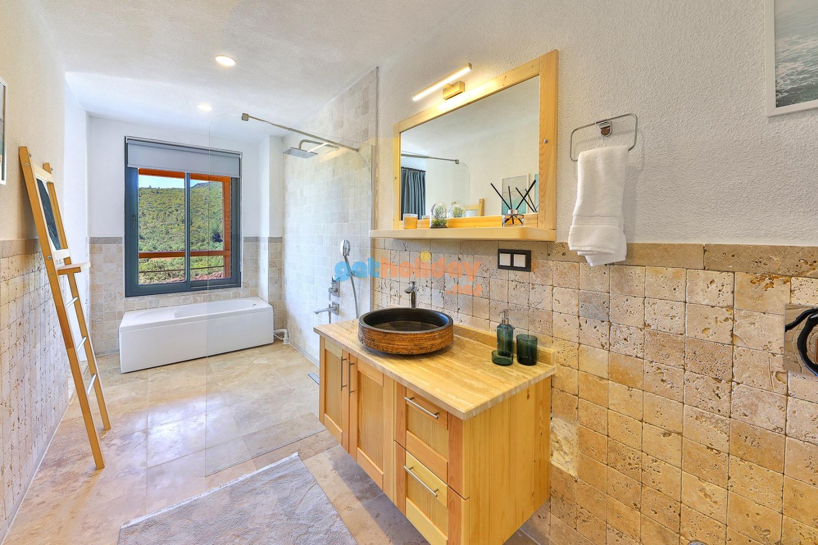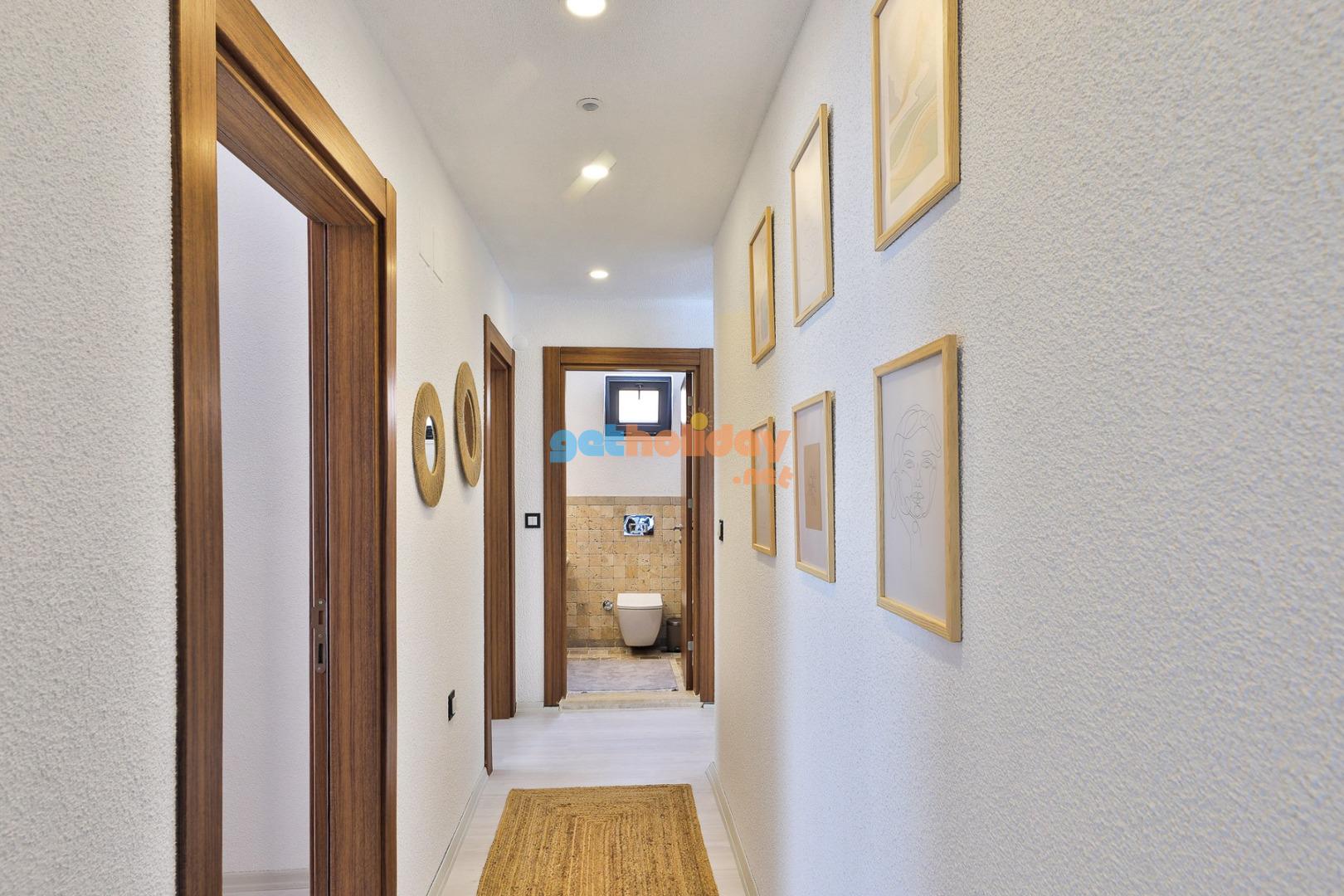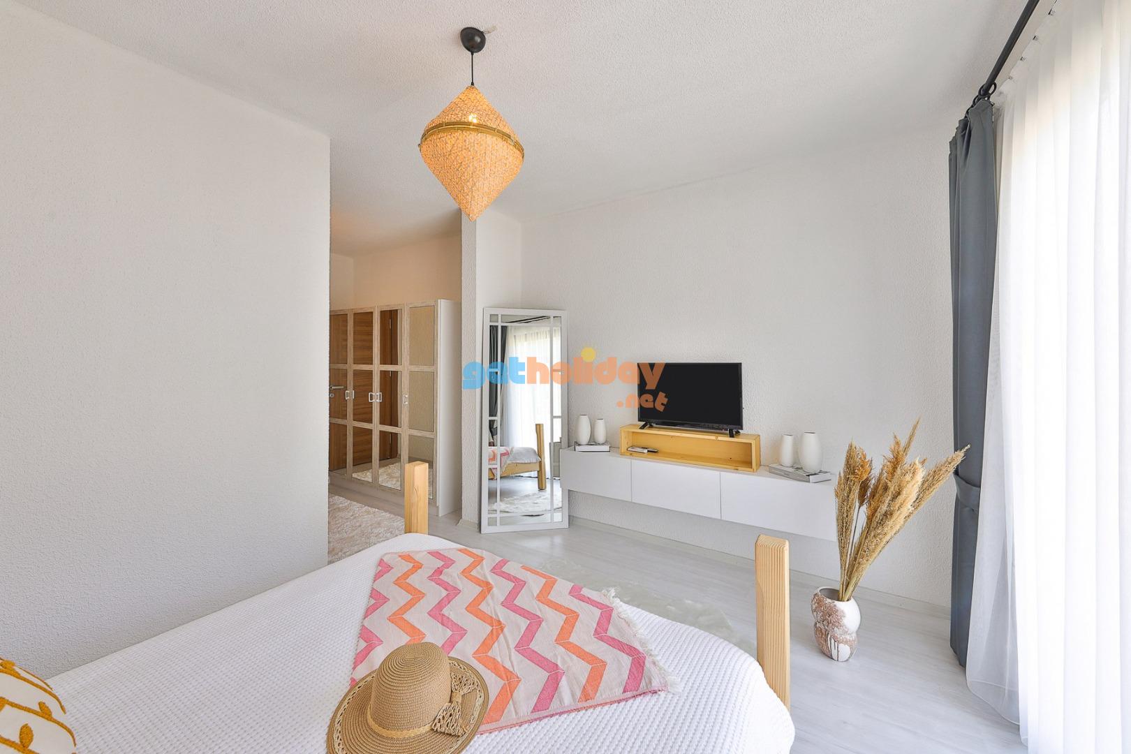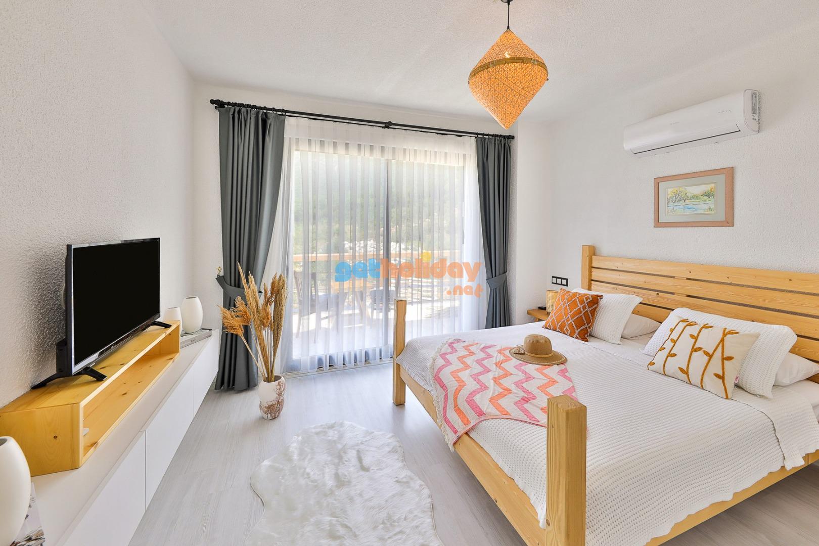 Yatak Odası 1: Doğa  manzaralı çift kişilik yatak, yağmur duş, tuvalet ve küvet , boy  aynası , giysi dolabı, komidin, saç kurutma makinası, klima.