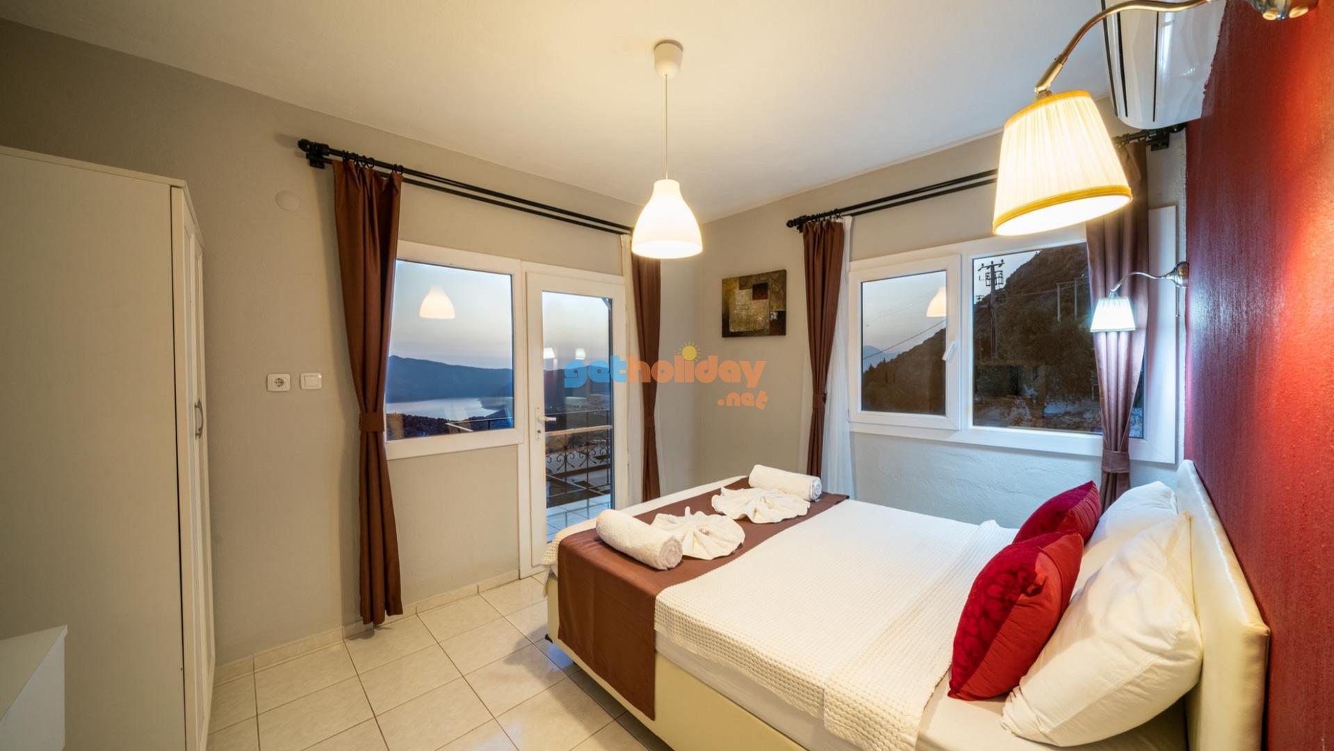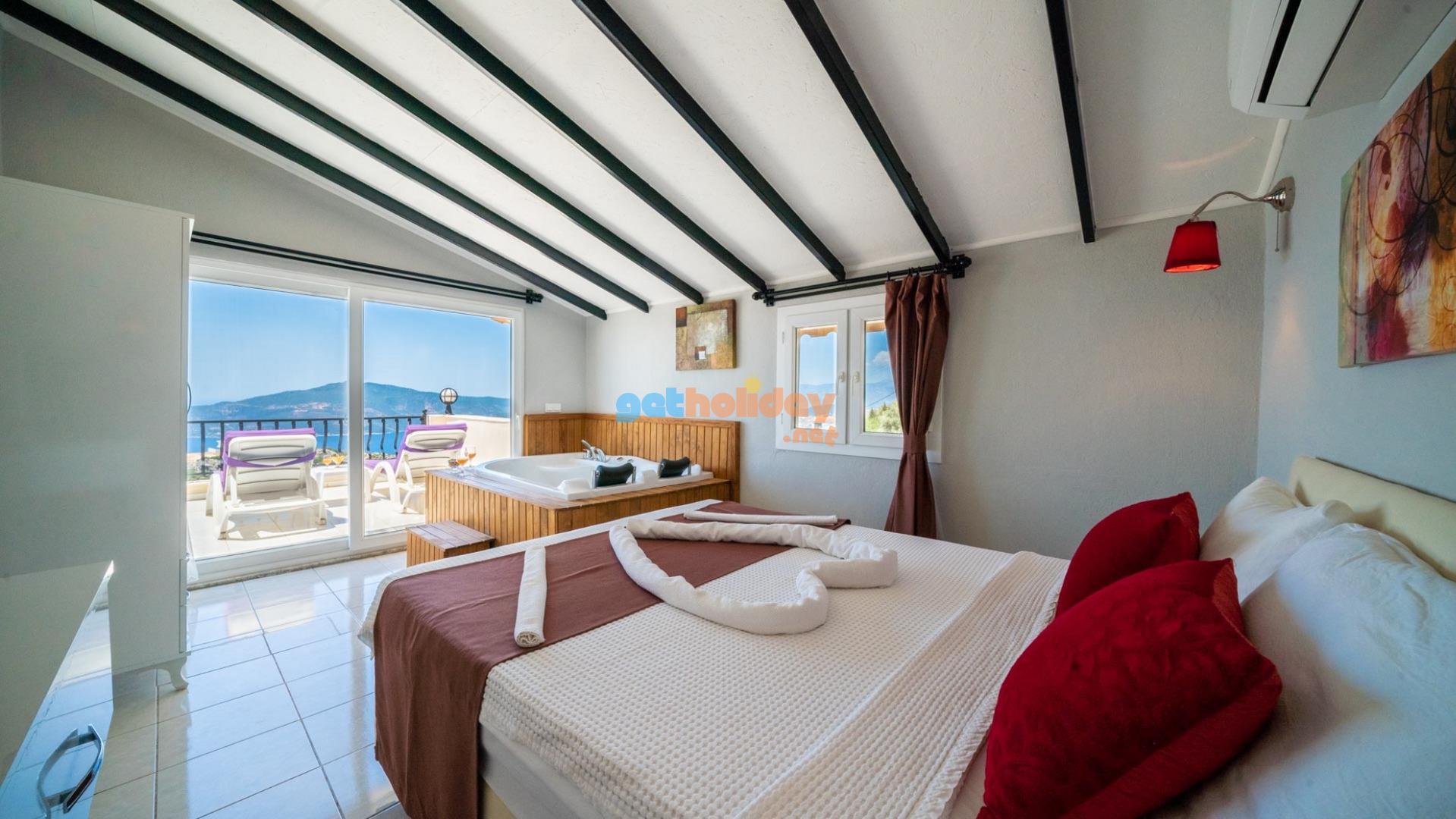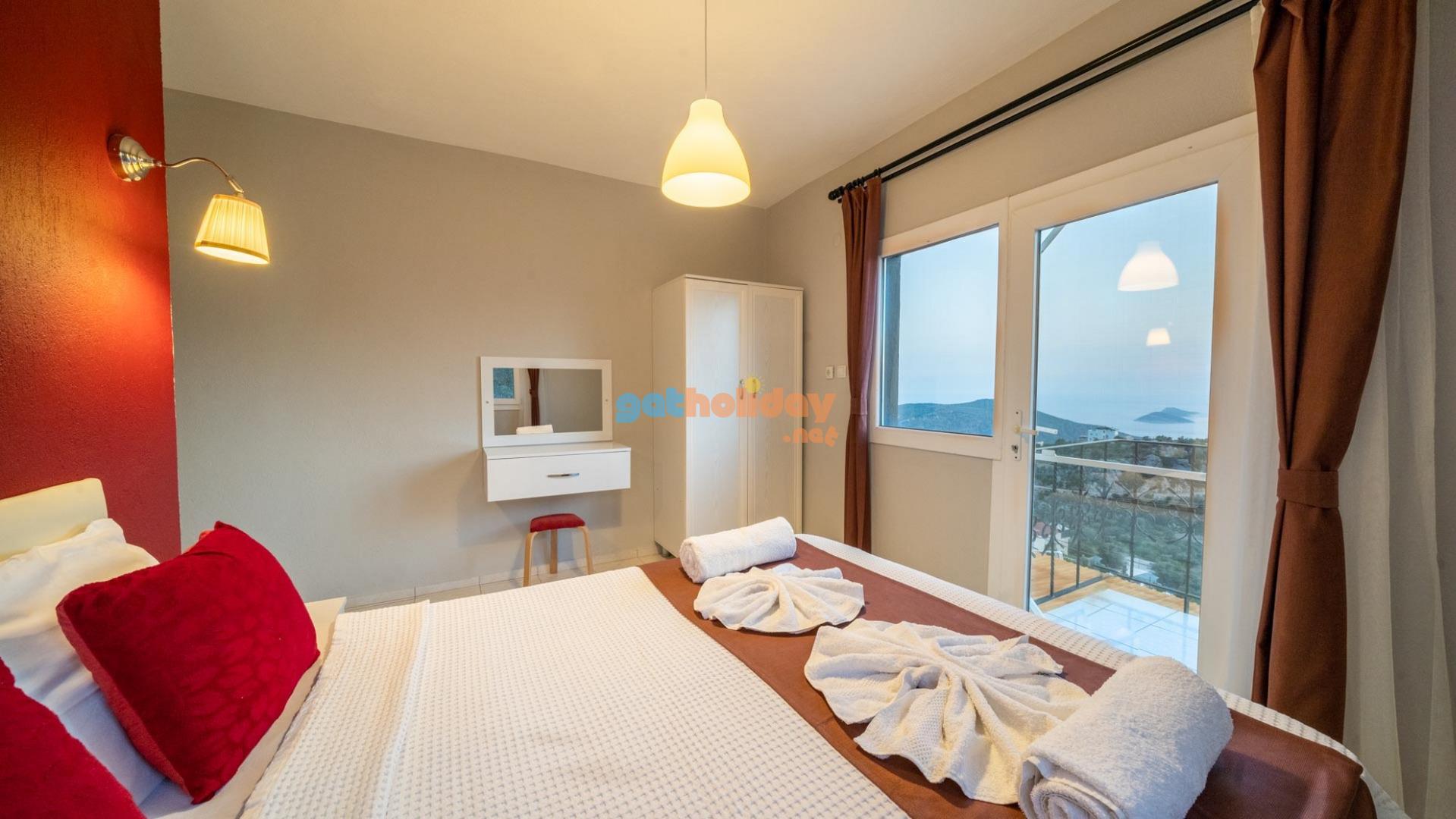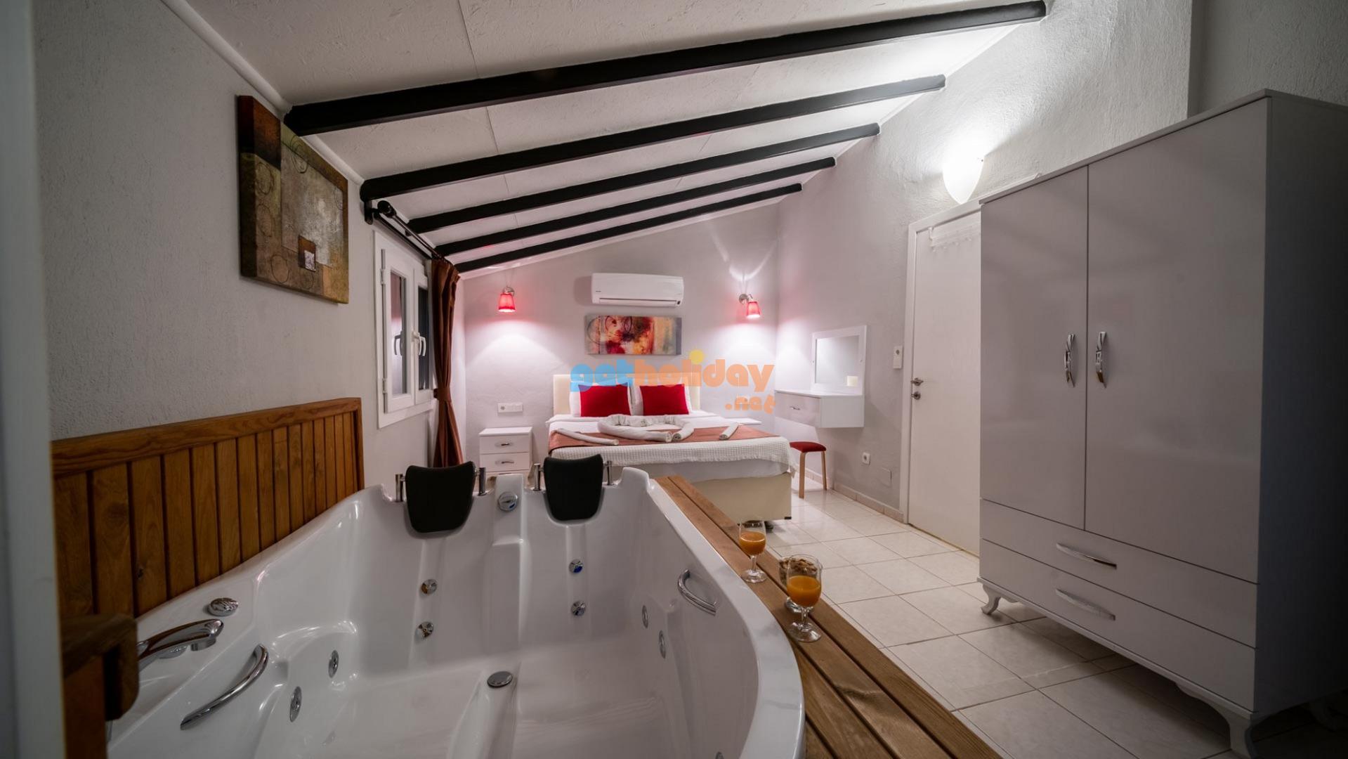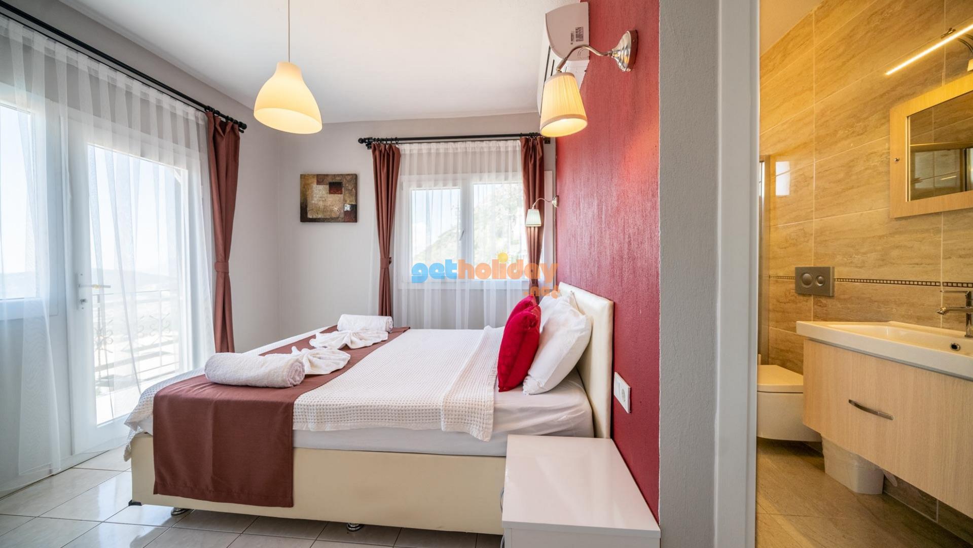 Villamızın içerisinde üç adet yatak odası ve üç adet banyo bulunmaktadır. Birinci yatak odası içerisinde çift kişilik yatak, klima ve banyo bulunmaktadır. İkinci yatak odası içerisinde iki adet tek kişilik yatak ve klima bulunmaktadır. Üçüncü yatak odası suit oda tipinde olup, içerisinde çift kişilik yatak, klima, jakuzi ve küçük bir mutfağı bulunmaktadır. Üç katlı villamızın her katında bir adet ortak banyo bulunmaktadır. Tüm odalarımız orta kat ve üst katta yer almaktadır. Ayrıca terastan güzel bir manzara izleyebilirsiniz.