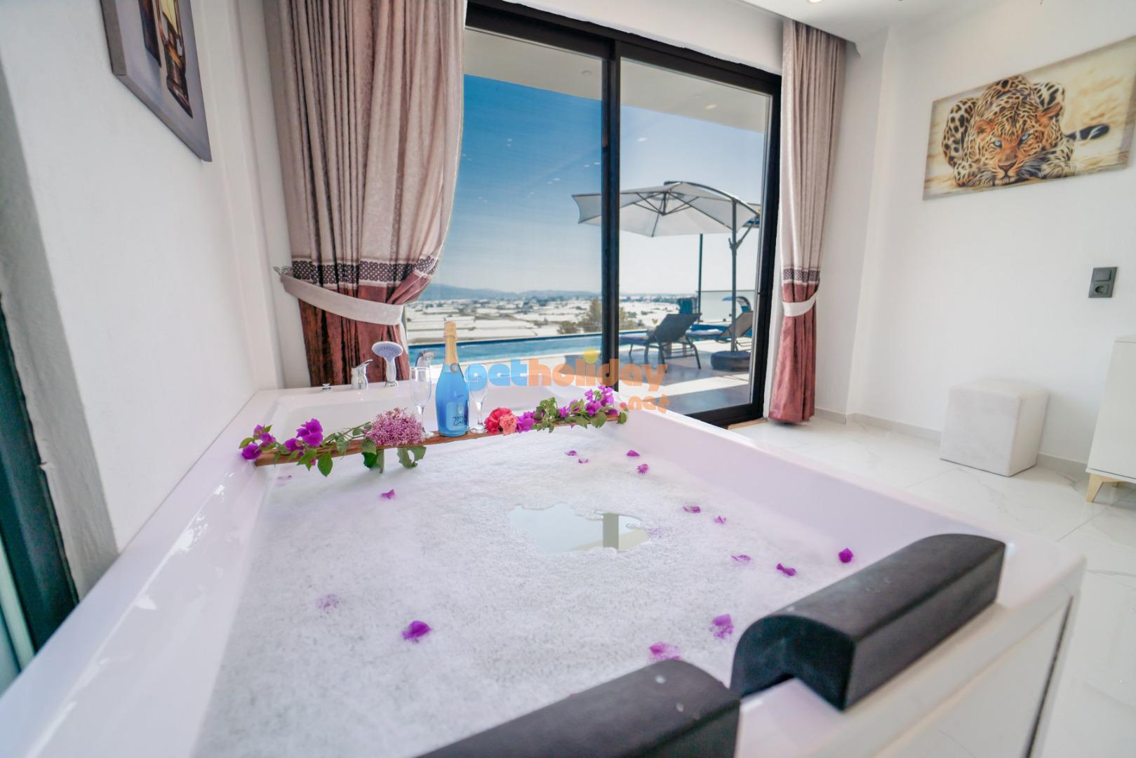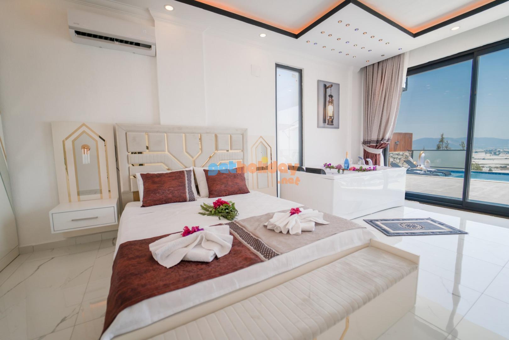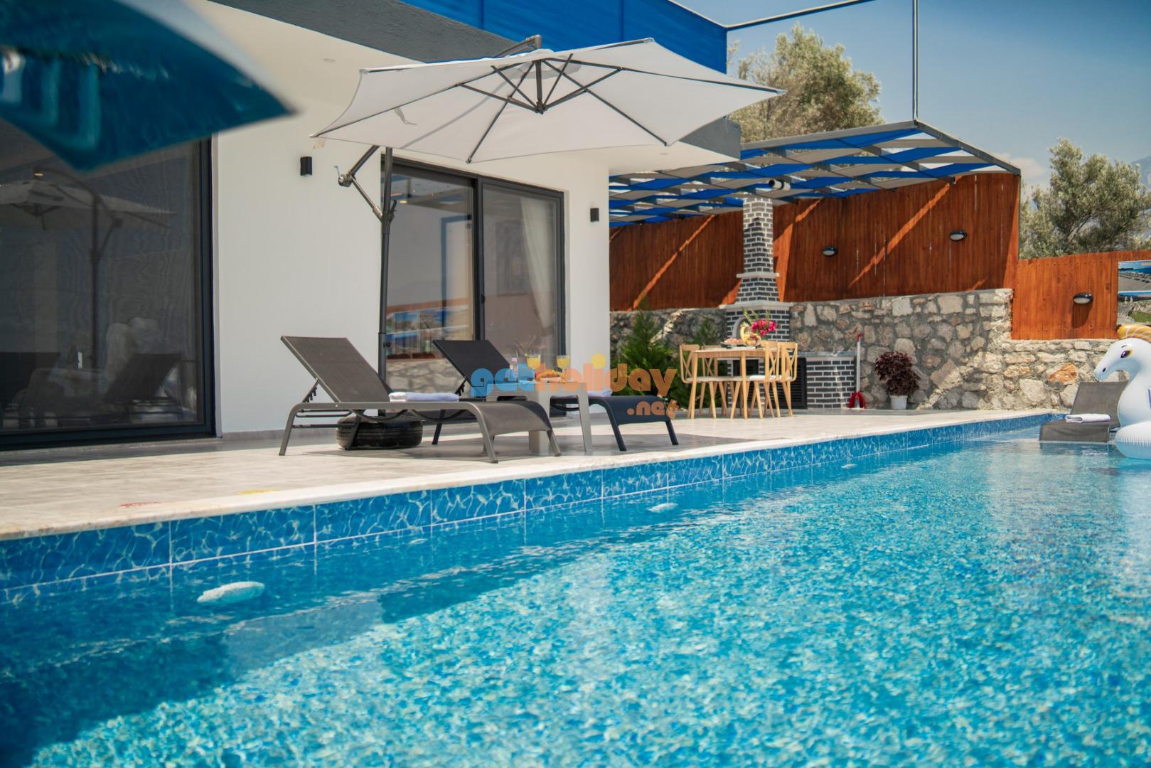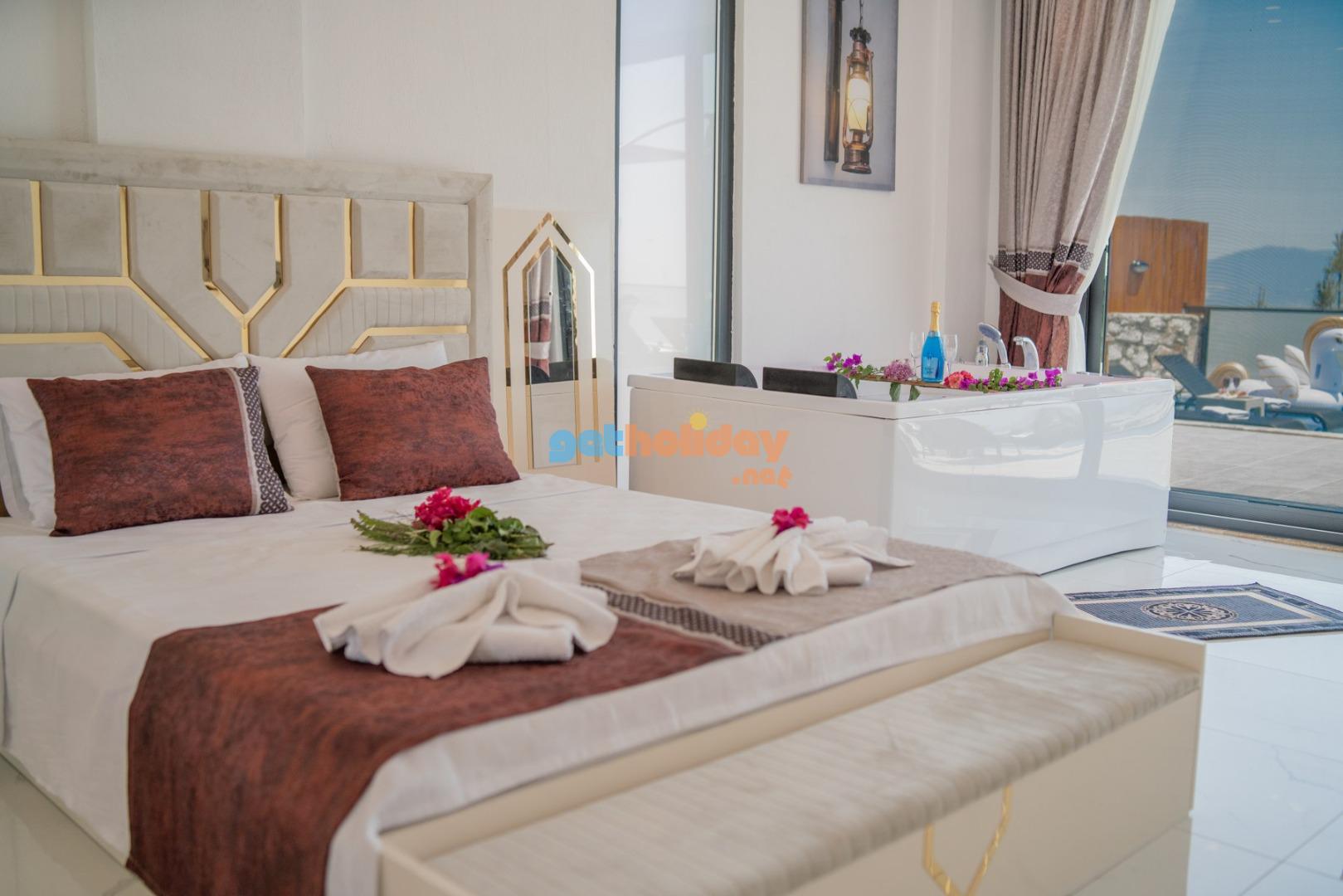 Villa Mega Star Kalkan / Kınık bölgesinde yer almaktadır. Toplam 2 yatak odalı 4 kişilik konaklama kapasitesine sahiptir. Yatak odasında çift kişilik jakuzisi bulunmaktadır. Çekirdek aileler ve balayı çiftlerimiz için ideal bir seçenektir.Villamız Korunaklı yapıya sahiptir.Dışarıdan görünmez. Muhafazakar misafirlerimiz için oldukça uygundur. Doğa ile iç içe konumlandırılmış olan villamız, siz değerli misafirlerimize güzel bir tatil imkanı sunmaktadır.