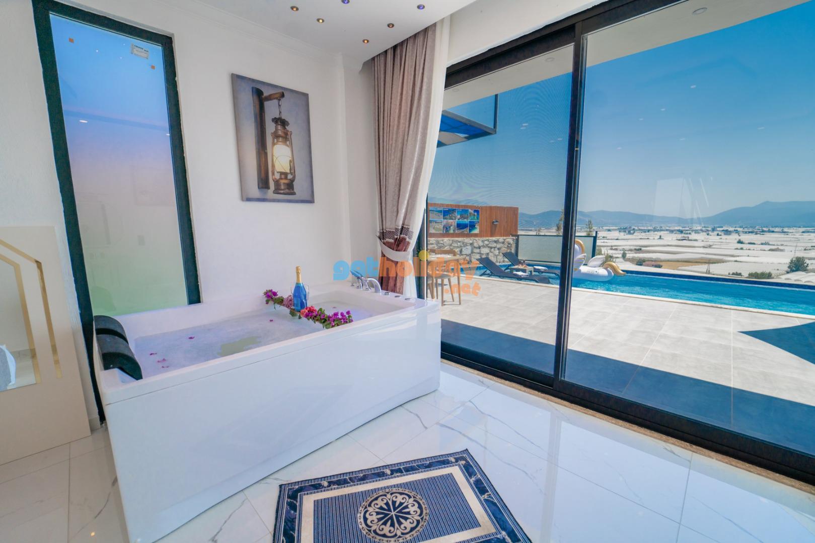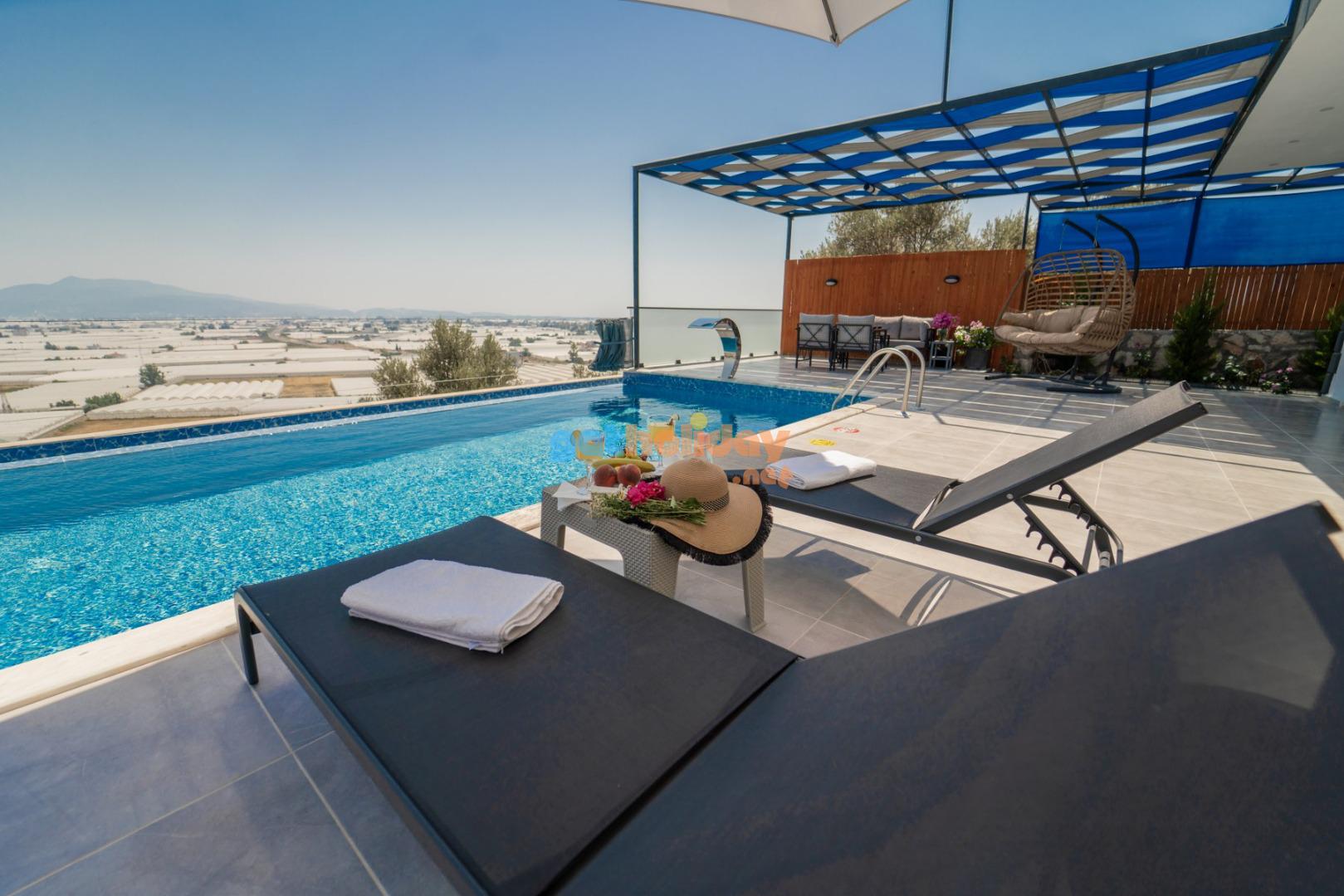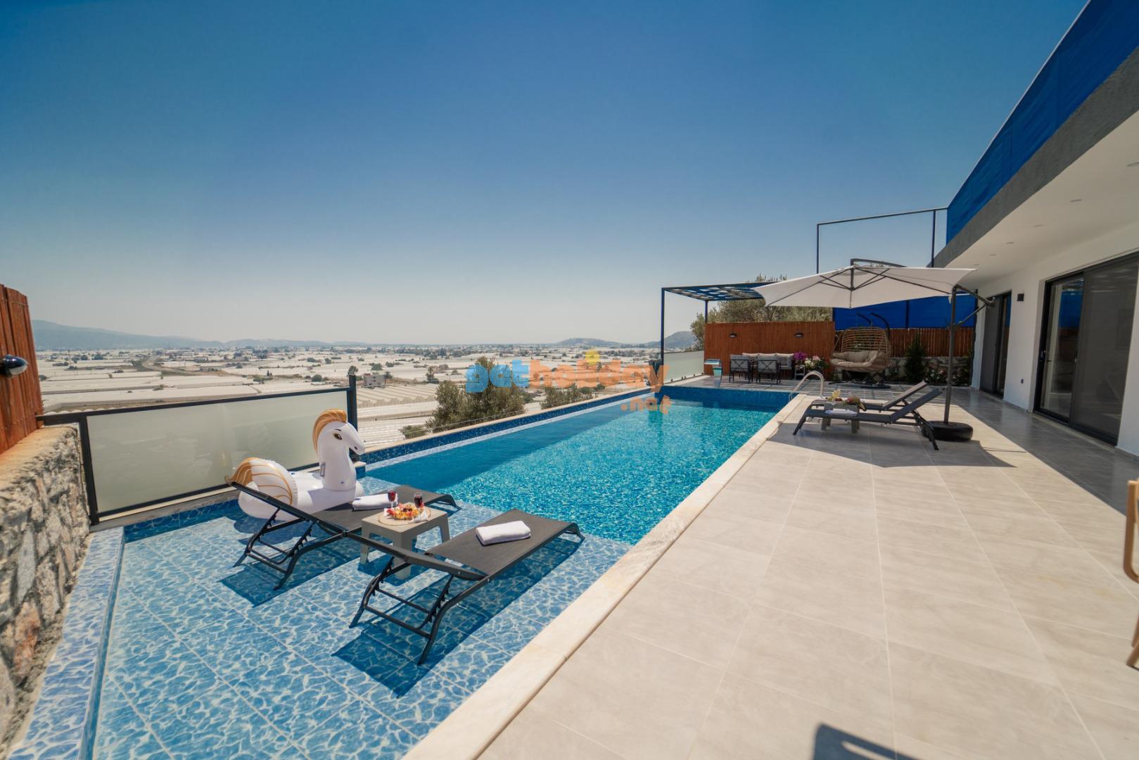 Villa Mega Star Kalkan / Kınık bölgesinde yer almaktadır. Toplam 2 yatak odalı 4 kişilik konaklama kapasitesine sahiptir. Yatak odasında çift kişilik jakuzisi bulunmaktadır. Çekirdek aileler ve balayı çiftlerimiz için ideal bir seçenektir.Villamız Korunaklı yapıya sahiptir.Dışarıdan görünmez. Muhafazakar misafirlerimiz için oldukça uygundur. Doğa ile iç içe konumlandırılmış olan villamız, siz değerli misafirlerimize güzel bir tatil imkanı sunmaktadır.