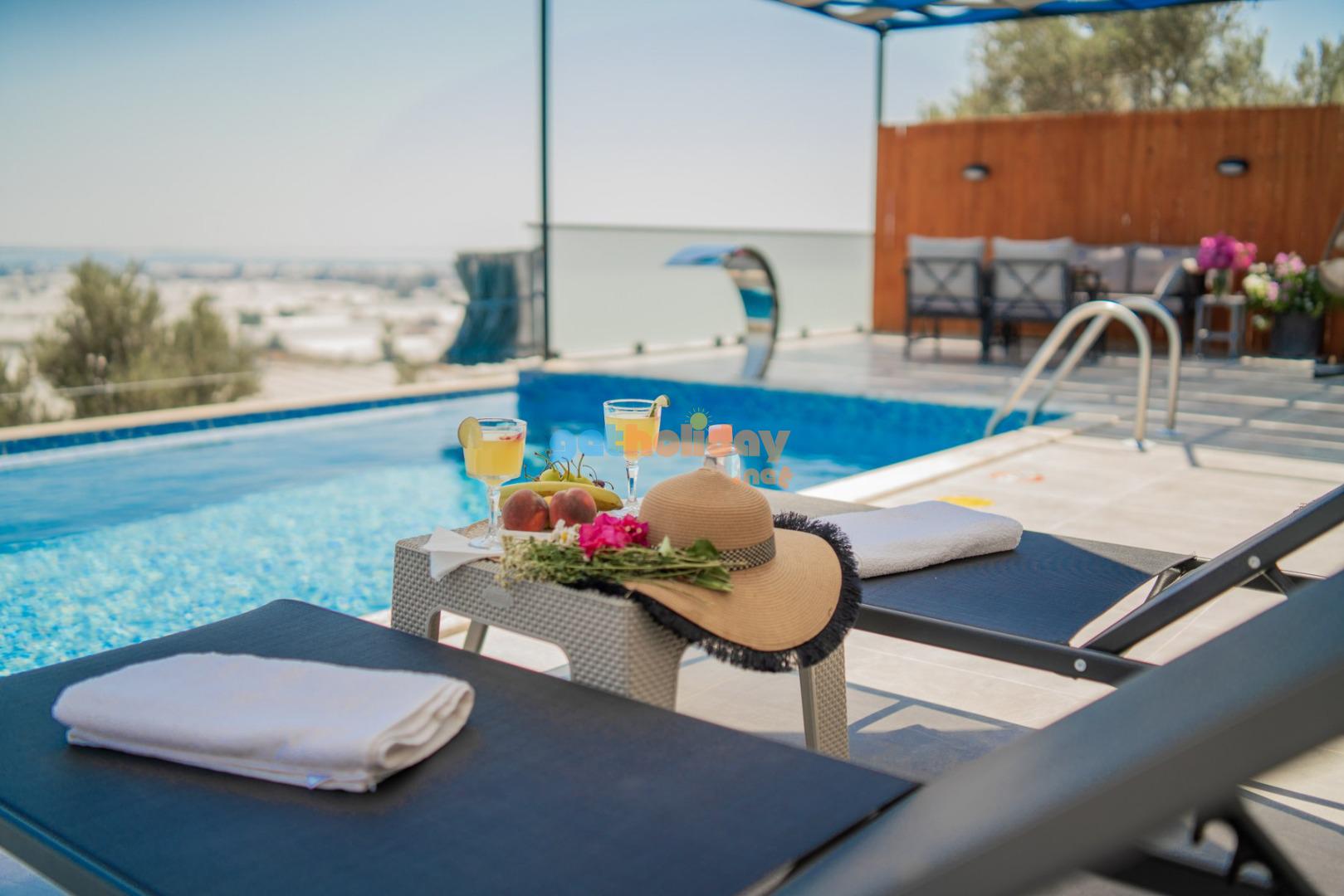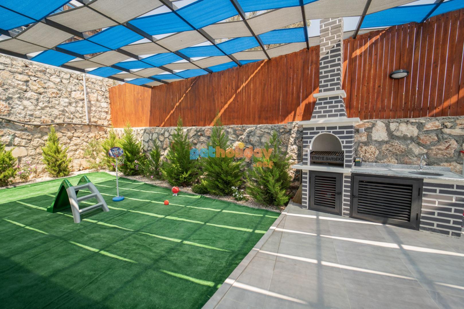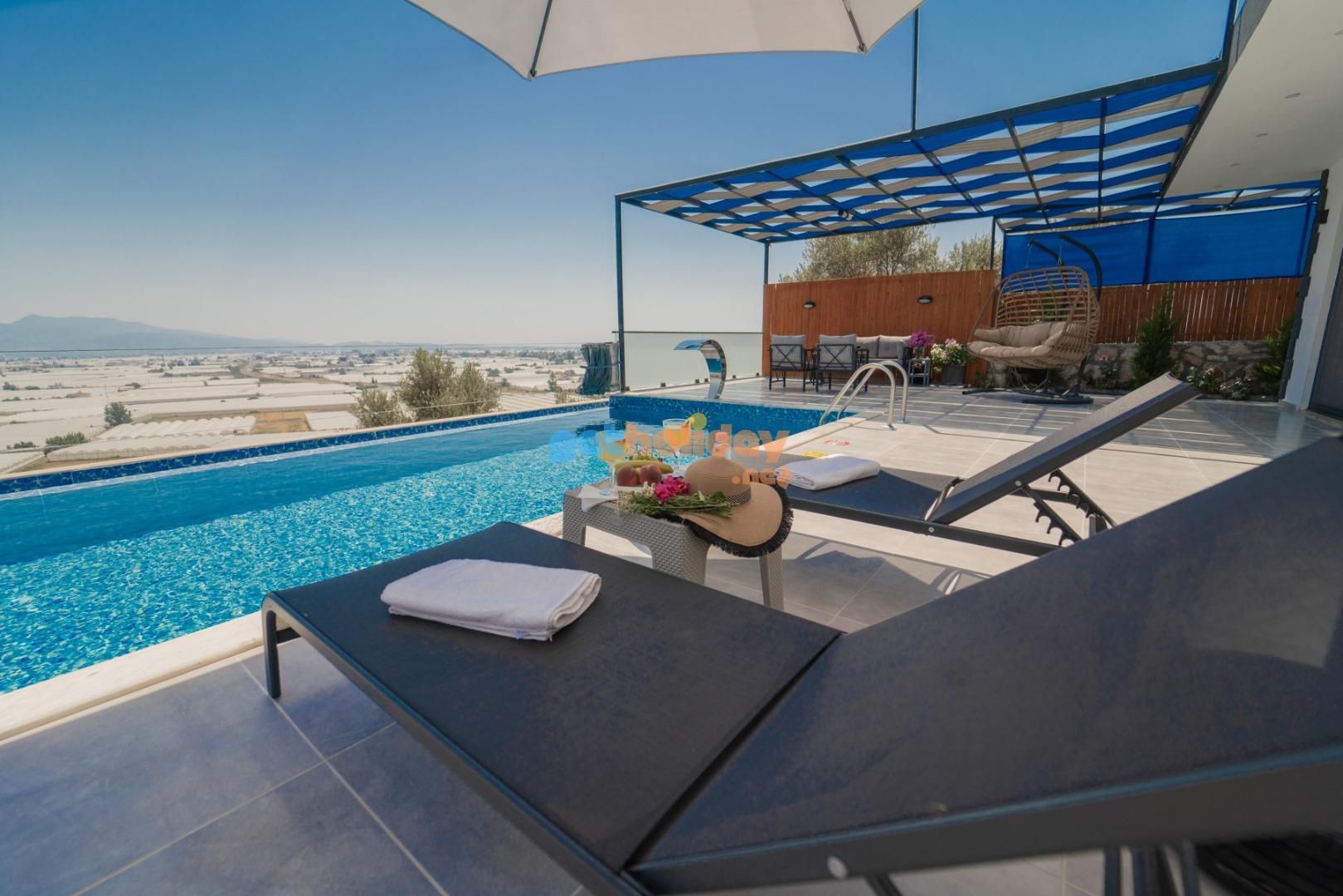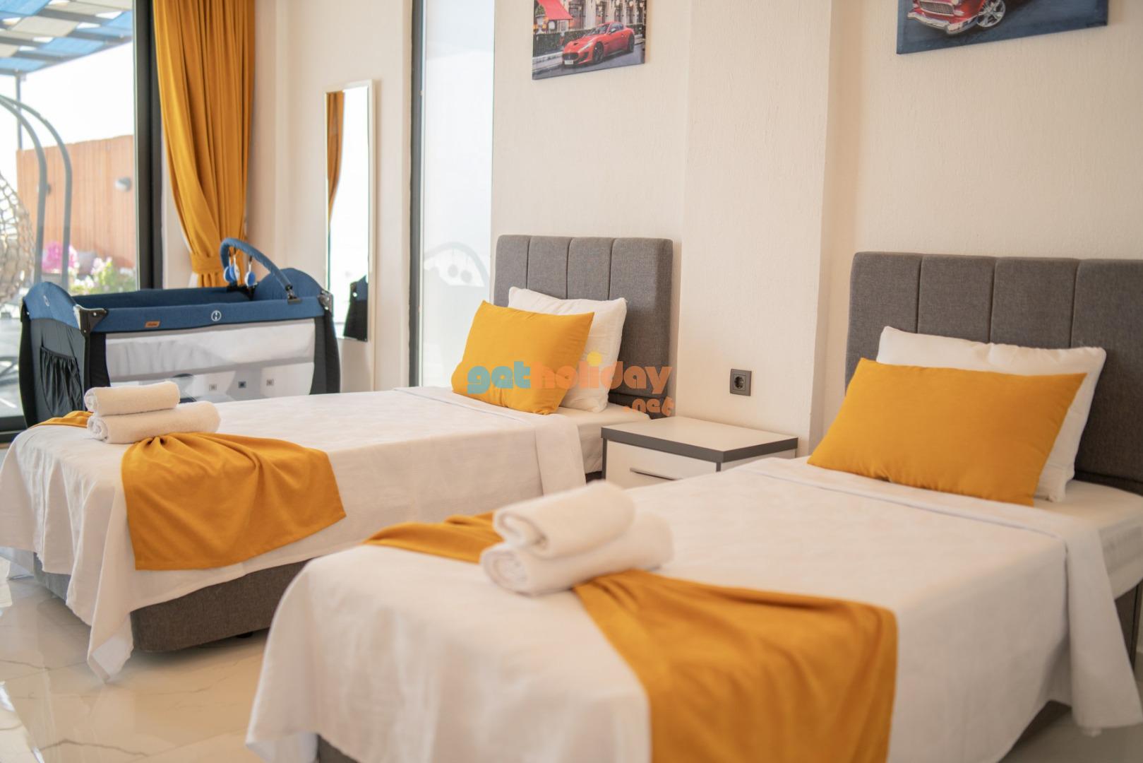 Villa Mega Star Kalkan / Kınık bölgesinde yer almaktadır. Toplam 2 yatak odalı 4 kişilik konaklama kapasitesine sahiptir. Yatak odasında çift kişilik jakuzisi bulunmaktadır. Çekirdek aileler ve balayı çiftlerimiz için ideal bir seçenektir.Villamız Korunaklı yapıya sahiptir.Dışarıdan görünmez. Muhafazakar misafirlerimiz için oldukça uygundur. Doğa ile iç içe konumlandırılmış olan villamız, siz değerli misafirlerimize güzel bir tatil imkanı sunmaktadır.