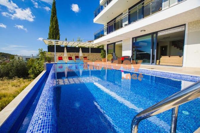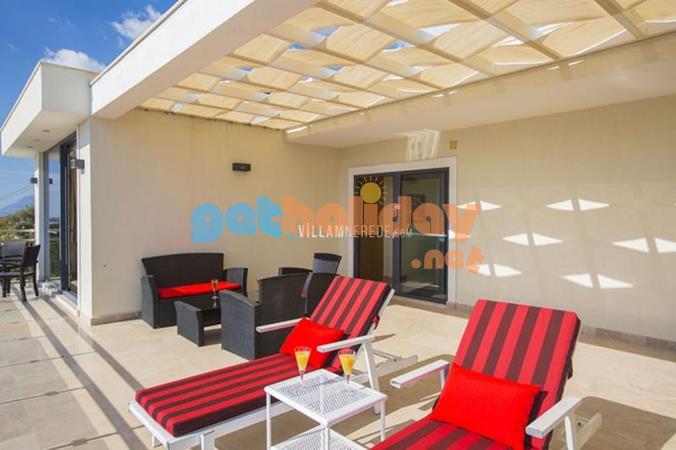 Kalkan Akbel mevkiinde konumlanan deniz manzaralı lüks Kiralık Tatil Villası Merak, altı yatak odalı olup oniki kişi kapasitesine sahip. Muhteşem deniz manzarasına şahitlik eden Villa Merak özellikle kalabalık aile ve arkadaş gurupları için ideal bir tercih. Kalkan şehir merkezine sadece 2 kilometre uzaklıkta yer alan Villa Merak büyüleyici manzarası ile sizlere unutulmaz bir tatil imkanı sunuyor. Geniş havuz terasında manzaranın ve güneşin tadını çıkarabilir akşam ise ay ışığının büyüleyen şölenine şahitlik ederek tatil keyfinizi ikiye katlayabilirsiniz.