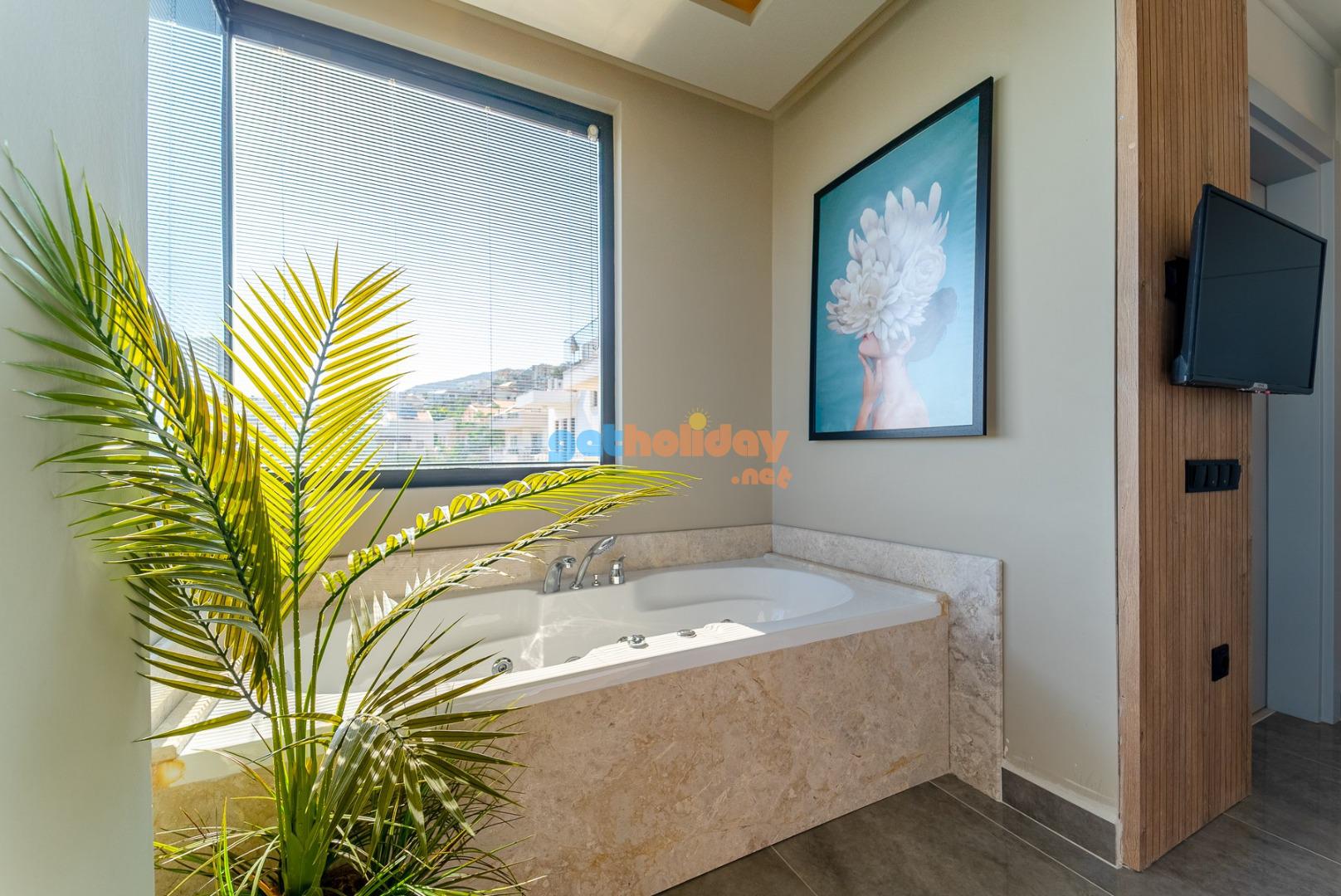 3. Yatak odası: Suit aile odasında 1 adet çift kişilik yatak ,komodin, TV, makyaj masası ,elbise dolabı,klima, jakuzi banyo/WC bulunmaktadır.