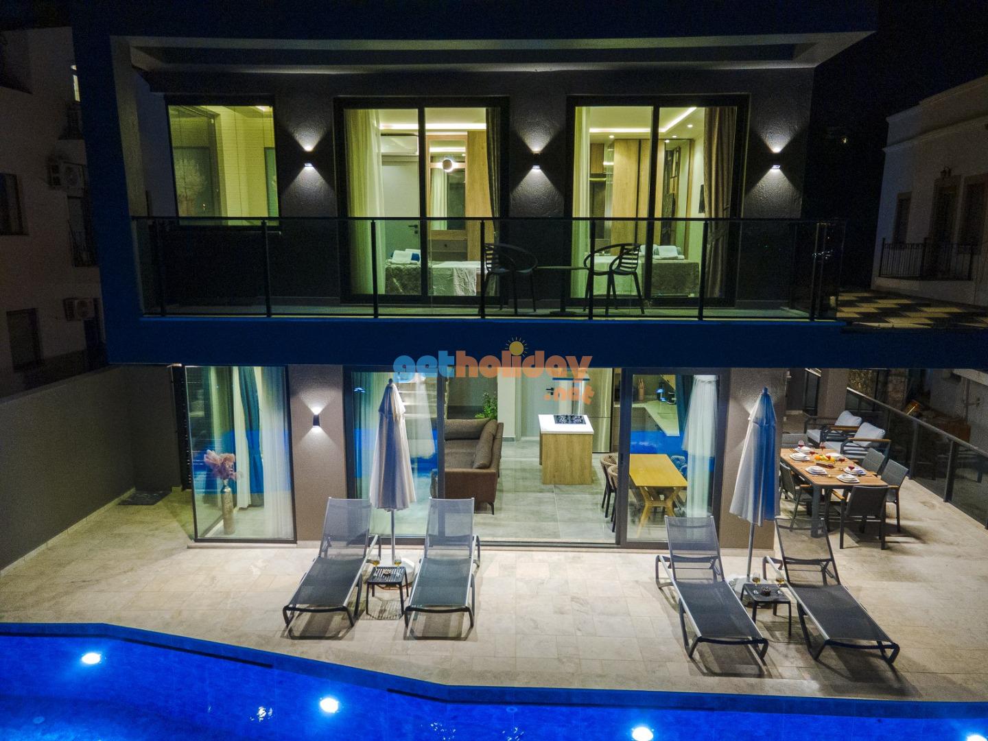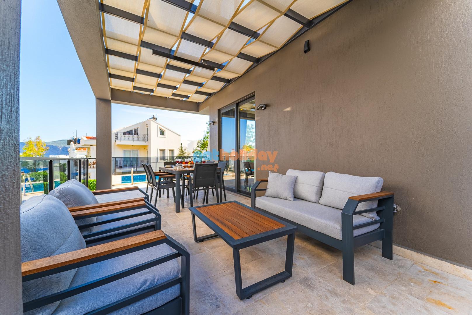 NOT: Villamızın arka kısmında aynı villa sahibine ait Villa Simurg adında bir ikiz villa daha bulunmaktadır. Aynı anda yakın konumda 2 villa kiralamak isteyen ailelerimiz için oldukça ideal bir tercihtir.