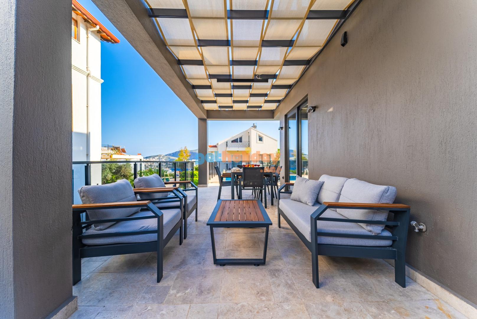 Villa Muhil Kalkan/Ortaalan mevkiinde konumlanan merkeze yakın yeni bir villadır. Villamız hem denize hem de merkeze yürüme mesafesi olup sizler için bir tercih meselesidir. Bütün bu özellikler ile villamız, siz değerli misafirlerimizi beklemektedir. Villamızın 2 adet geniş terası bulunup sizlerin terasında doğa manzarasını izleyip keyifli vakit geçirebilmeniz için düşünülmüş mini orta sehpa ve sandalye bulunmaktadır.