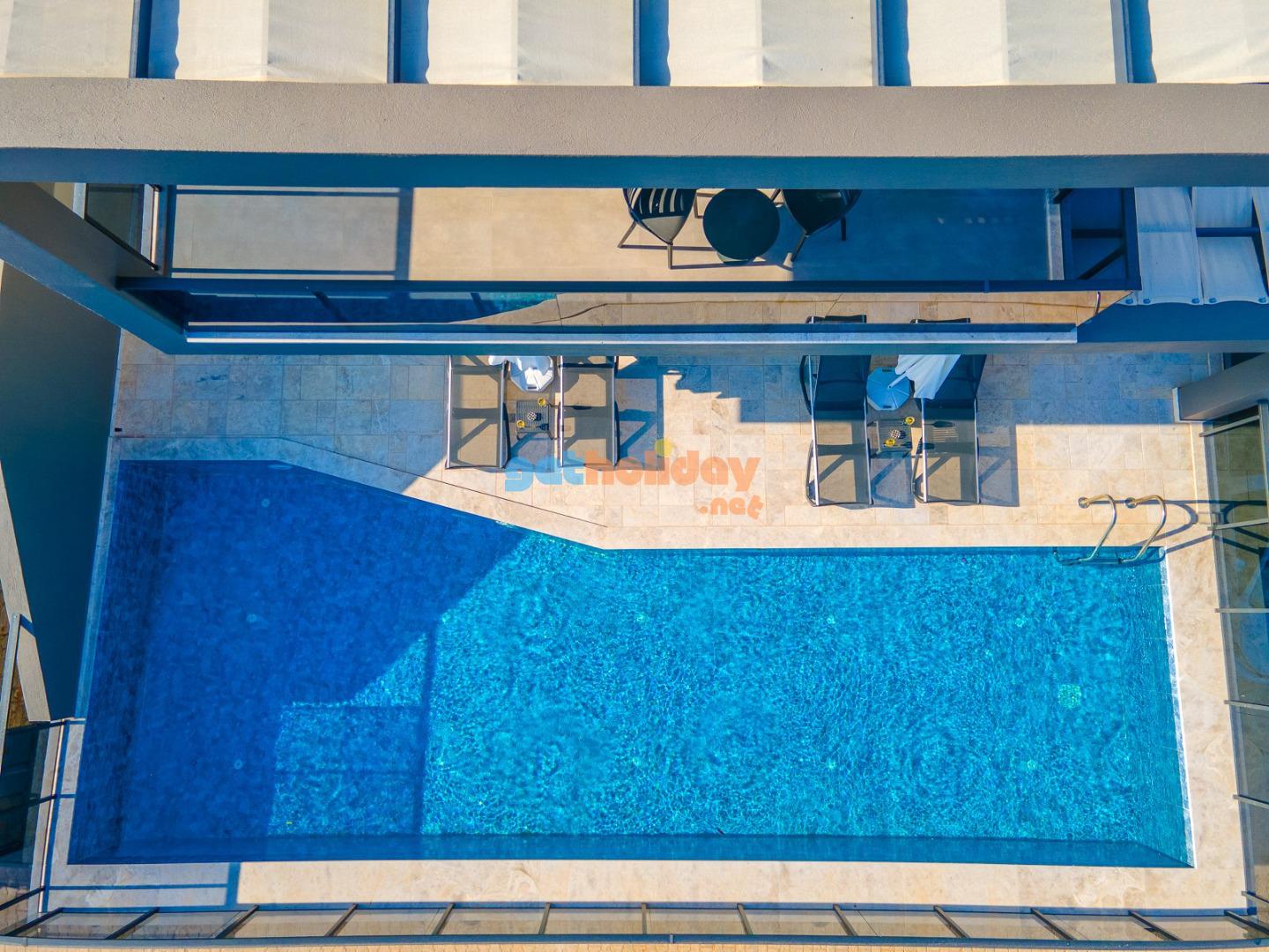 Havuz : Özel bahçe içerisinde uzunluk 12 m; genişlik 3,30 m; derinlik 1.40 m; ölçülerinde özel yüzme havuzu bulunmaktadır. Havuz ve bahçe bakımı günde 1 kez sabah veya akşam yapılmaktadır. Havuz kenarında güneşlenme terası vardır.