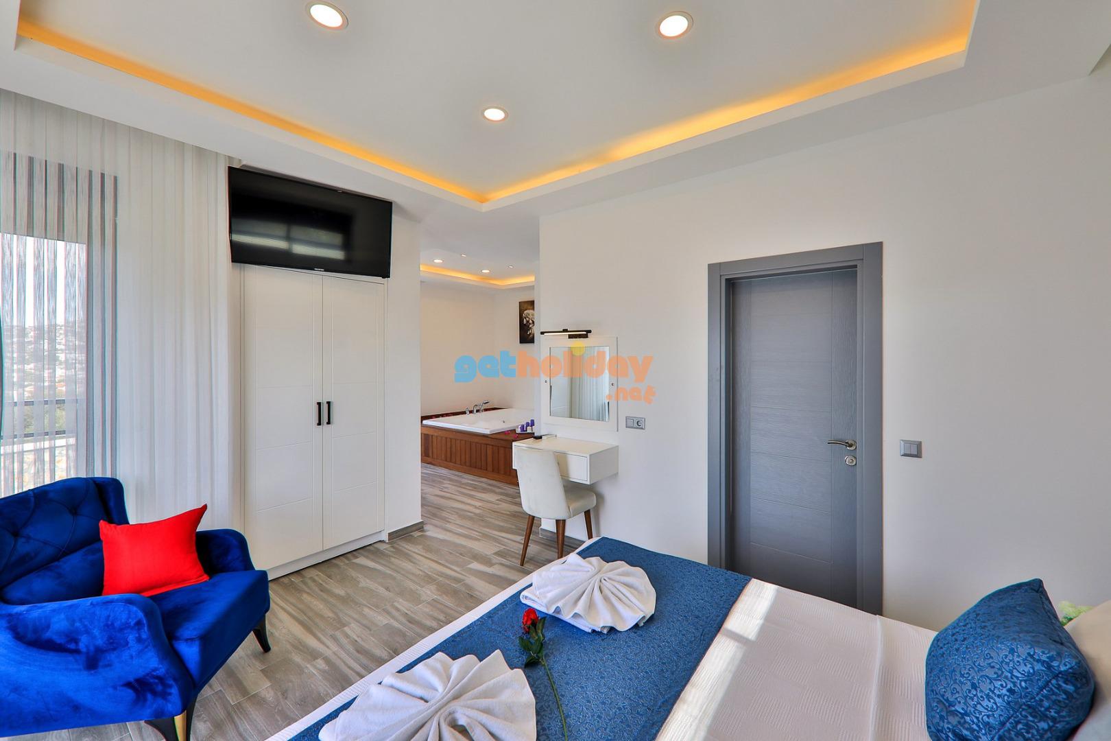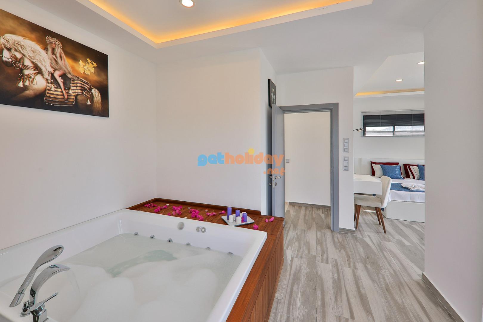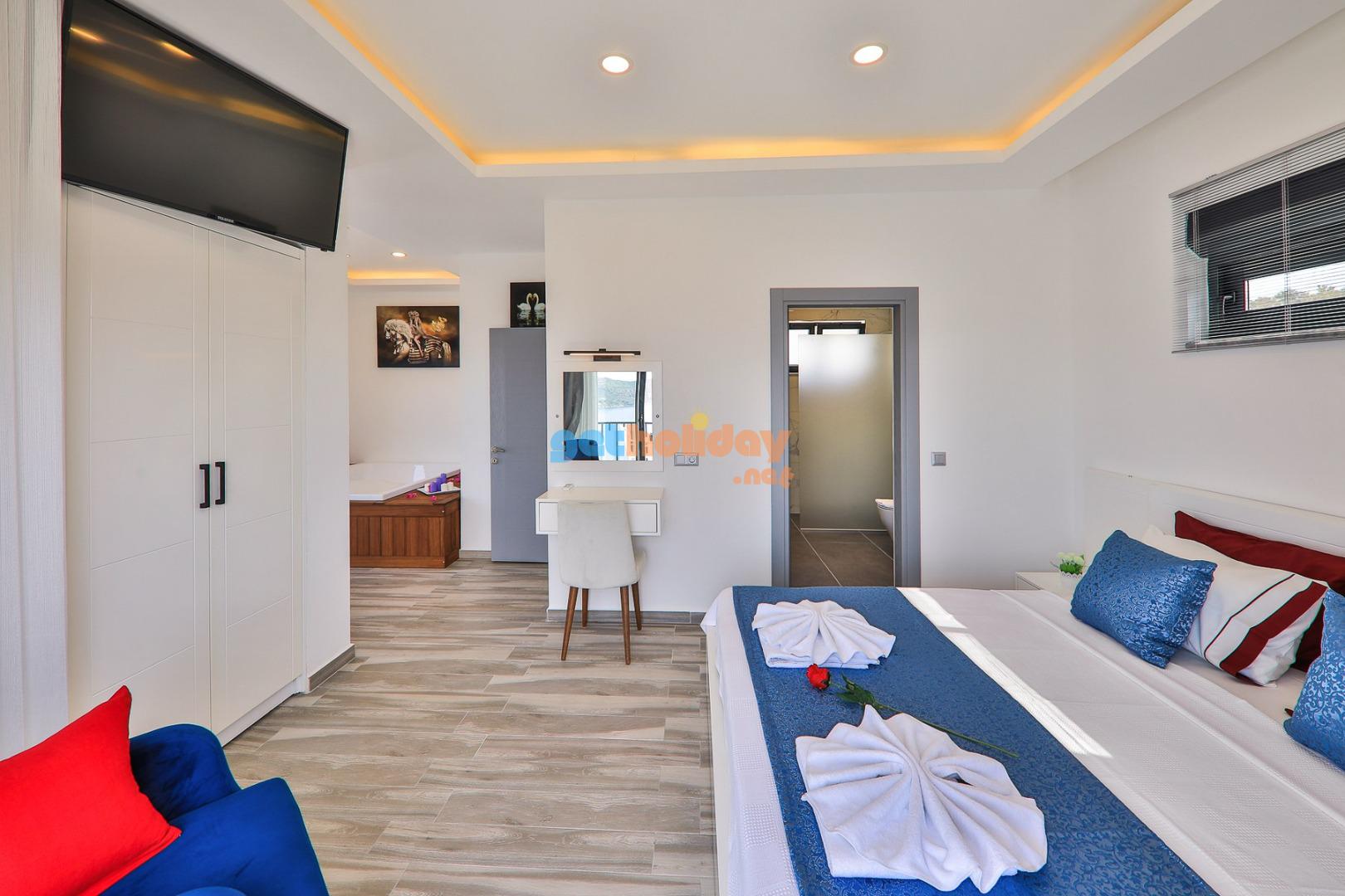 Birinci yatak odasında bir adet çift kişilik yatak, jakuzi ve banyo bulunmaktadır.