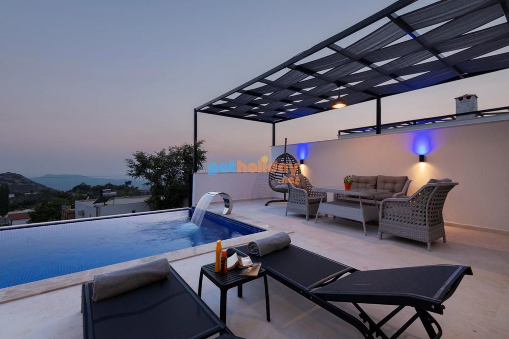 Kalkan İslamlar Bölgesinde konumlanmış olan 6 kişilik, 3 yatak odalı Villa Nur 2, Huzur dolu doğada bulunan uzaktan deniz manzarasına sahip, özenle dekore edilmiş modernli ve lüks dizayn, odalar geniş ve ferah, süit odamızda özel geniş jakuzisi, havuz terasında özel yüzme havuzlu, kobra şelalesi, çocuk havuzu, mangal, oturma grubu vb gibi tatil hayalinizi kusursuz bir şekilde hayatınıza anlam katacağınızdan emin olabilirsiniz.