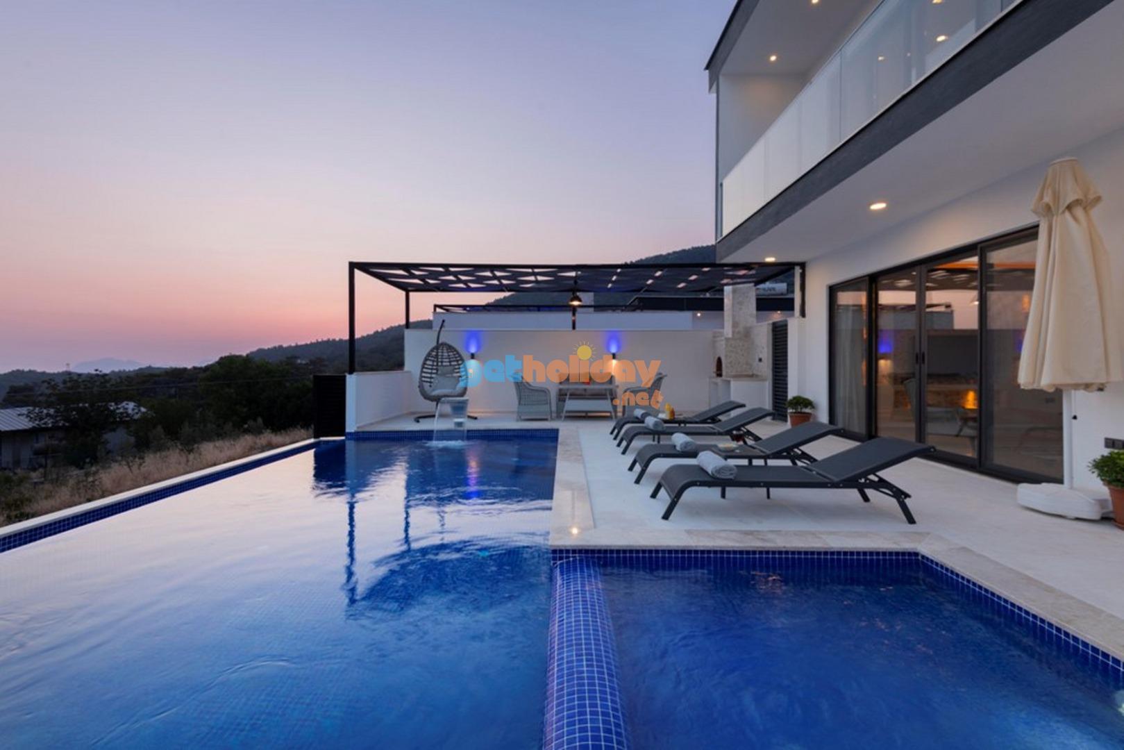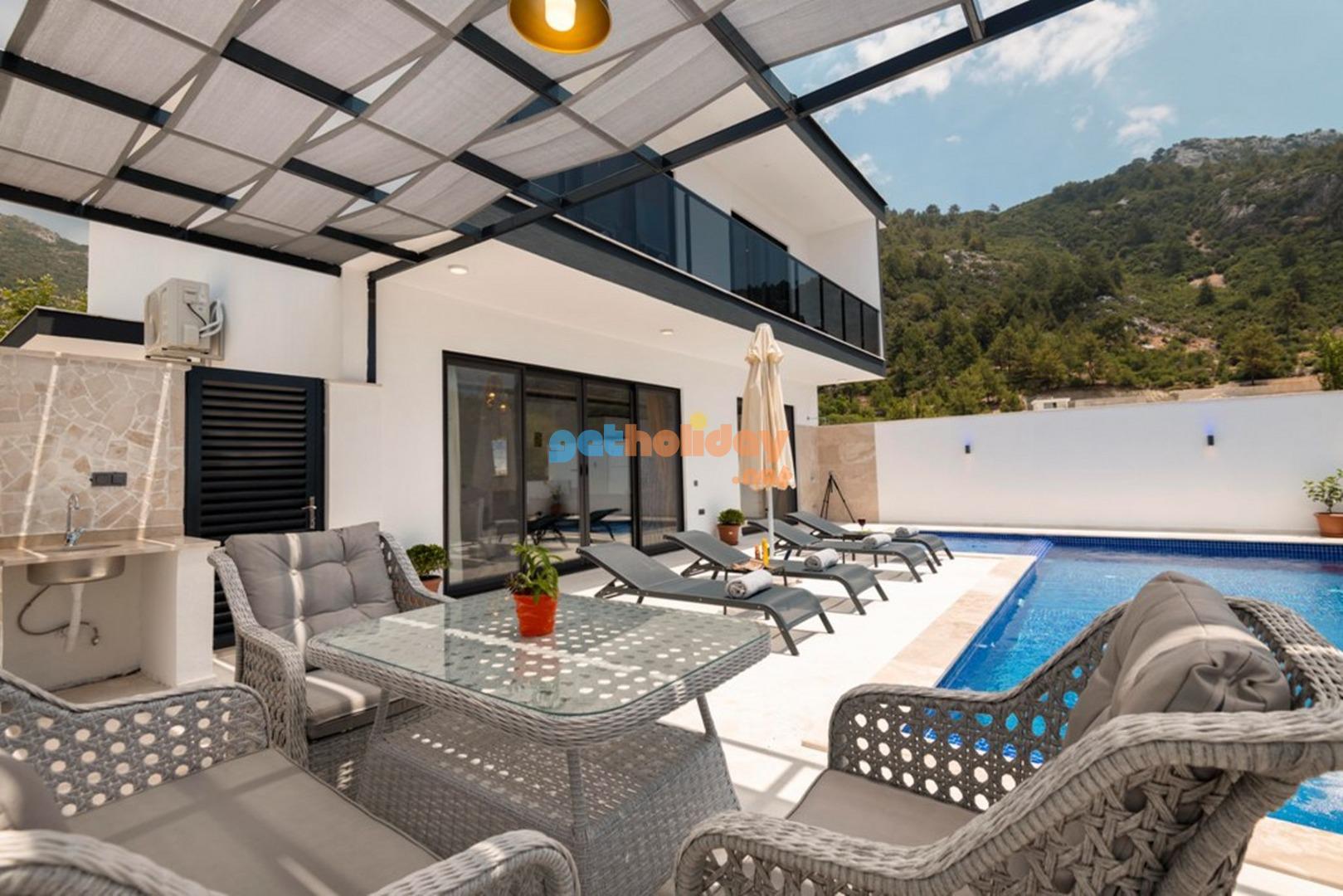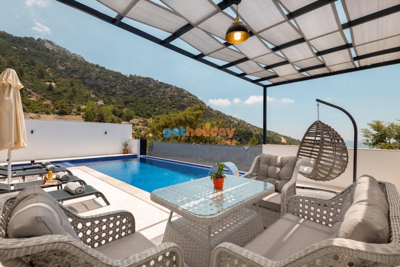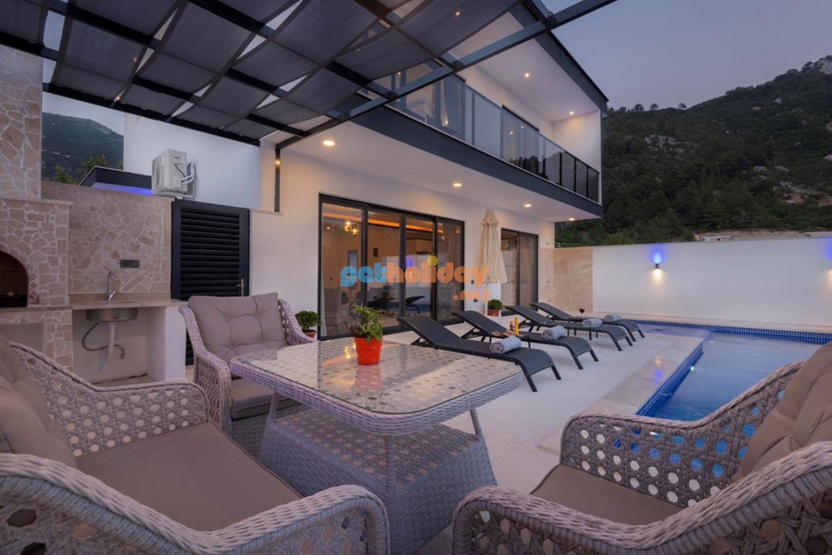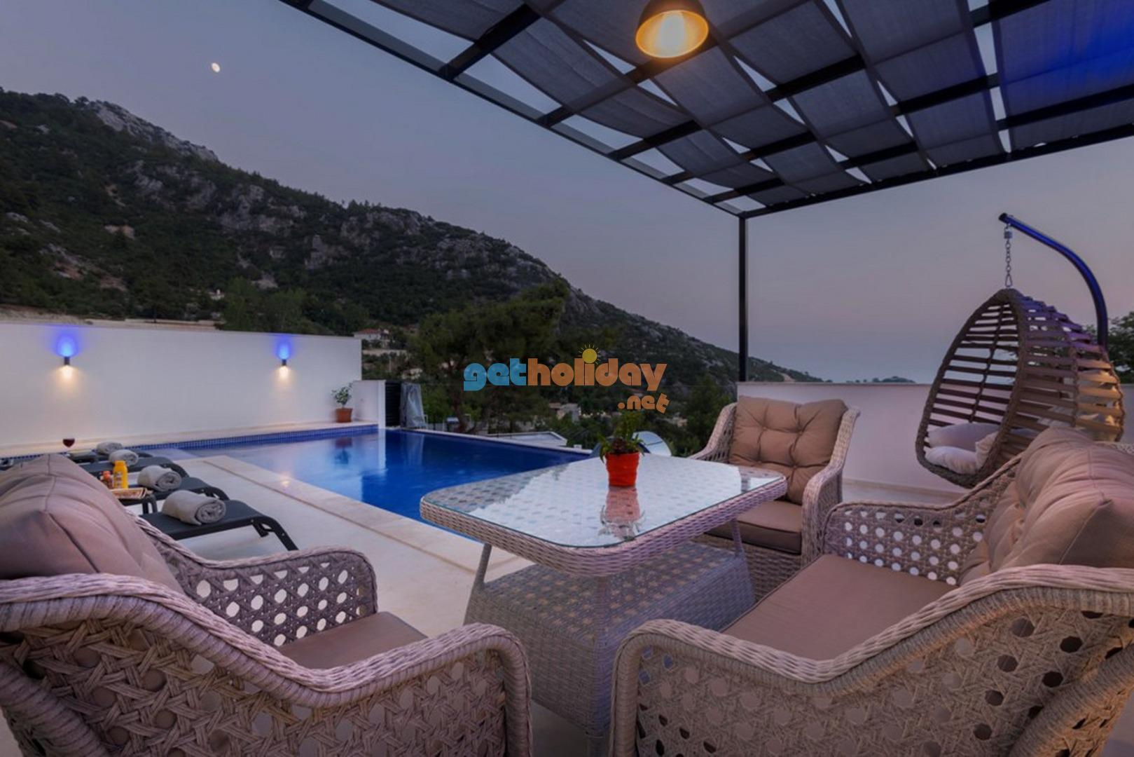 Villa Nur 2 Kalkan eşsiz bir konumda, muhteşem dağ ve deniz manzaralı huzurlu ortama sahiptir. Havuz terasımızda ve bahçemizde şezlong, güneşlenme şemsiyesi, barbekü, pergole, yemek masası ve sandalyeleri, oturma grubu vardır.