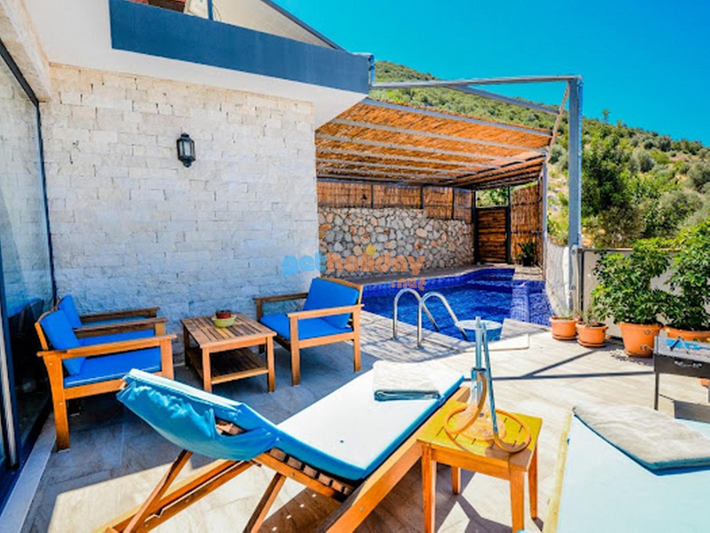 Villa Rock, Kalkan Yesilköy mevkiinde bulunan korunakli, jakuzili, ekonomik, özel havuzlu villadir. Villamiz Balayi çiftlerimize gözlerden uzak tatil imkani sunmaktadir. Villamizi özel havuzu disaridan görünmeyecek sekilde kapatilmis olup sizlere ayricalikli tatil imkani sunmaktadir.