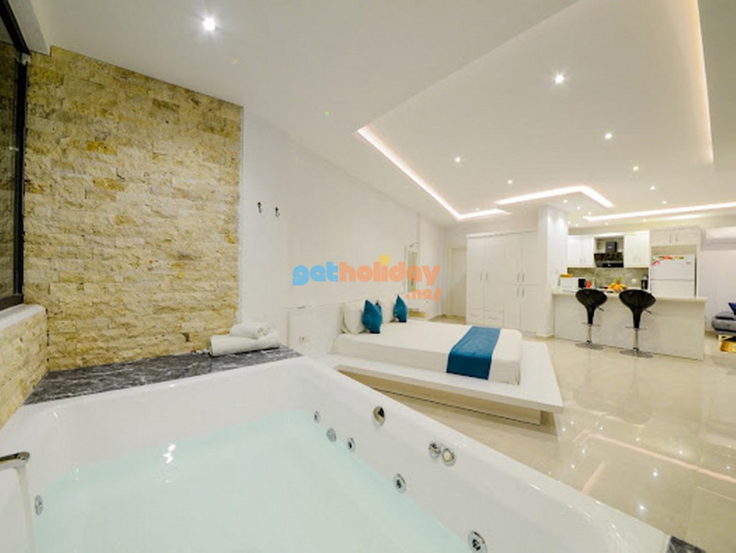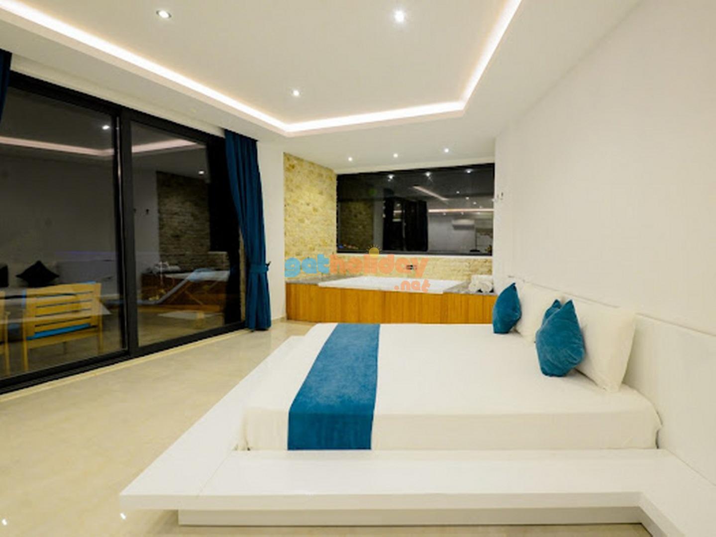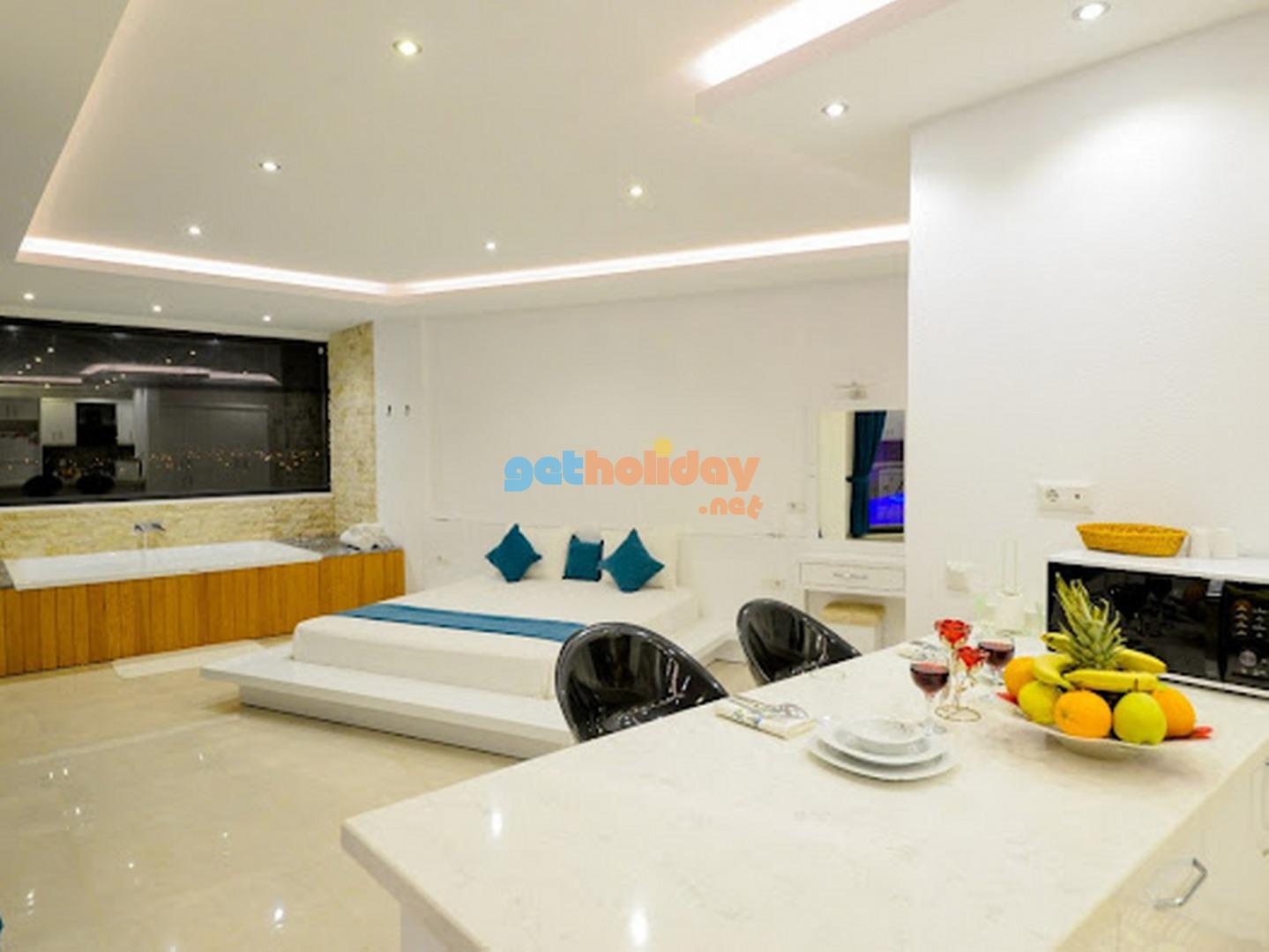 1.Yatak odasi; suit oda, 1 adet çift kisilik yatak, elbise dolabi, makyaj masasi, komodin, klima, jakuzi, banyo, tuvalet, çikis bulunmaktadir.