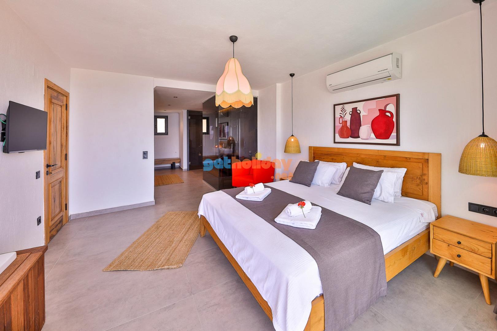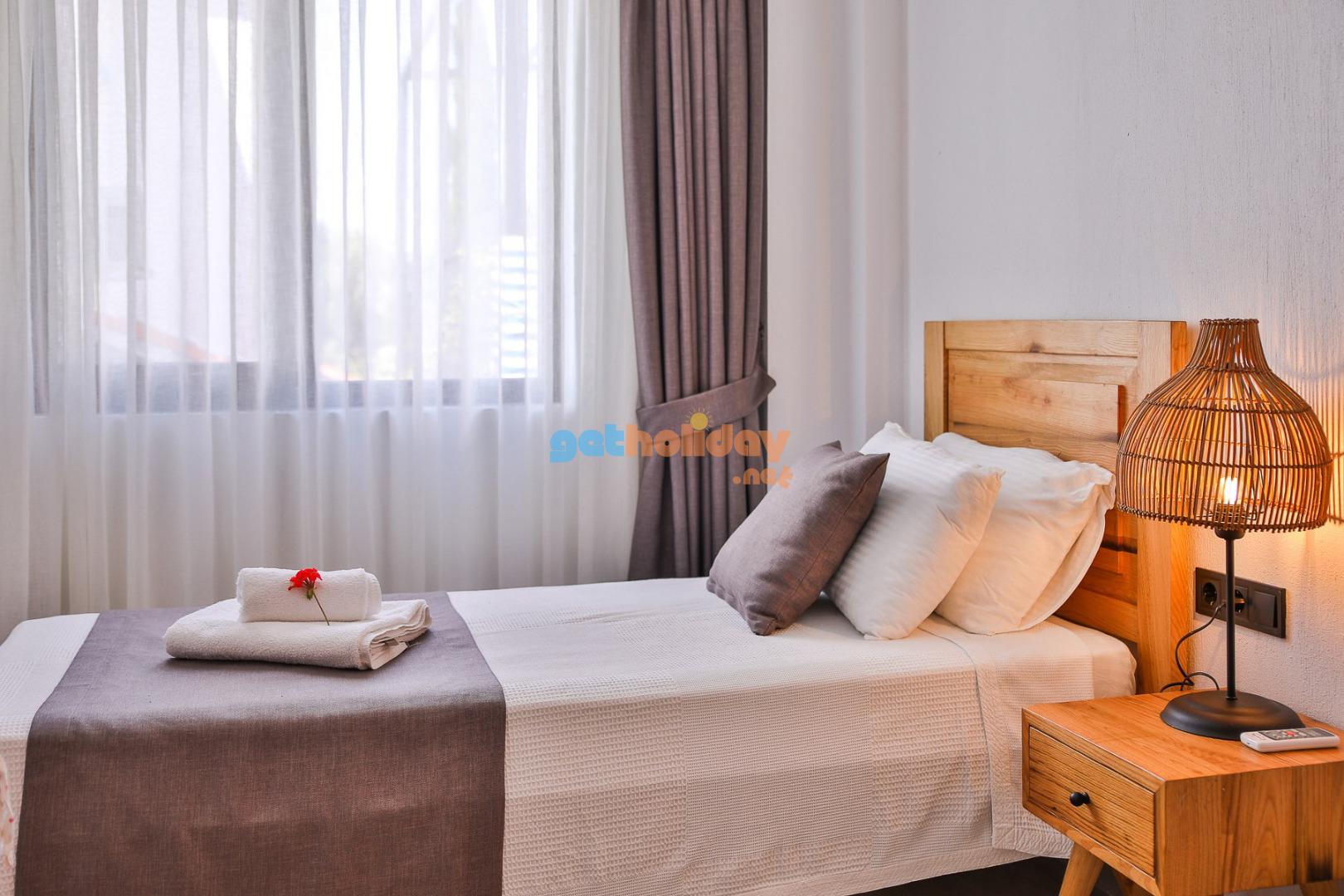 3. Yatak Odası : Bir adet çift kişilik yatak, klima, komodin, televizyon, elbise dolabı, banyo ve tuvalet bulunmaktadır.