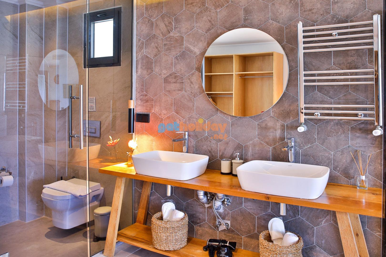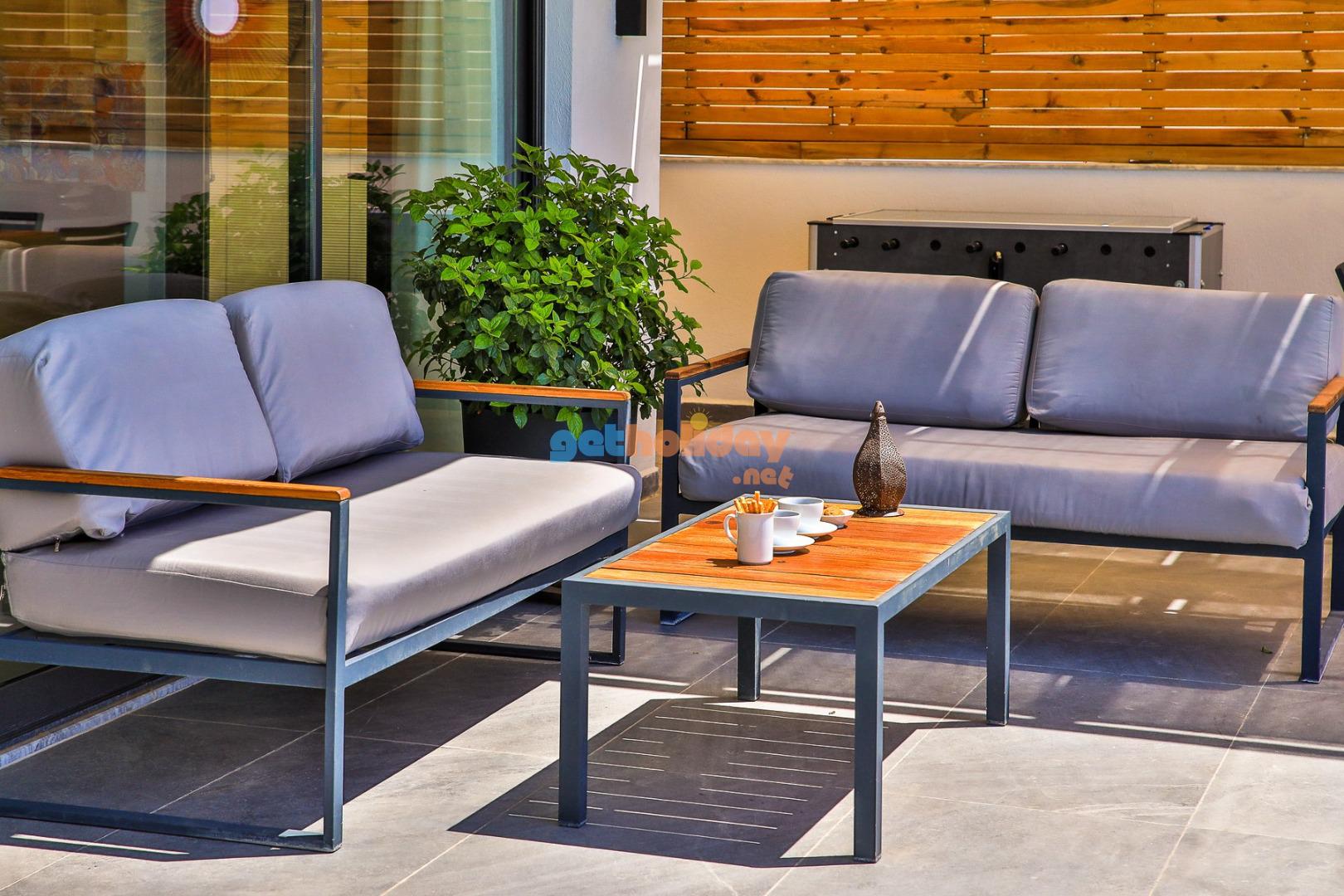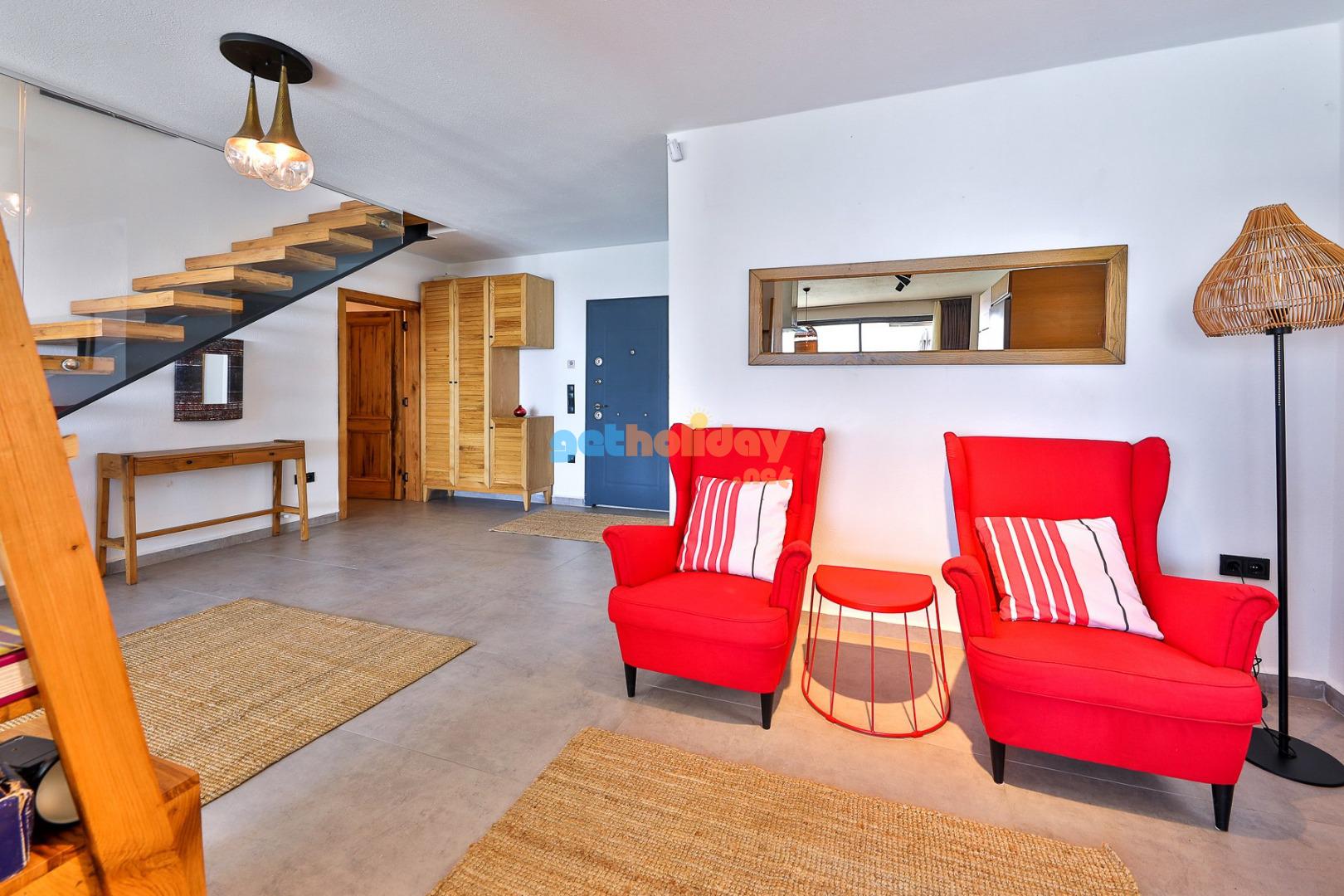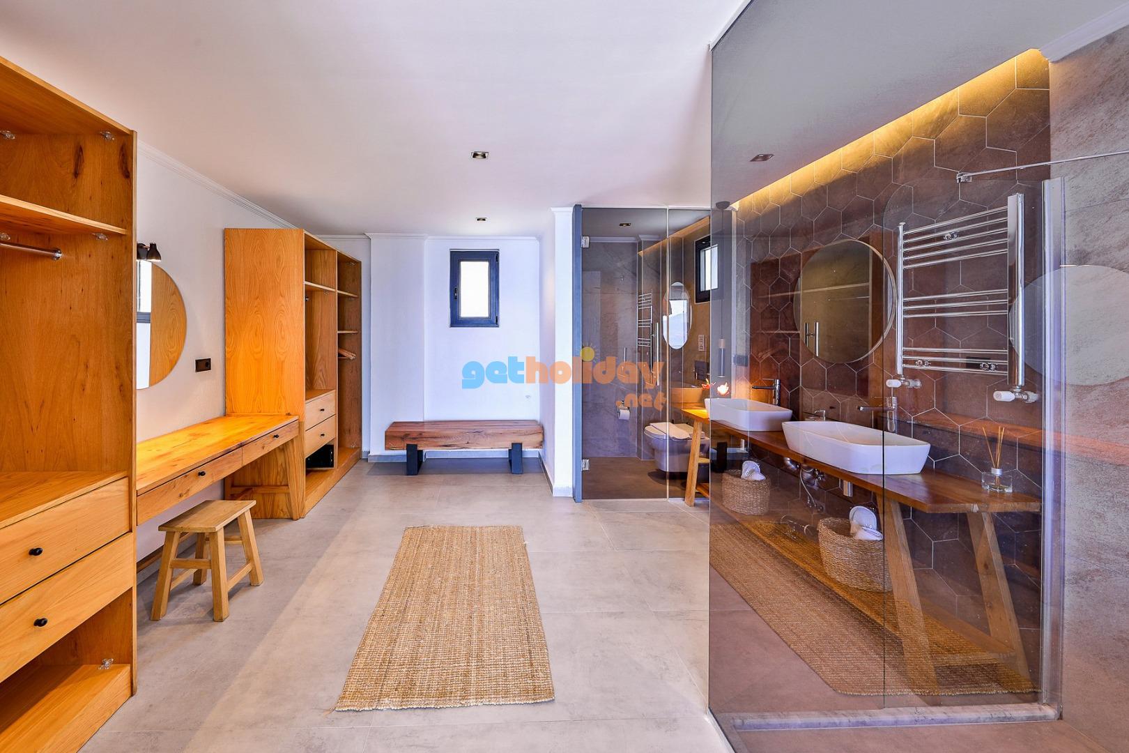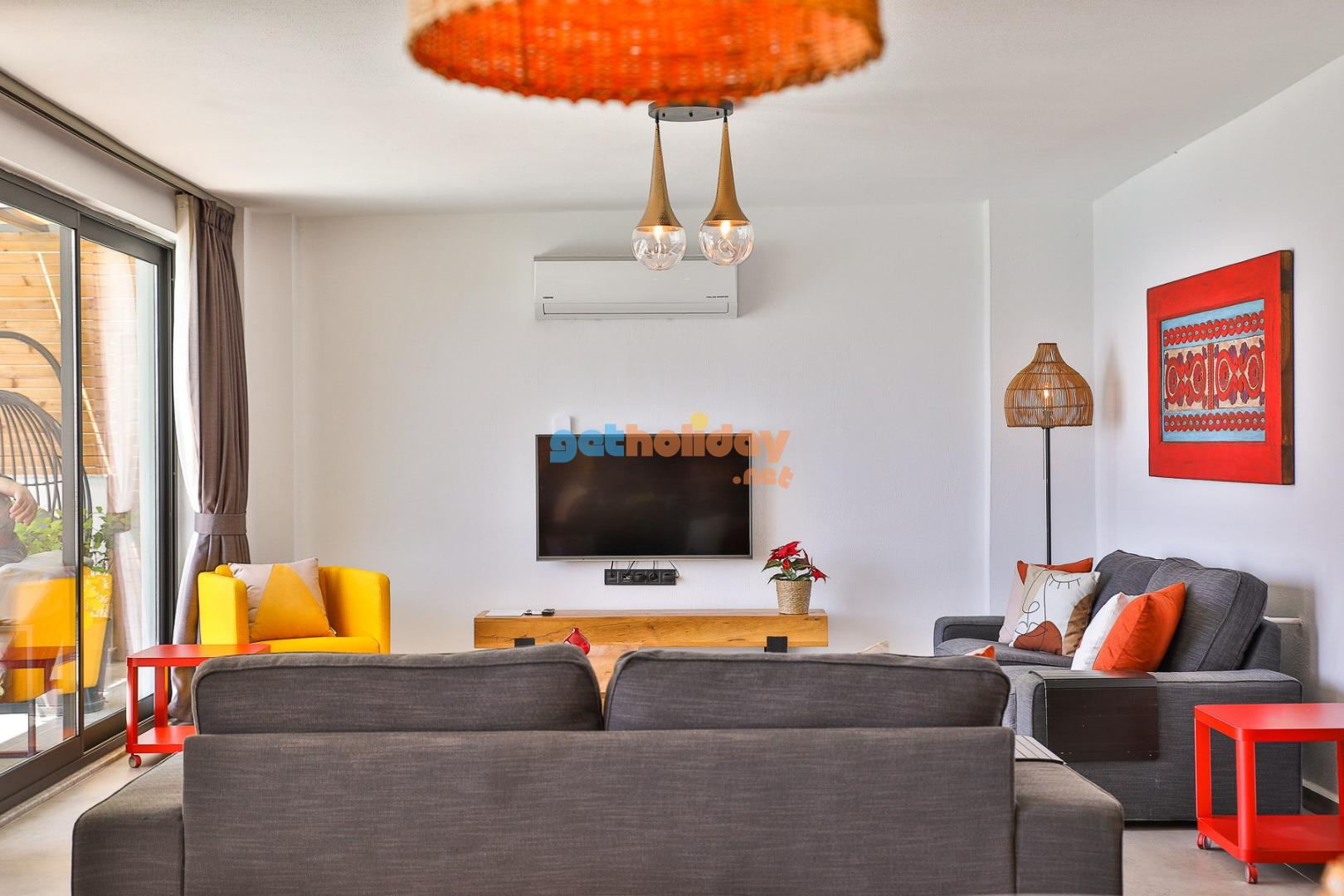 Villa Rosso’nun oldukça konforlu ve lüks bir salonu bulunmaktadır. Bu lüks salonda rahat bir oturma grubu, uydu TV (LCD), klima, yemek masası, lavabo ve tuvalet yer almaktadır. Konuklar, özel anlarını burada paylaşabilir ve keyifli bir tatil geçirebilirler.