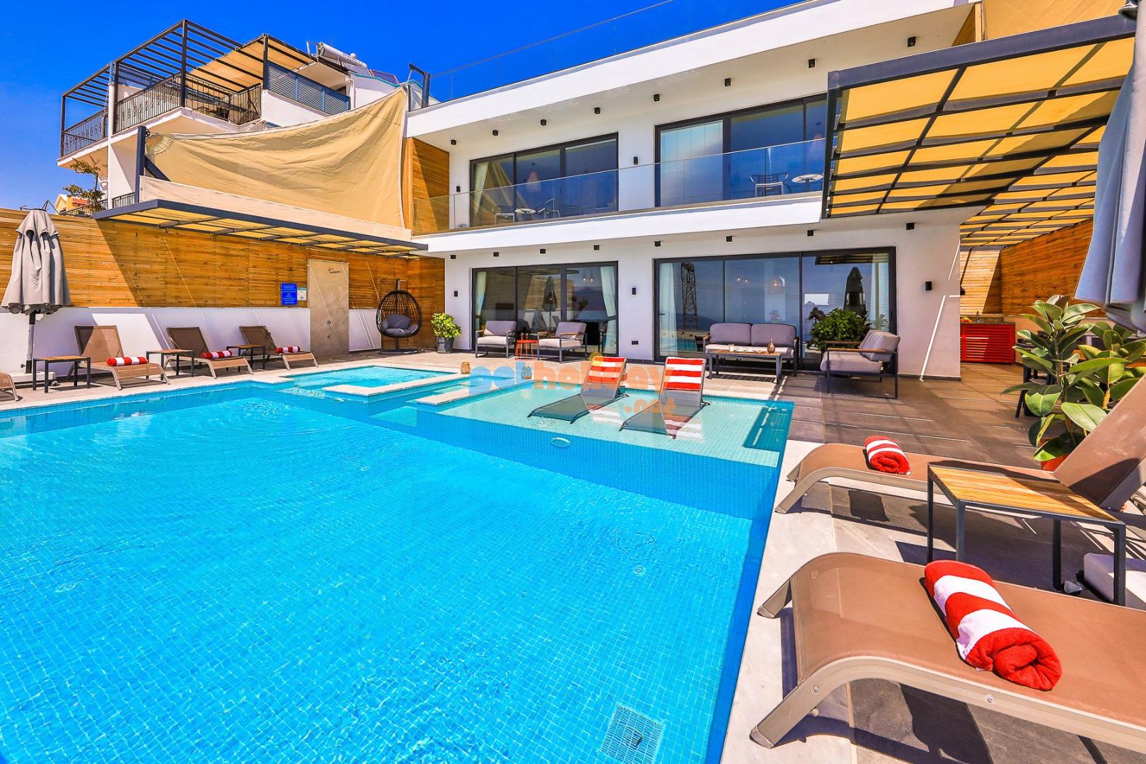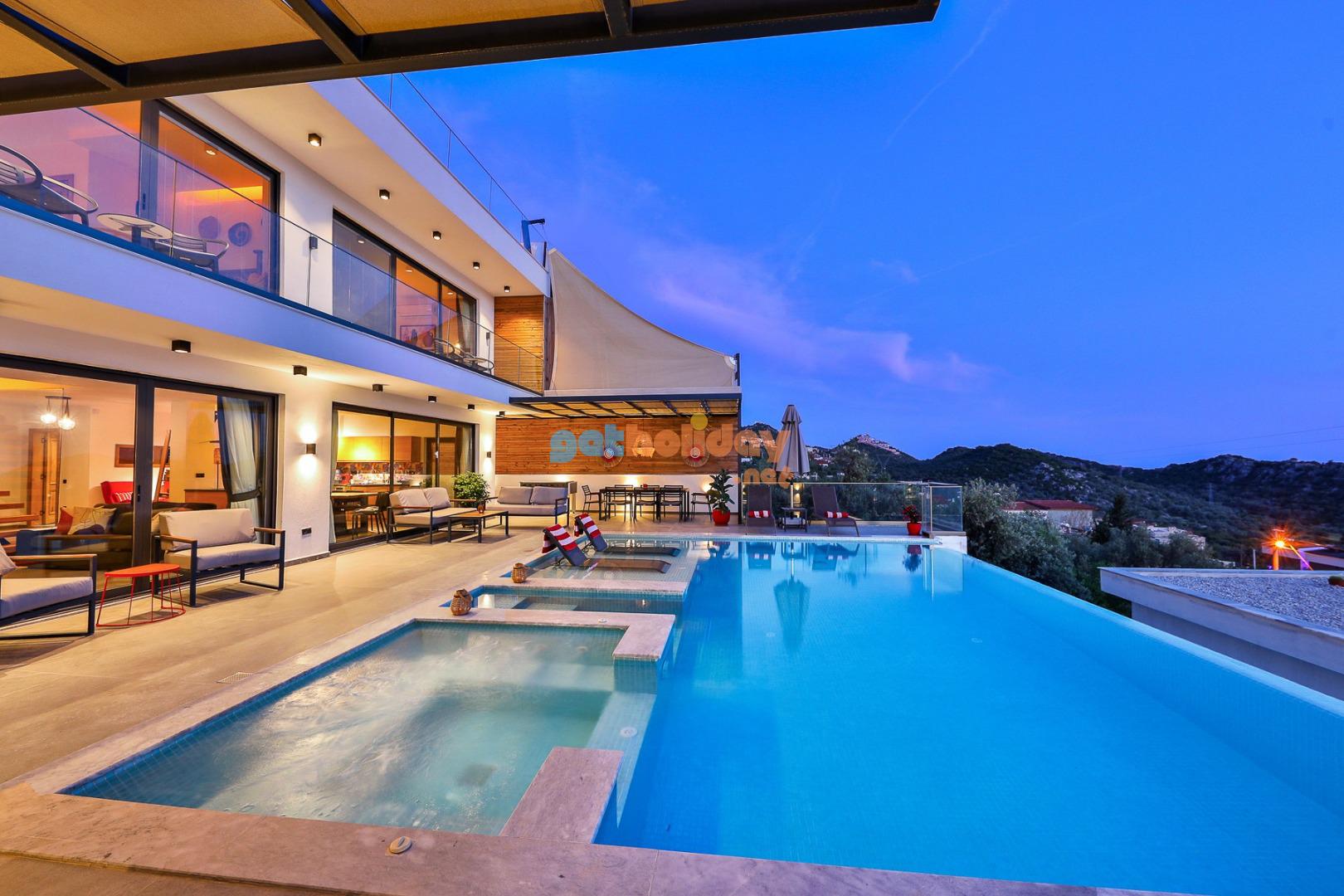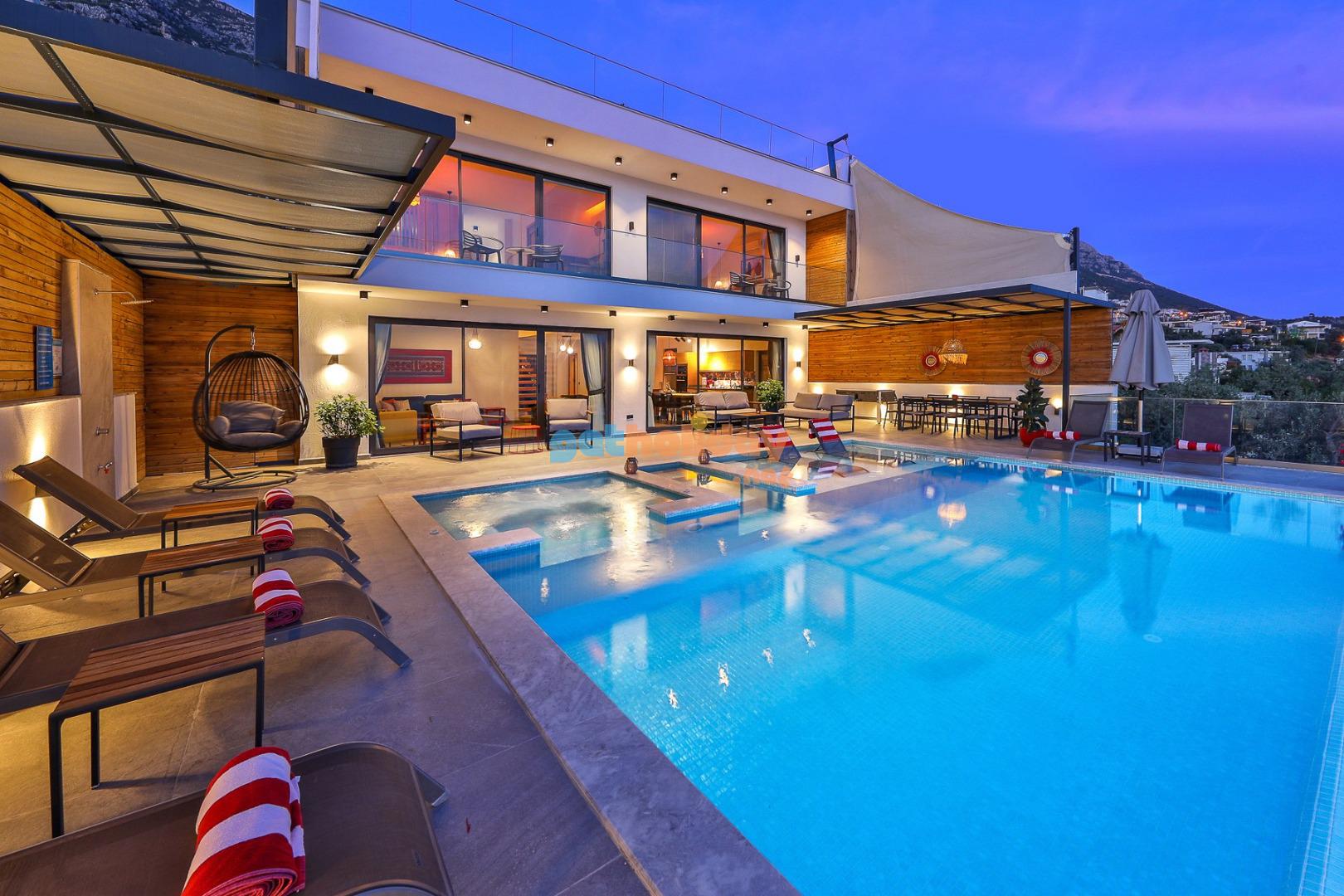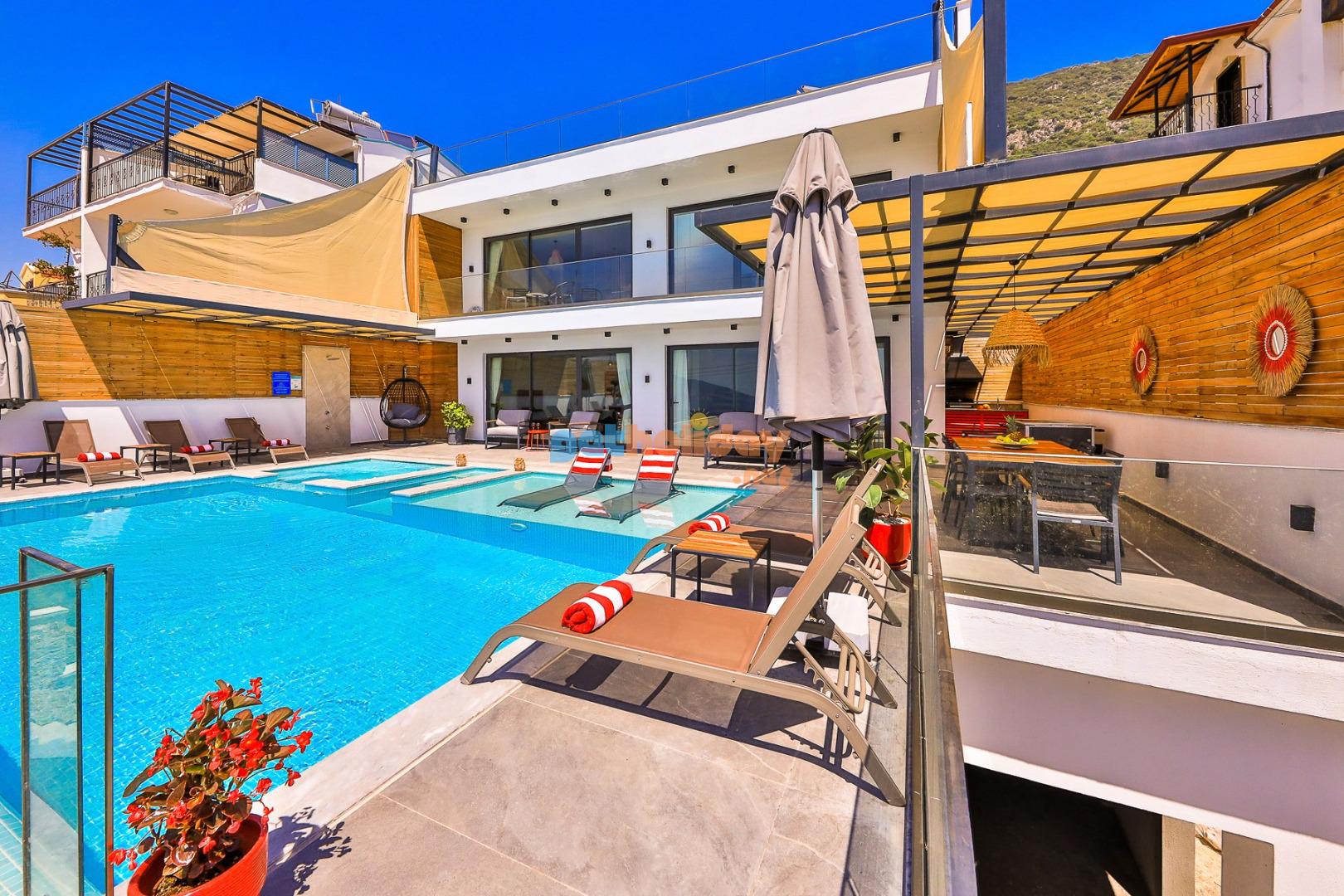 Kalkan’ın Kördere mevkisinde bulunan Villa Rosso, 4 yatak odası ve 8 kişi konaklama kapasitesine sahip deniz ve doğa manzaralı lüks bir kiralık villadır. Havuz terası oldukça geniştir ve kalabalık aile ve arkadaş grupları için ideal bir tatil seçeneği sunmaktadır. Villanın 2 yatak odasında jakuzi bulunmaktadır.