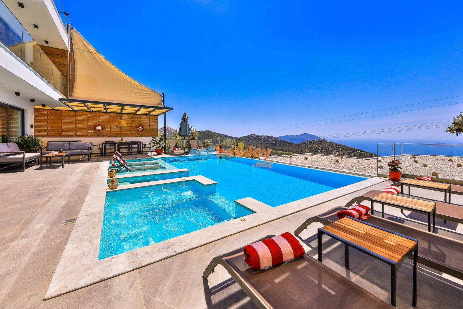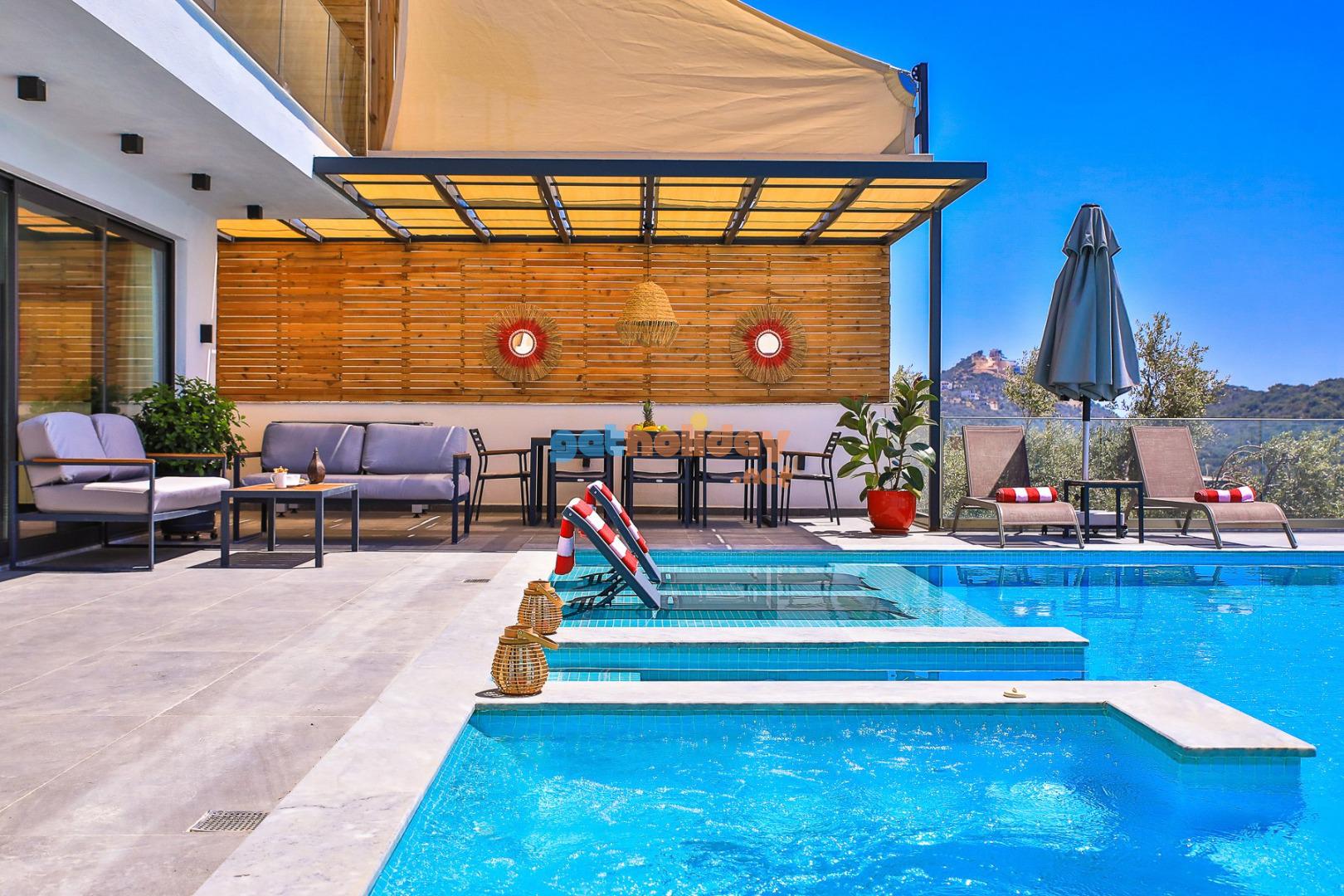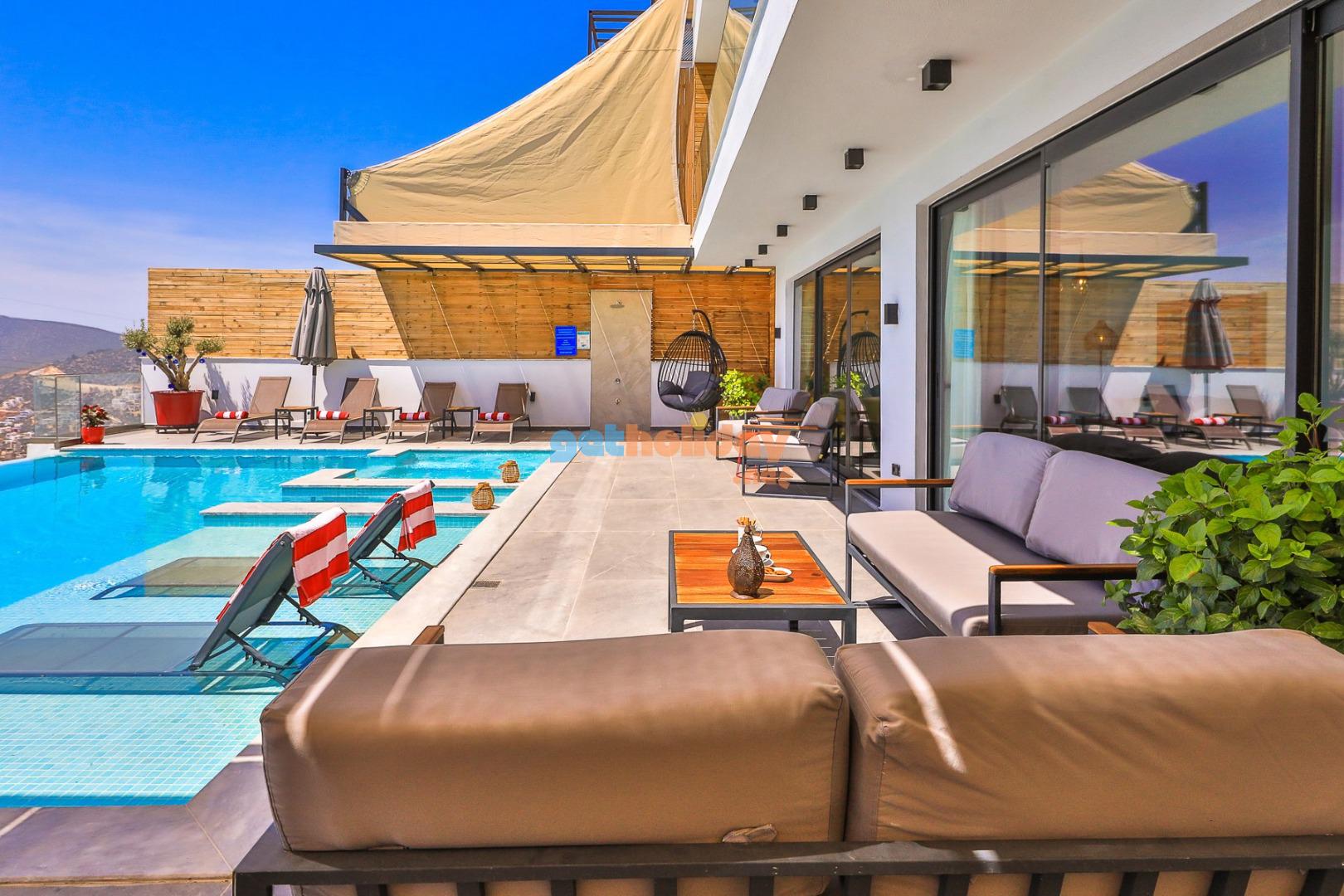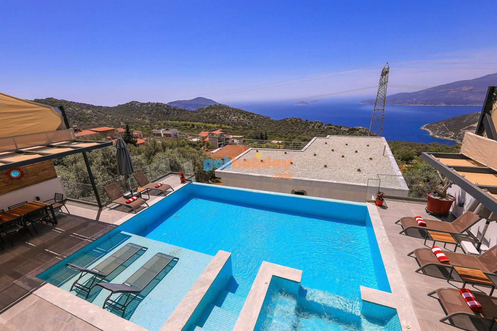 Kalkan’ın Kördere mevkisinde bulunan Villa Rosso, 4 yatak odası ve 8 kişi konaklama kapasitesine sahip deniz ve doğa manzaralı lüks bir kiralık villadır. Havuz terası oldukça geniştir ve kalabalık aile ve arkadaş grupları için ideal bir tatil seçeneği sunmaktadır. Villanın 2 yatak odasında jakuzi bulunmaktadır.