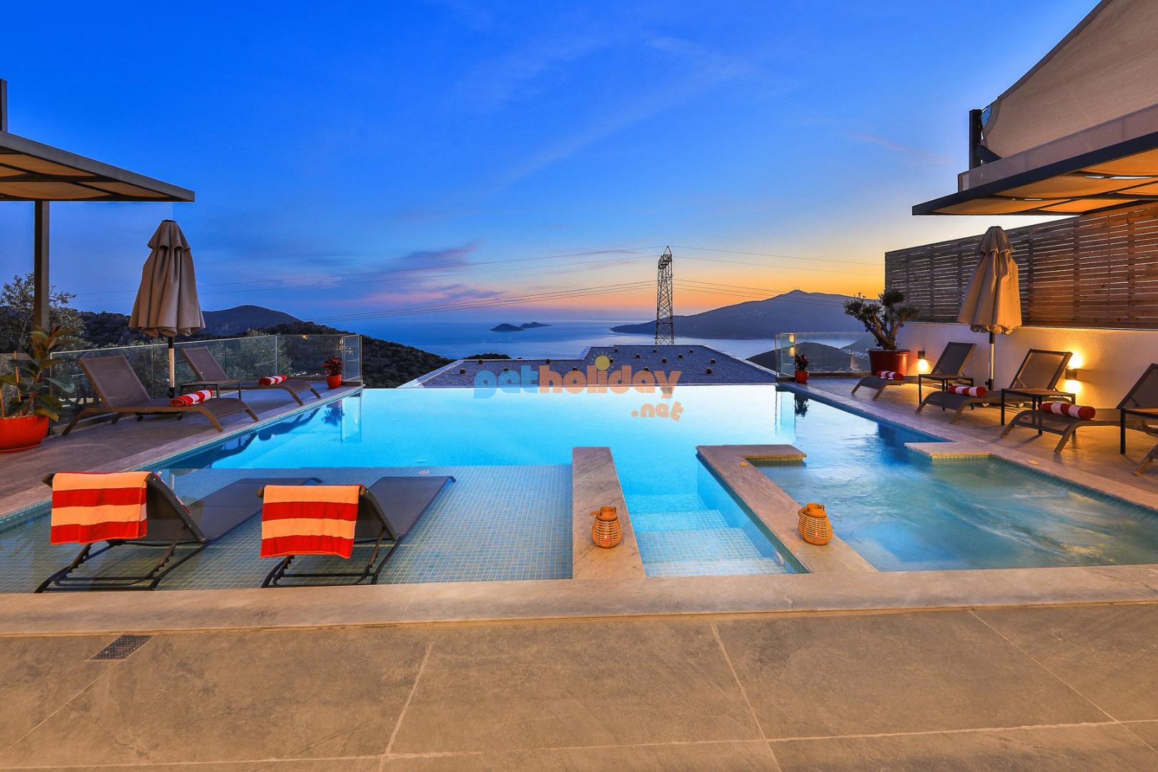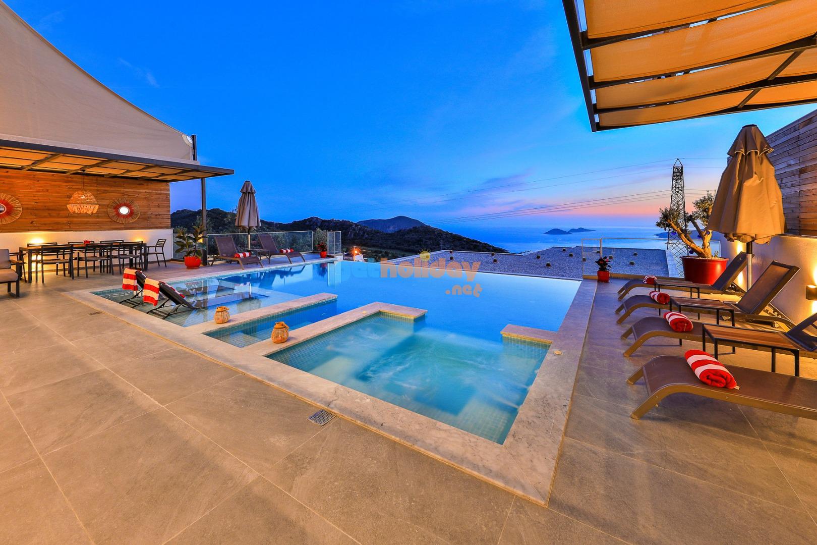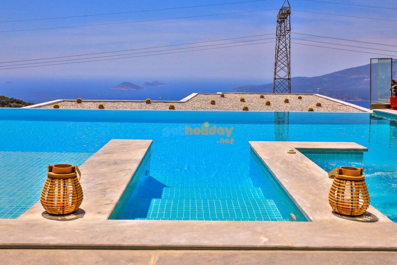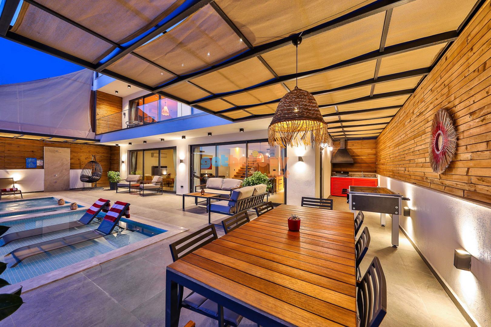Kalkan’ın Kördere mevkisinde bulunan Villa Rosso, 4 yatak odası ve 8 kişi konaklama kapasitesine sahip deniz ve doğa manzaralı lüks bir kiralık villadır. Havuz terası oldukça geniştir ve kalabalık aile ve arkadaş grupları için ideal bir tatil seçeneği sunmaktadır. Villanın 2 yatak odasında jakuzi bulunmaktadır.