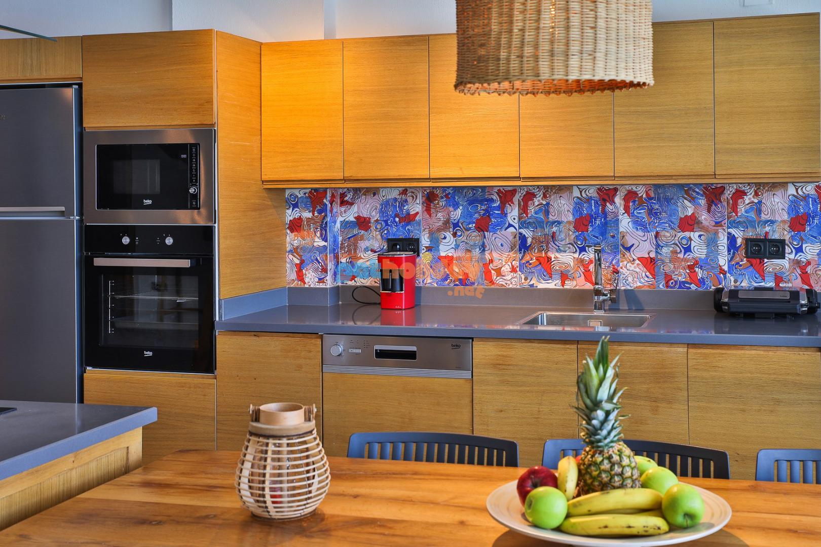 Modern bir Amerikan mutfak ile donatılmış olan Villa Rosso, ihtiyacınız olan tüm araç gereçleri içerisinde barındırmaktadır. Buzdolabı, bulaşık makinesi, çamaşır makinesi, fırın, elektrikli su ısıtıcısı, 4’lü ocak, yemek takımı, tava, tencereler, çatal ve bıçak takımları mutfağın içerisinde mevcuttur. Konuklar istedikleri yemeği kolayca hazırlayabilirler.