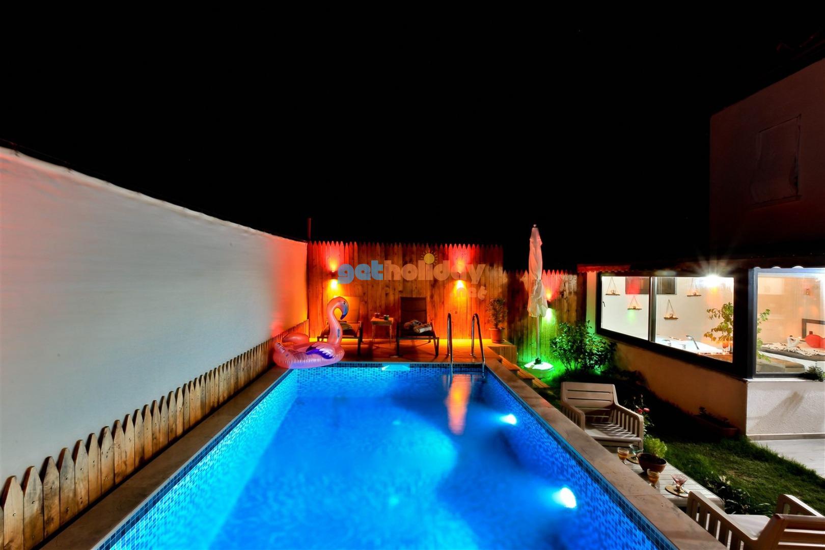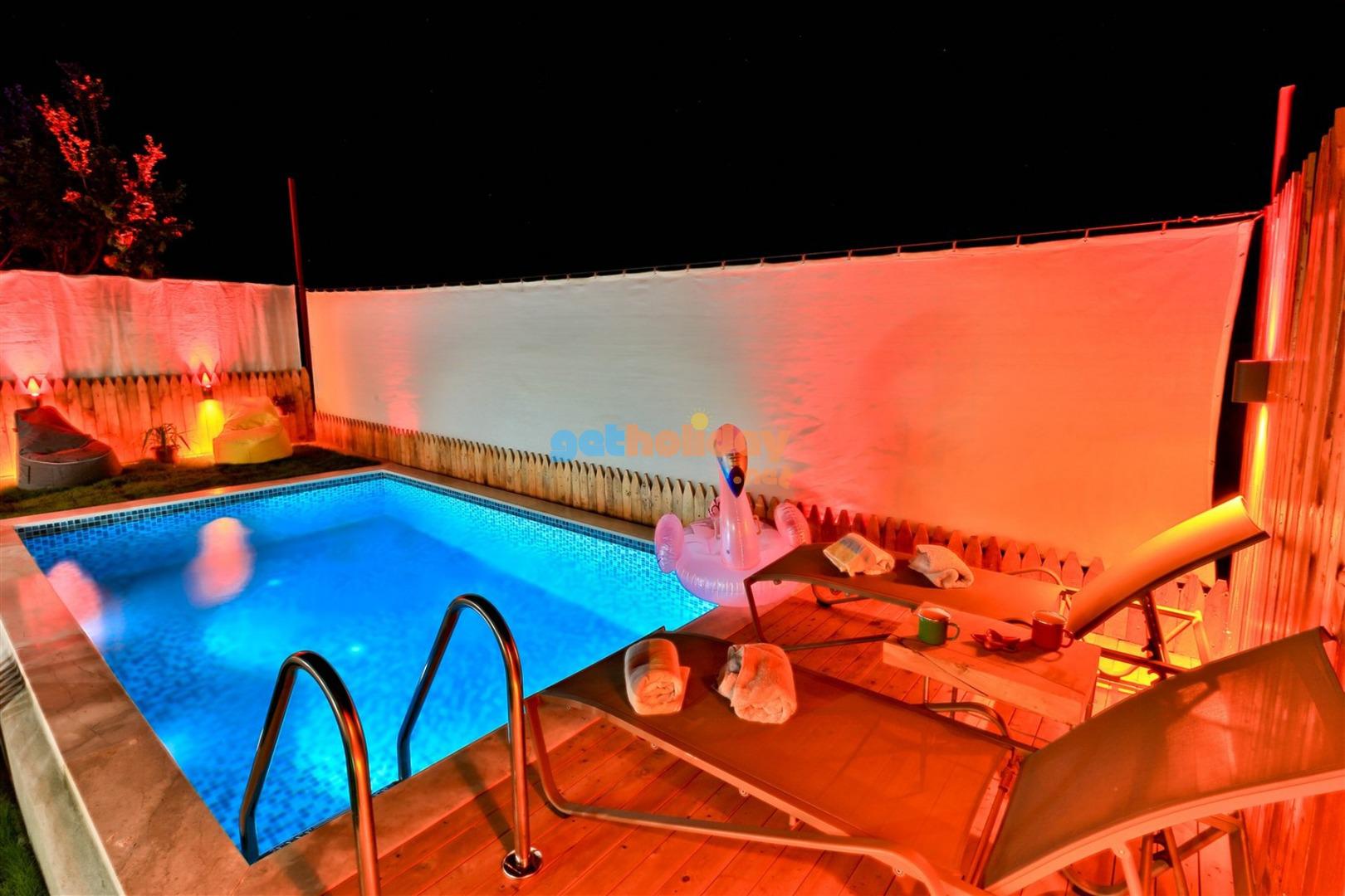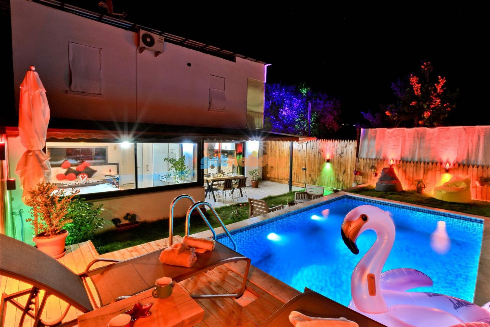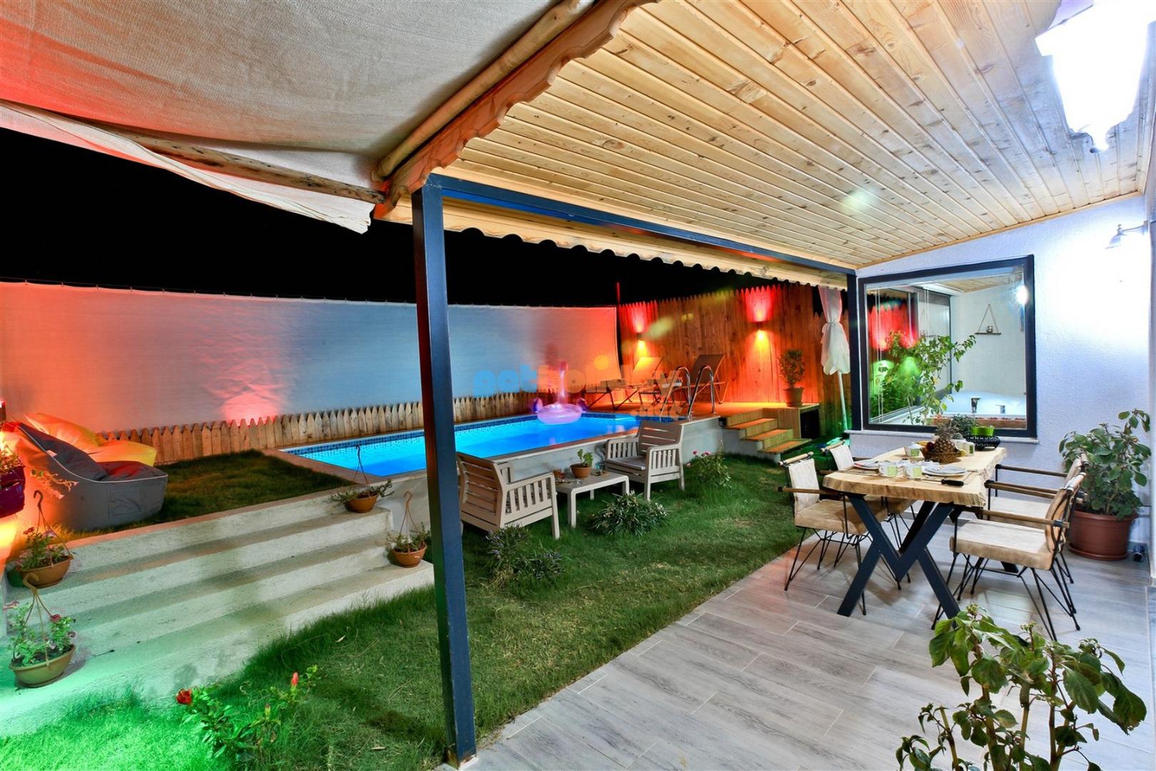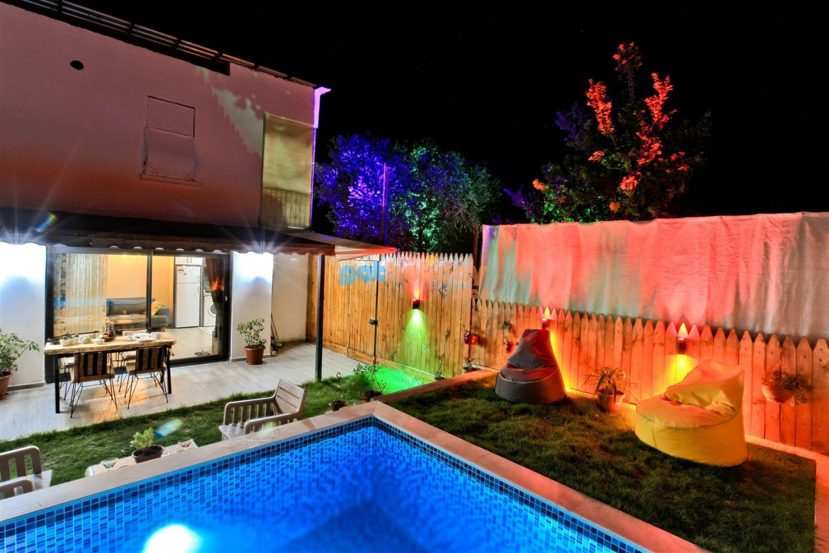 Not: Villamızın havuzu önüne çekilen perde ile villamız tamamen izole ve korunaklı hale gelmektedir.