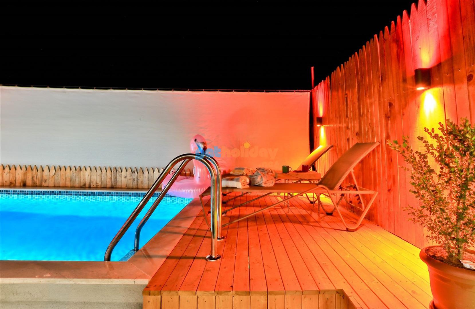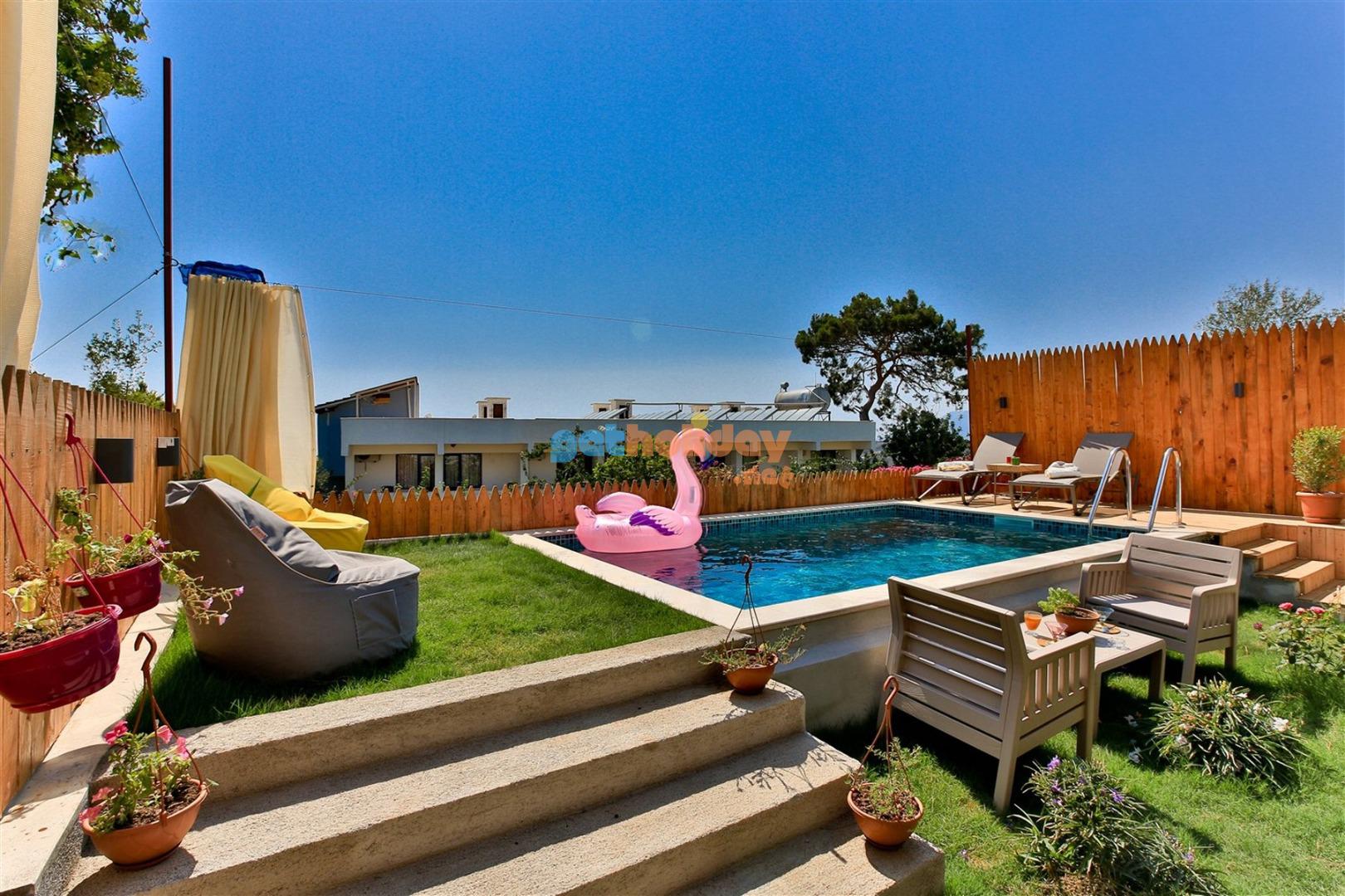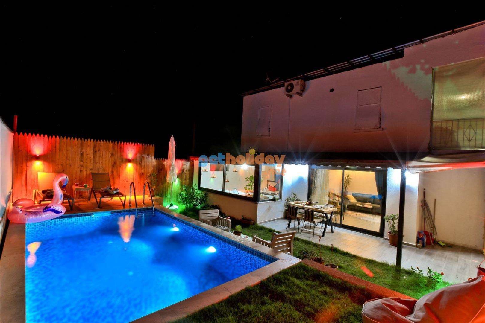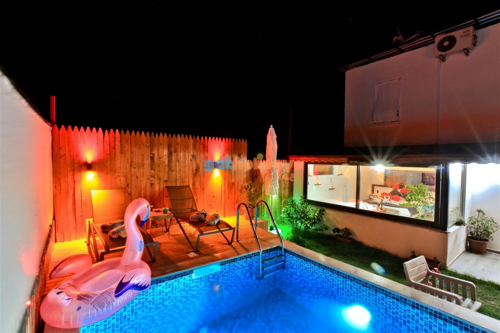 Not: Villamızın havuzu önüne çekilen perde ile villamız tamamen izole ve korunaklı hale gelmektedir.