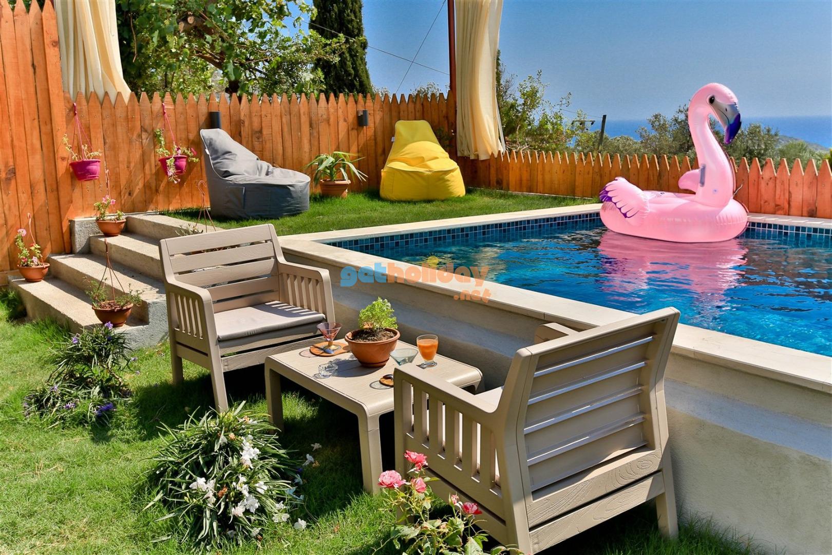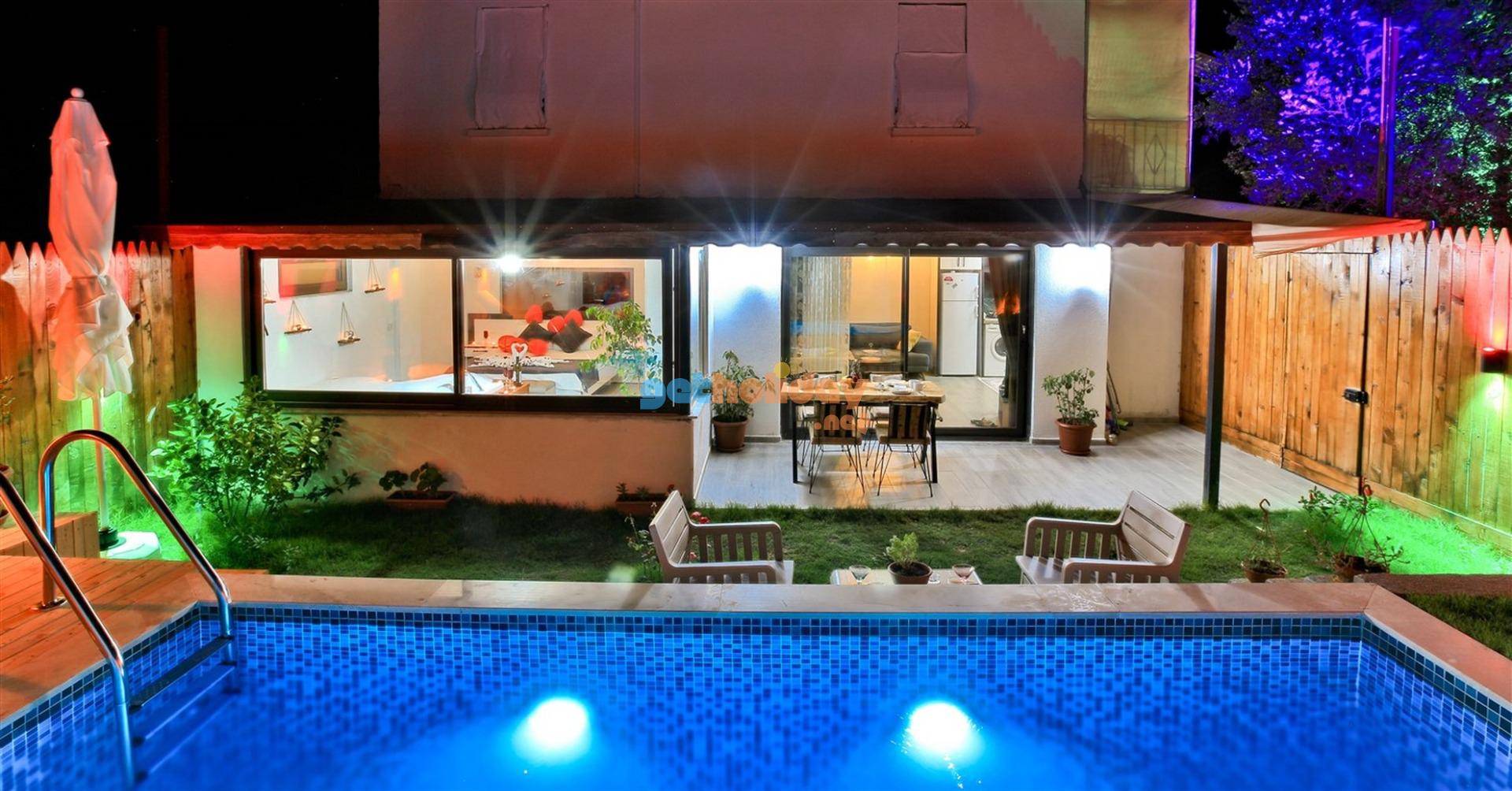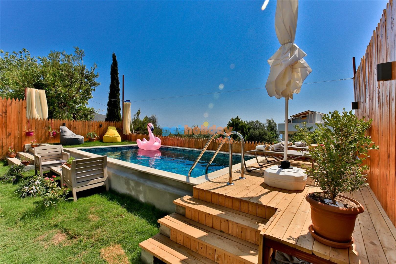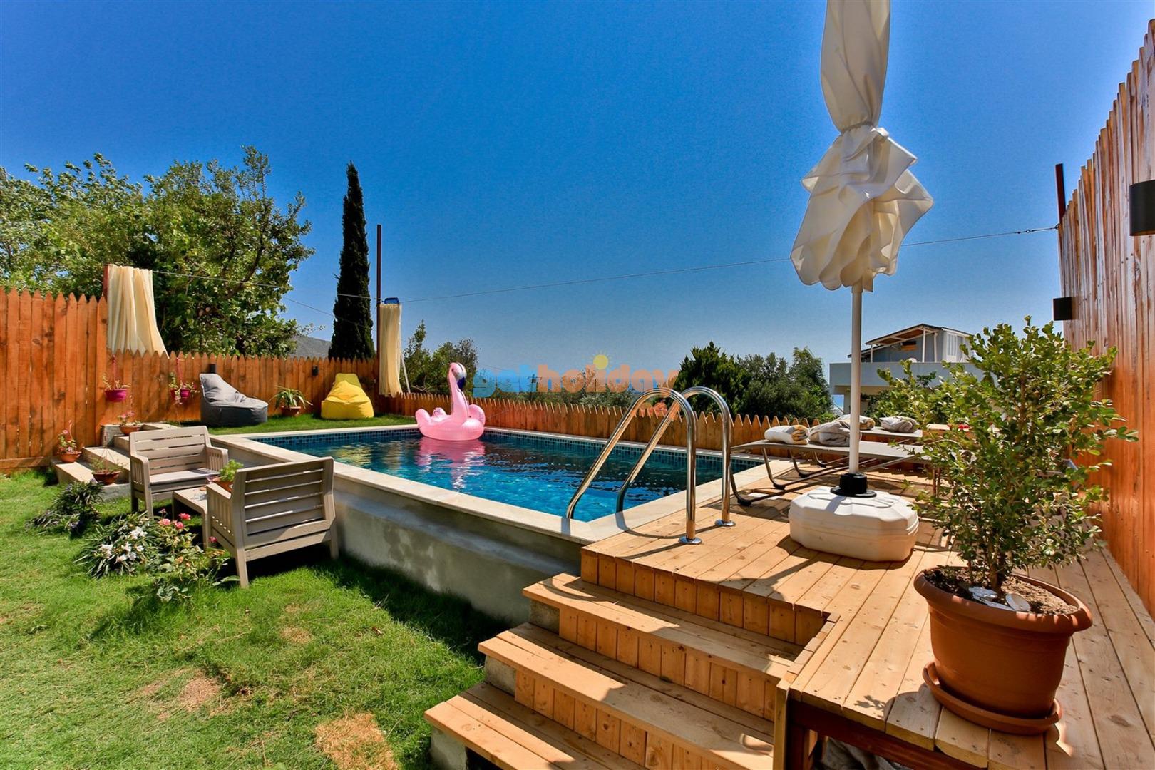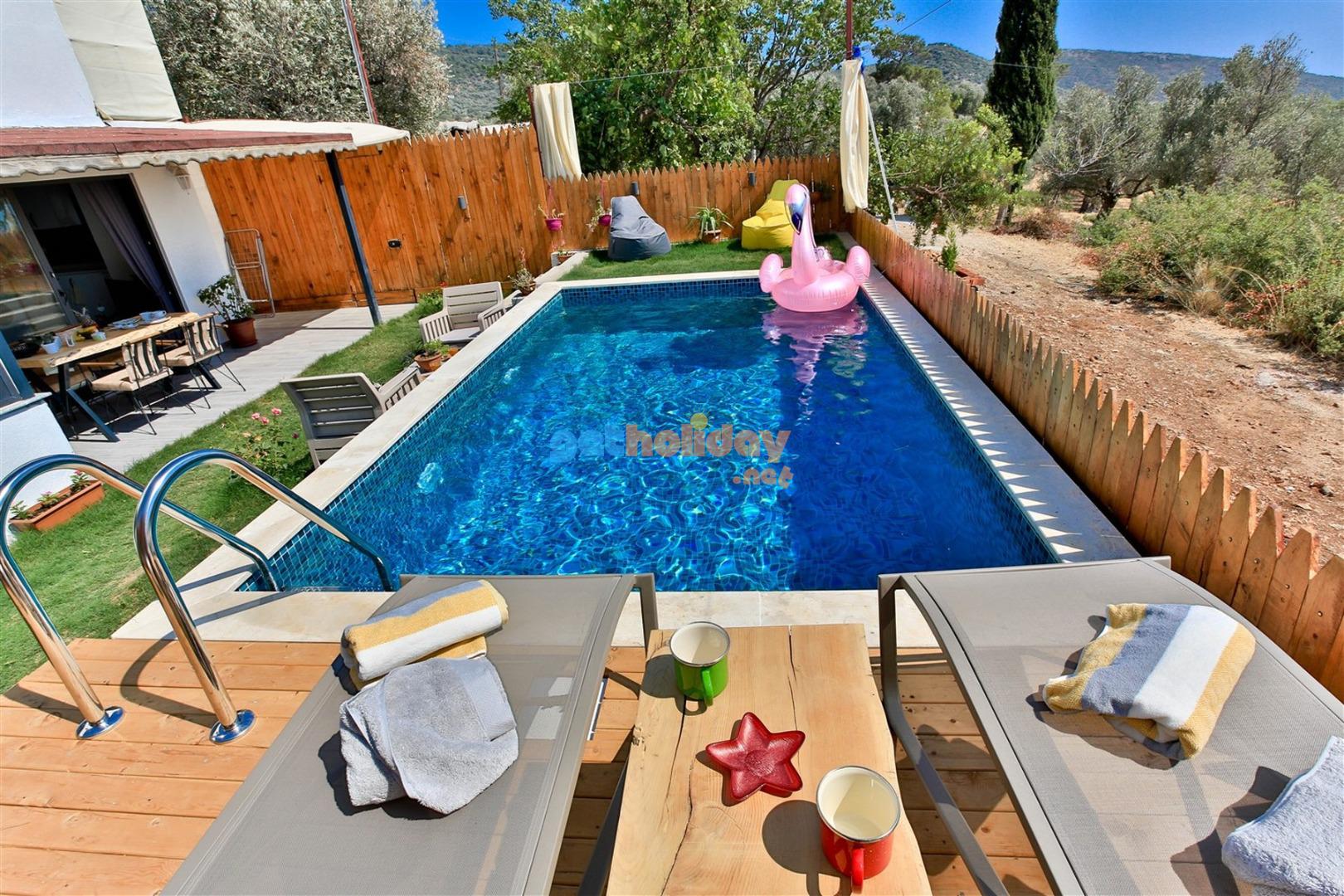 Not: Villamızın havuzu önüne çekilen perde ile villamız tamamen izole ve korunaklı hale gelmektedir.