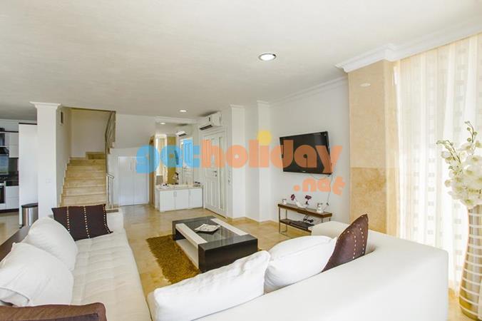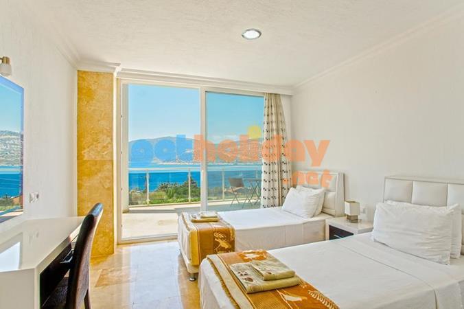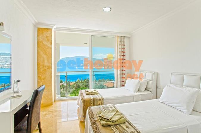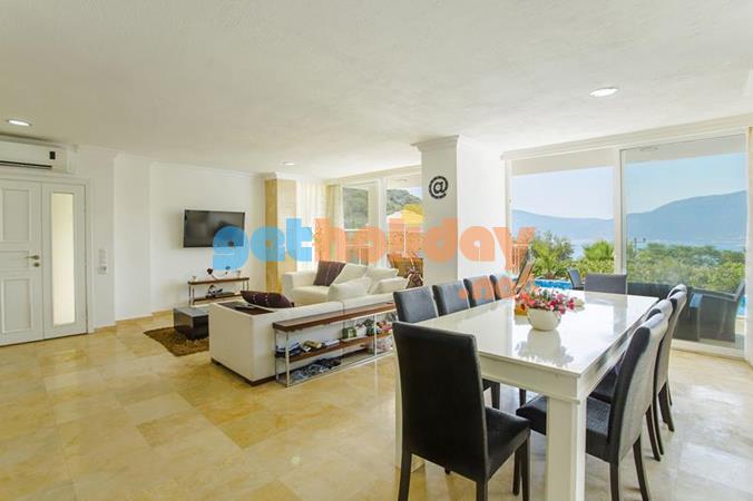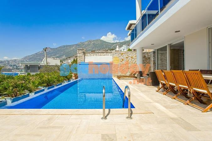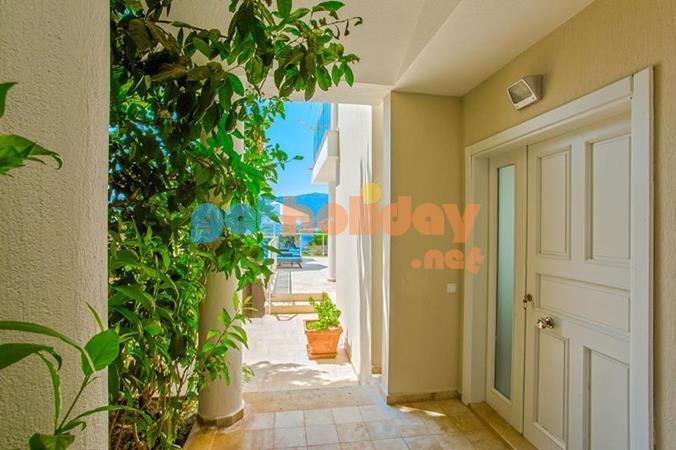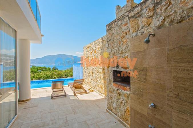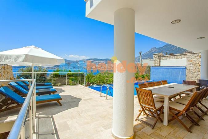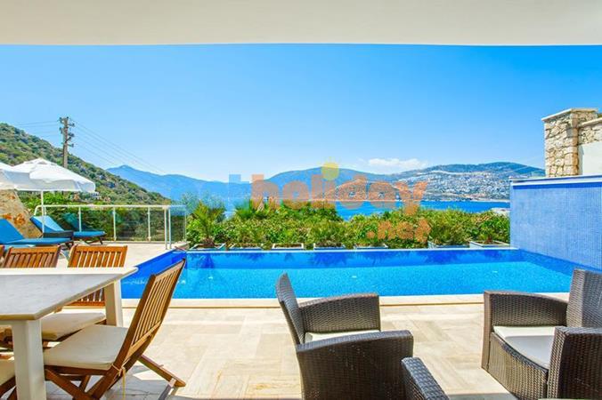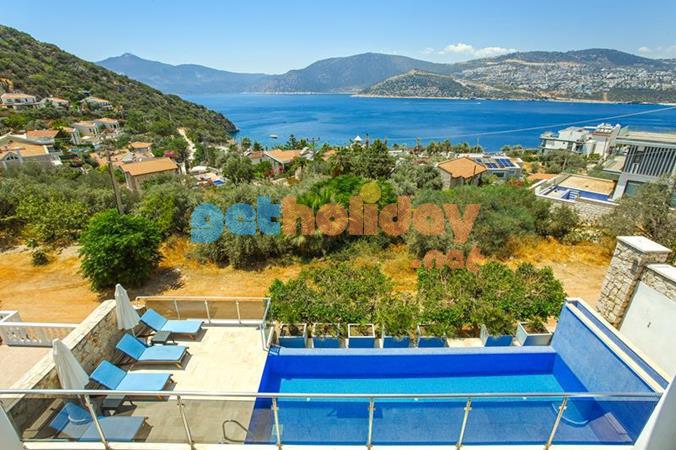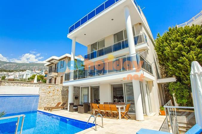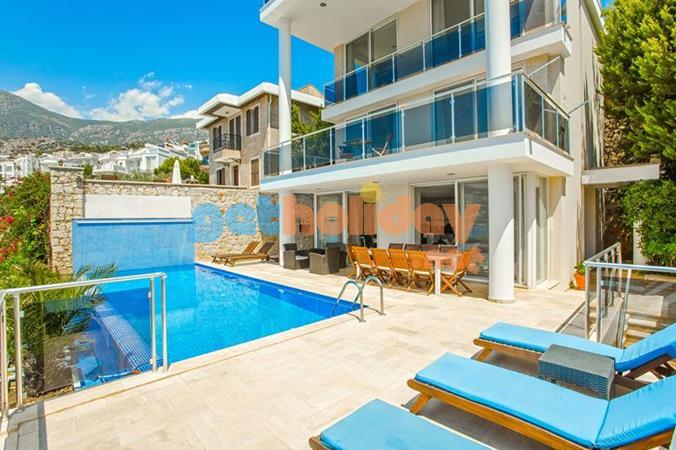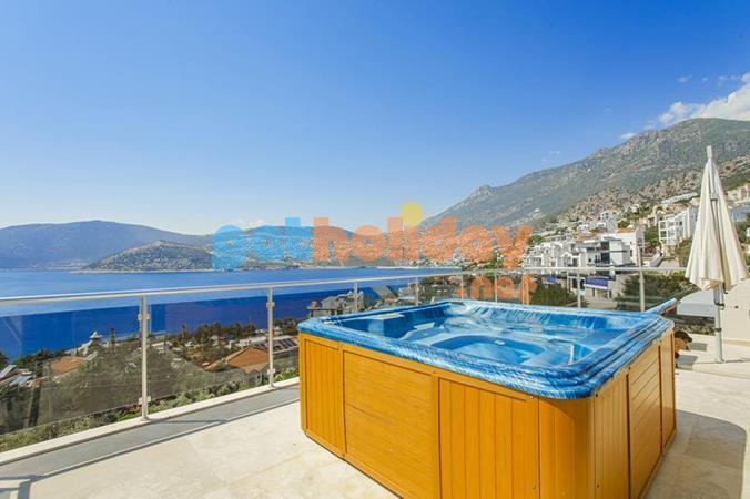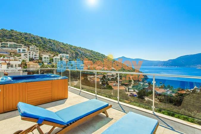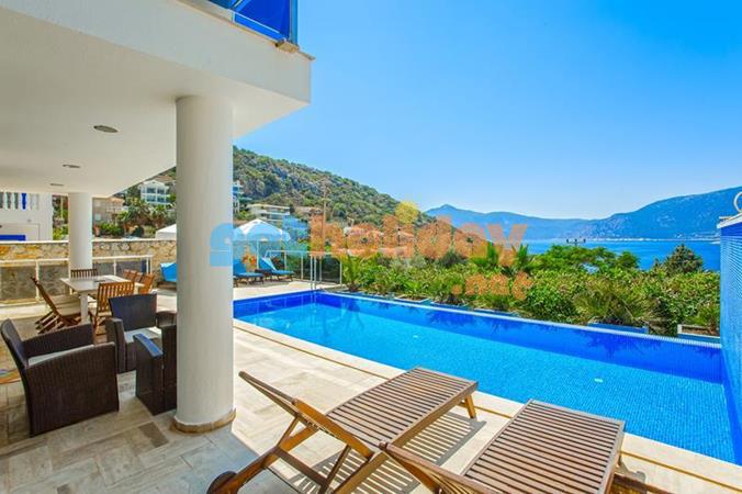 Kalabalık Aile Villalarından Villa Seascape, denize sadece 200 metre mesafede bulunmaktadır. Güzel ve sakin bir konuma sahip bu lüks villayı sunmaktan mutluluk duyuyoruz. Villa, yüzme ve güneşlenme platformları ile Beach Parklara ve Kalkan limanına giden su taksisi hizmetine çok yakındır. Sonsuzluk havuzlu 5 yatak odalı villamız 10 kişi kapasiteli olup her odada özel banyo bulunur. Villamız yoldan güvenli bir girişe ve garaj otoparkına sahiptir. Güneşlenme ve yemek alanları bulunan havuz teras alanına merdivenler çıkılır. Çatı katında çarpıcı çatı terasına açılan büyük ebeveyn yatak odası süiti bulunmaktadır ve çatı terasında büyük bir hidromasajlı küvet vardır.