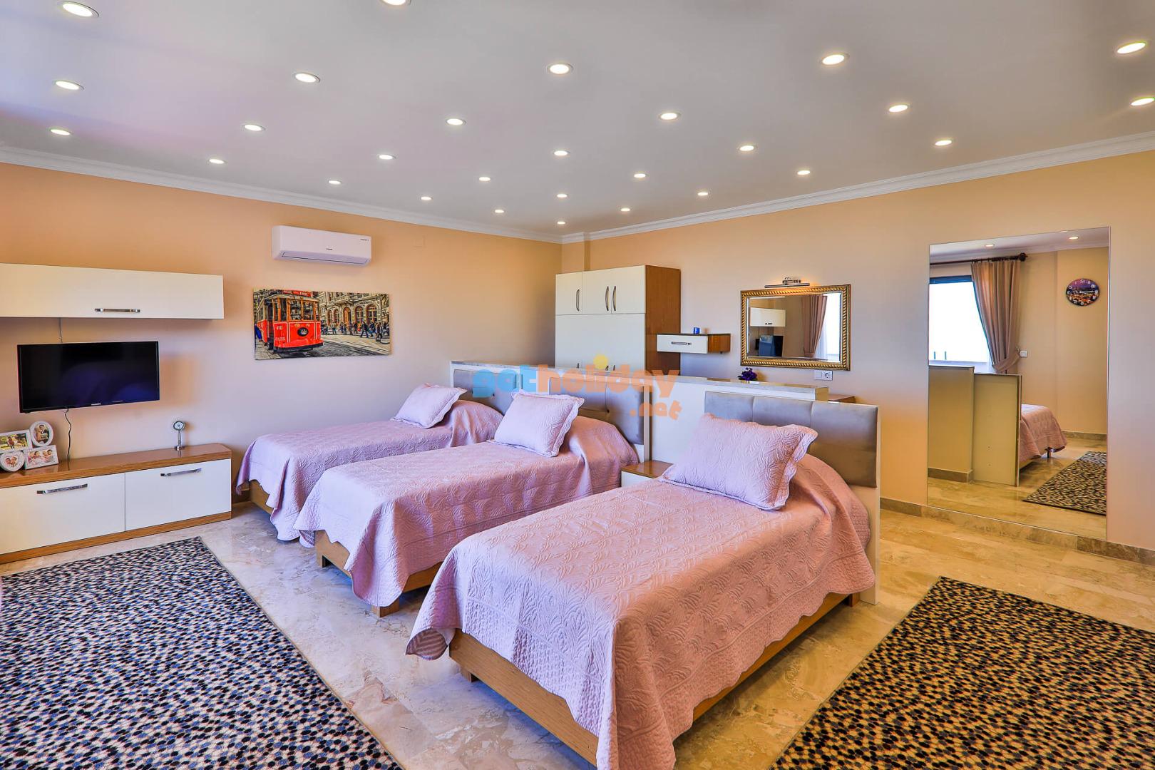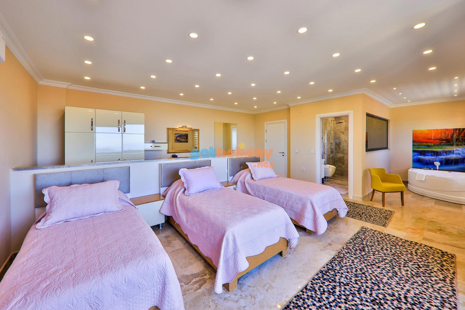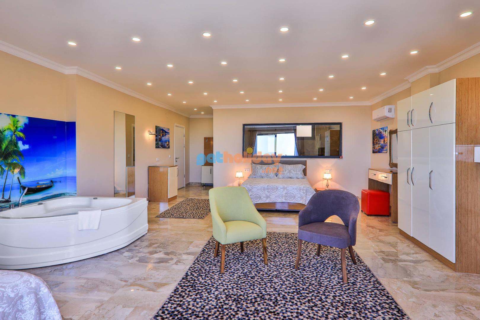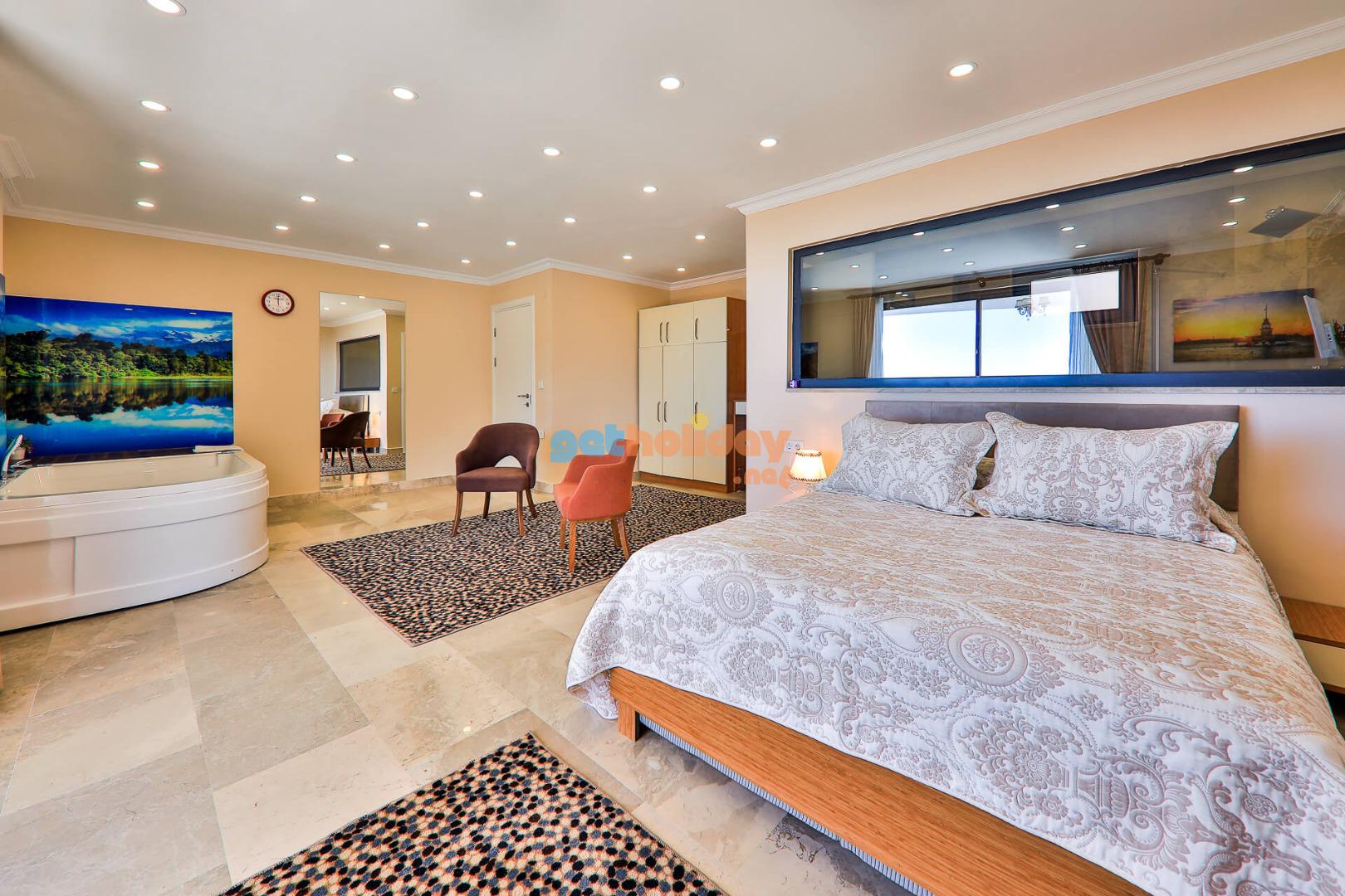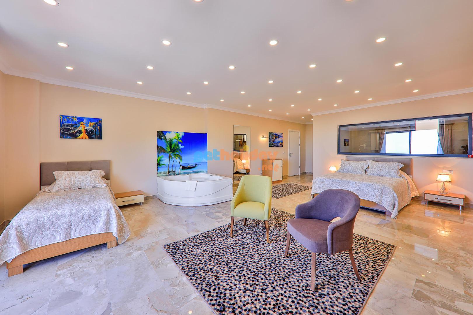 Birinci yatak odasında bir adet çift kişilik yatak, bir adet tek kişilik yatak, jakuzi ve banyo bulunmaktadır.