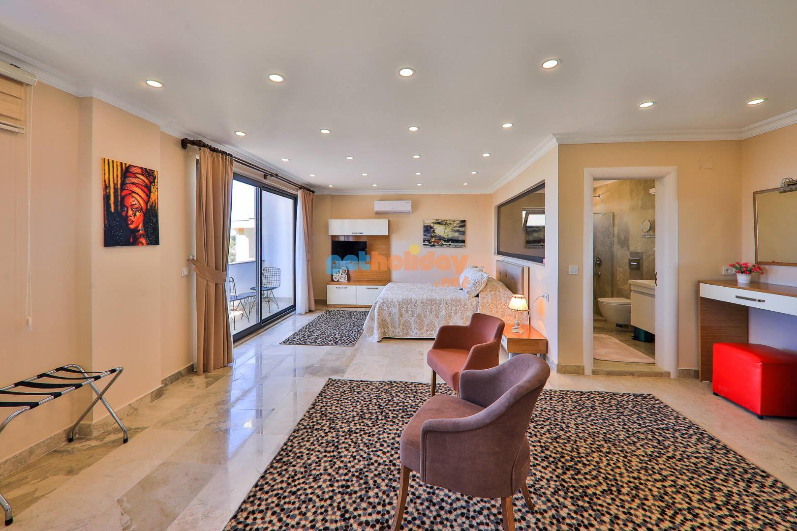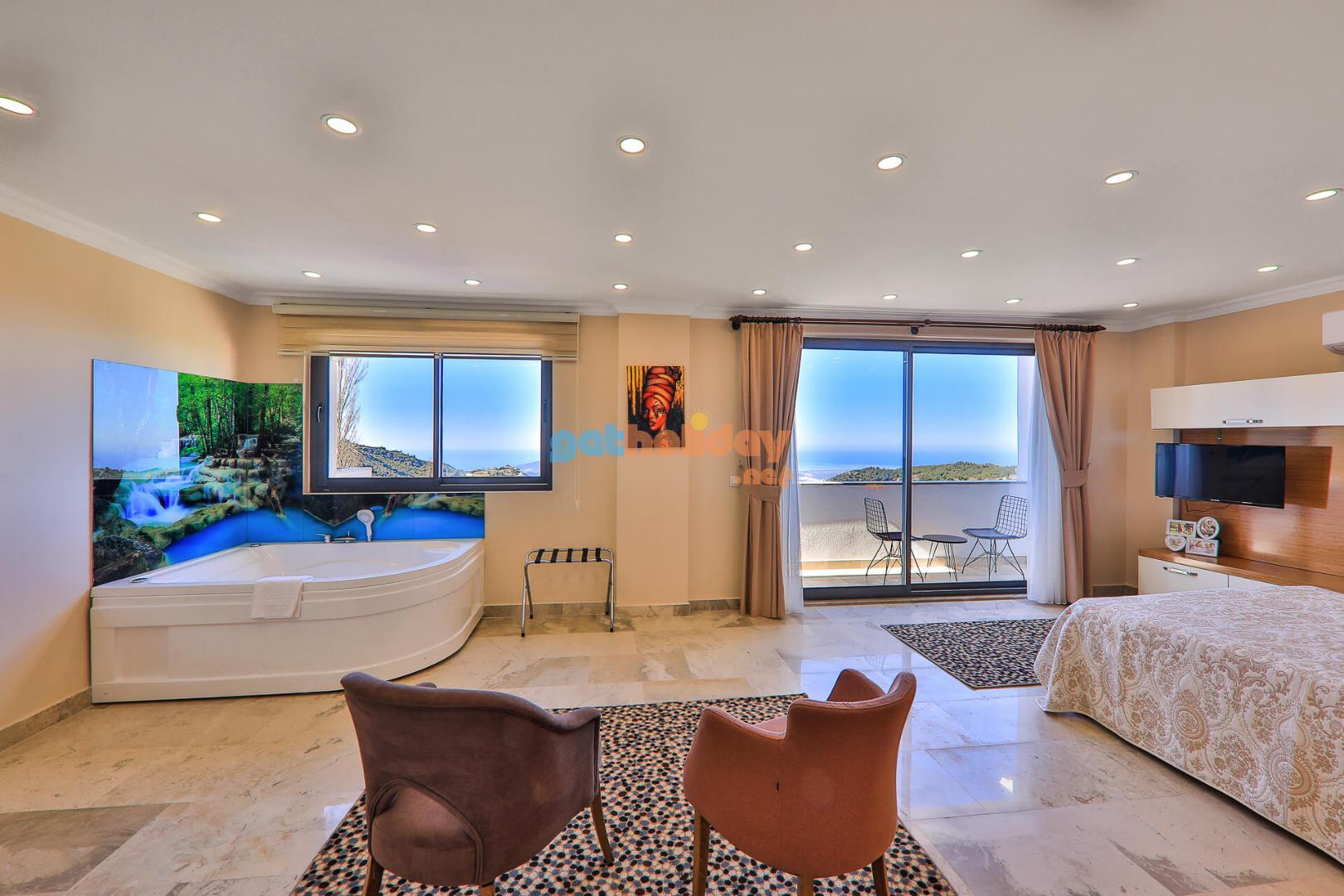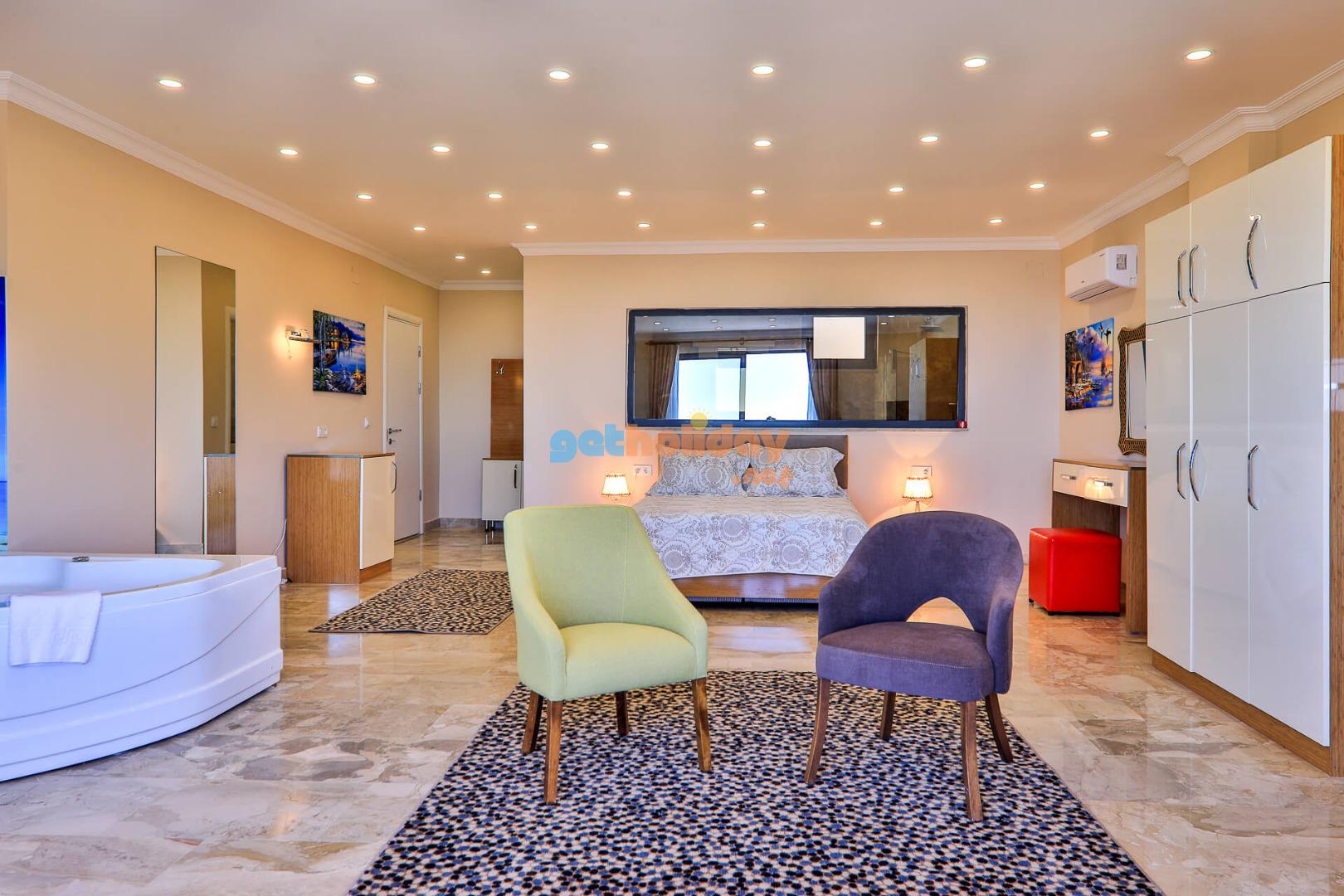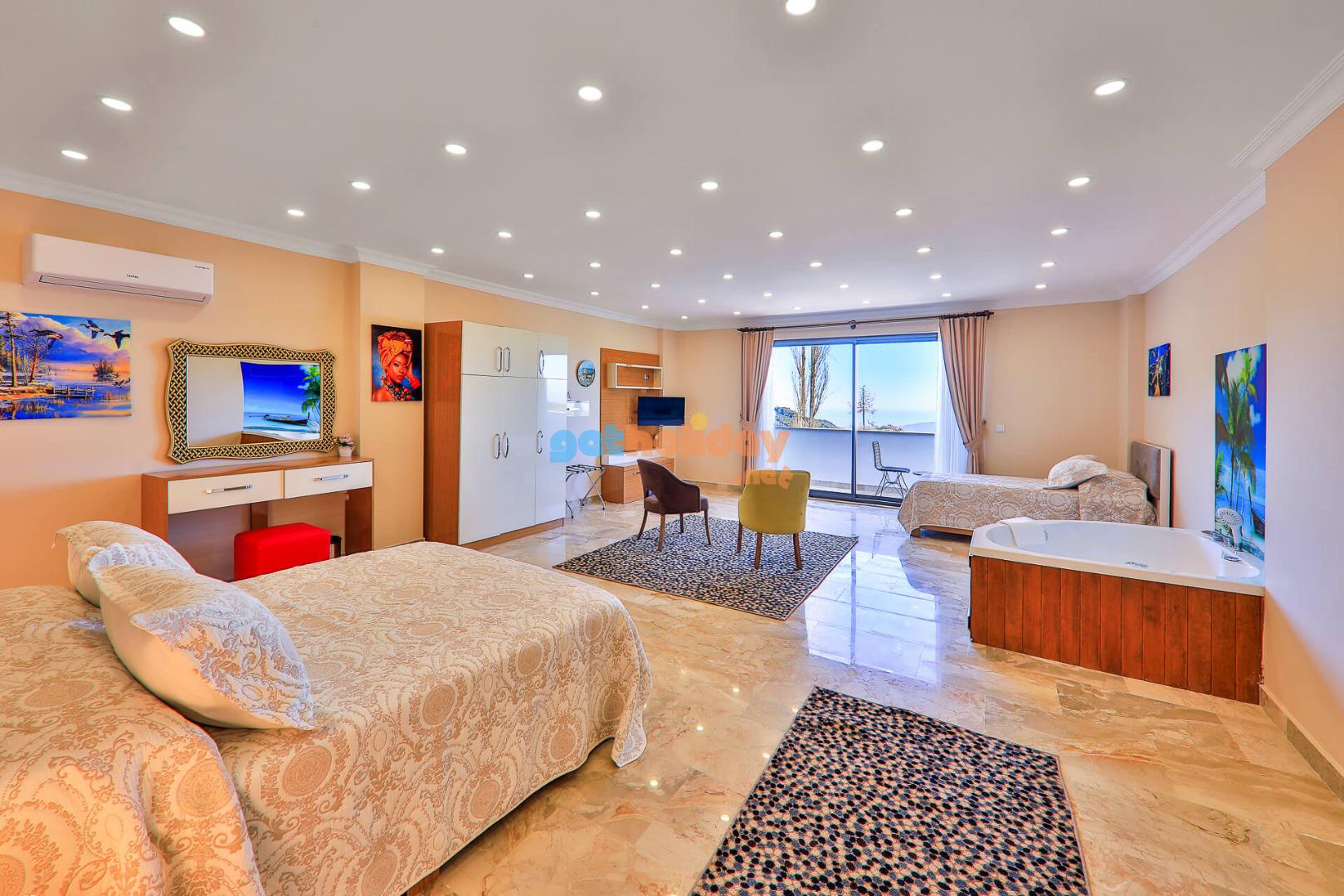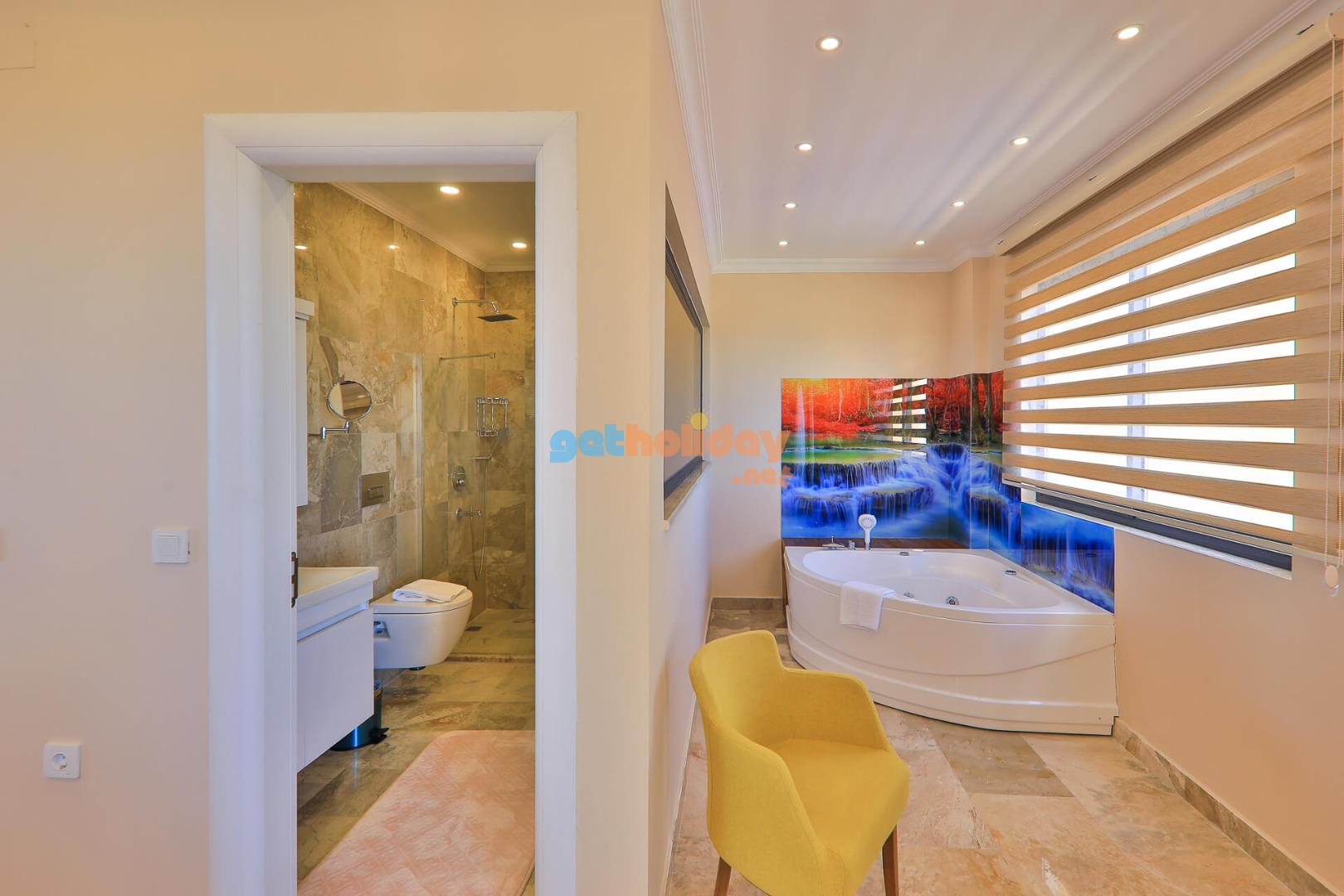 Birinci yatak odasında bir adet çift kişilik yatak, bir adet tek kişilik yatak, jakuzi ve banyo bulunmaktadır.