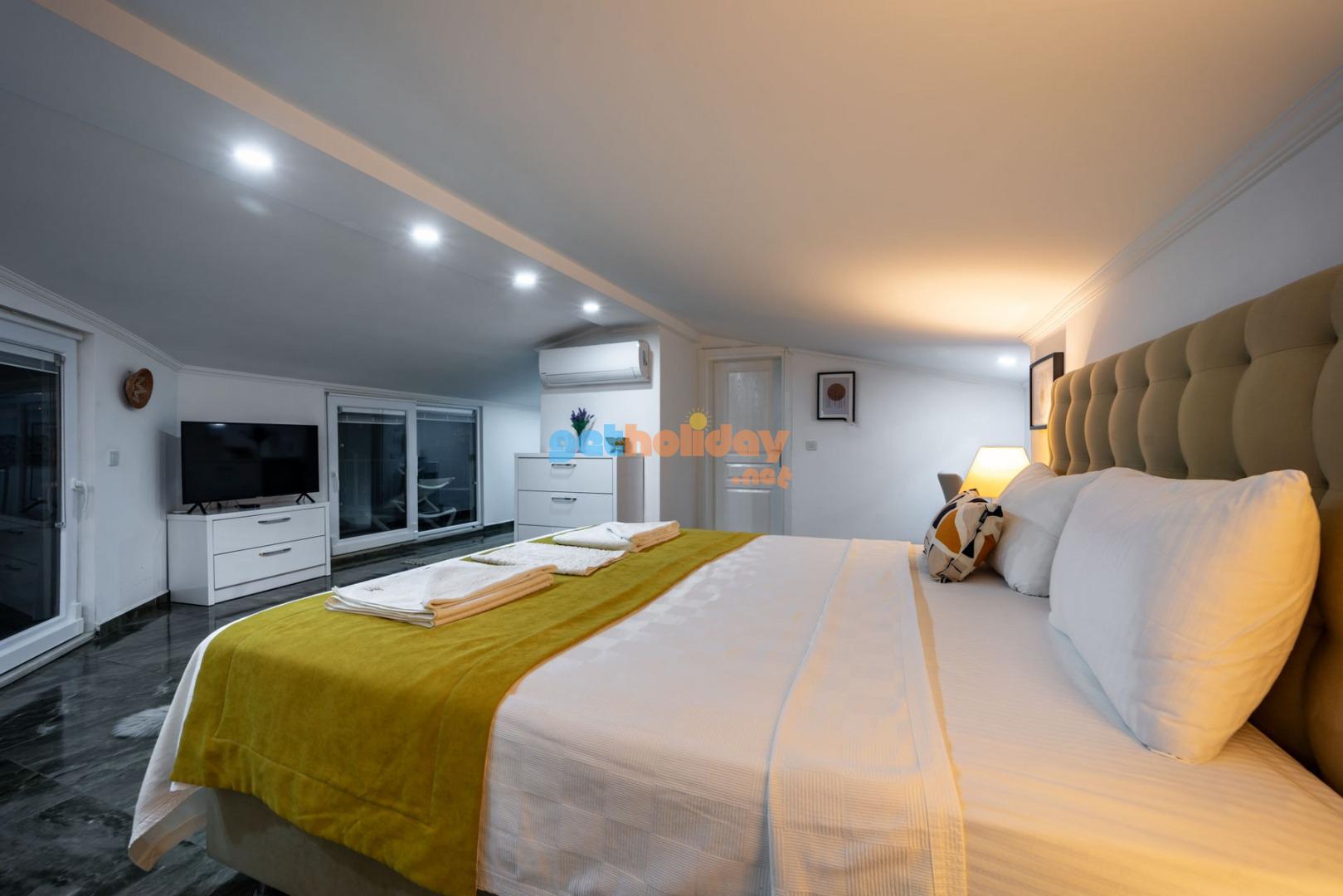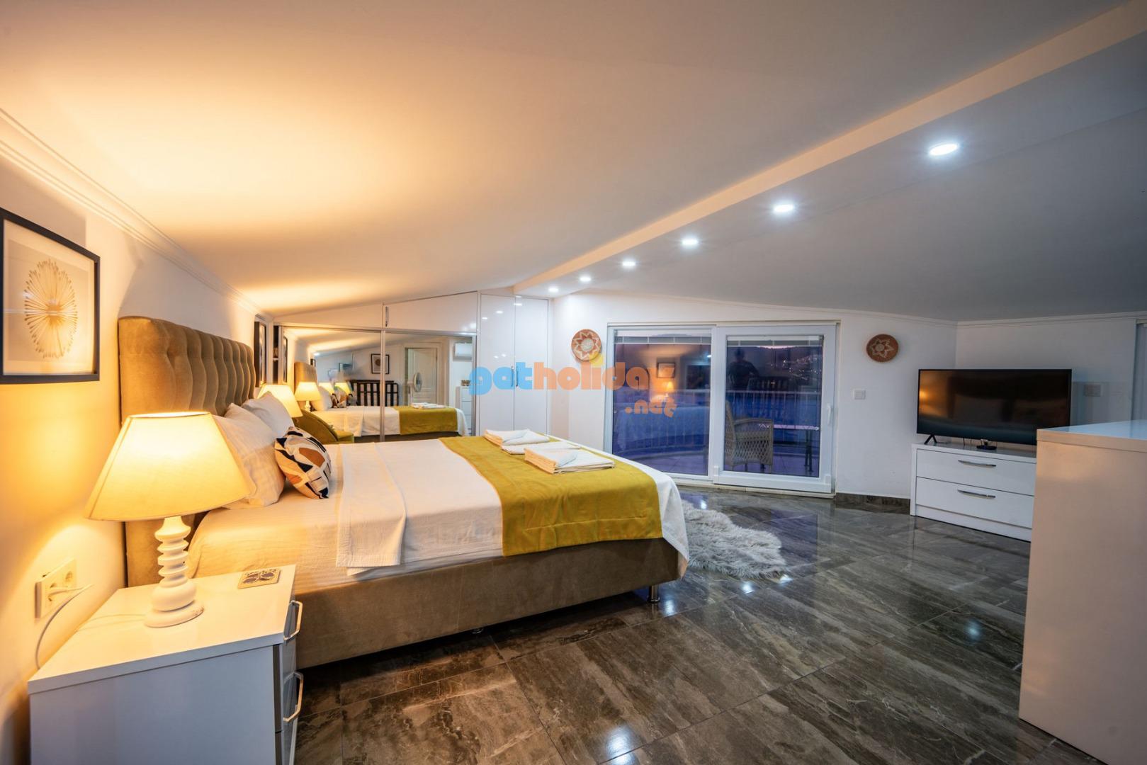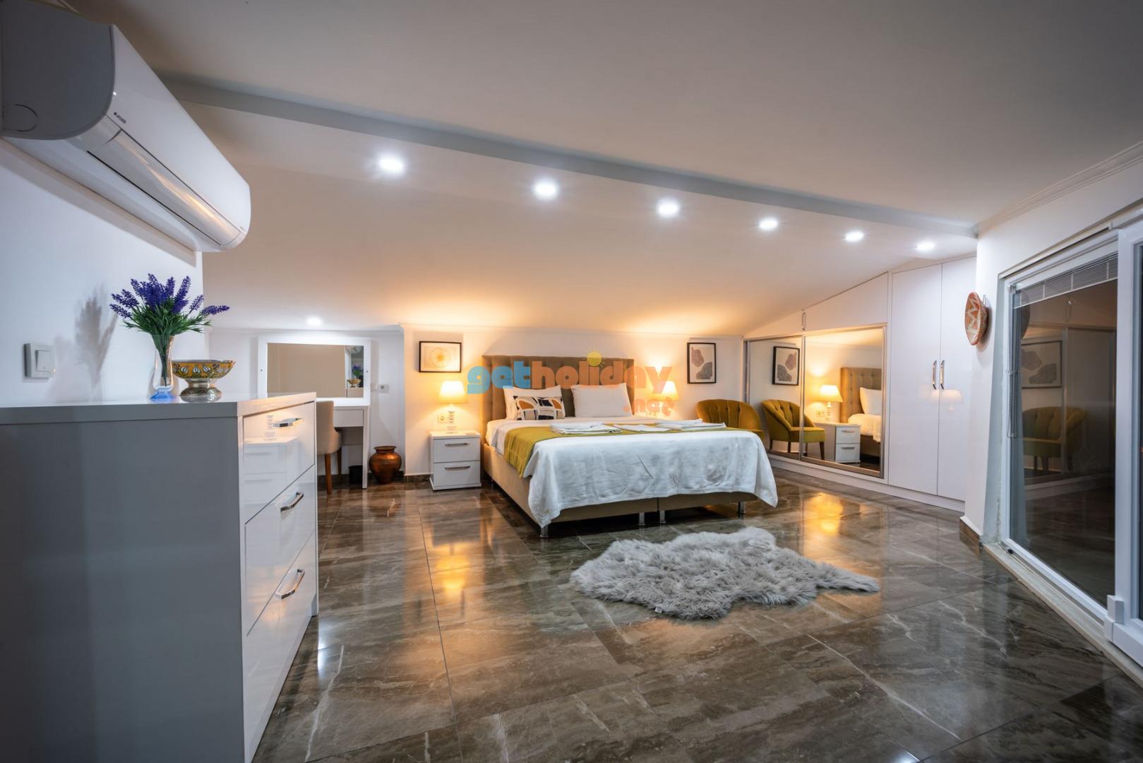 Villanın modern iç tasarımı, şık detaylarla tamamlanmış olup konforlu bir tatil için her şey düşünülmüştür. Deniz manzarasına karşı kahvaltı yapabilir, gün boyu özel havuzda serinleyerek tatilin keyfini çıkarabilirsiniz. Merkeze kolay ulaşımı sayesinde, restoranlar, kafeler ve alışveriş noktaları da birkaç dakika uzaklıkta.