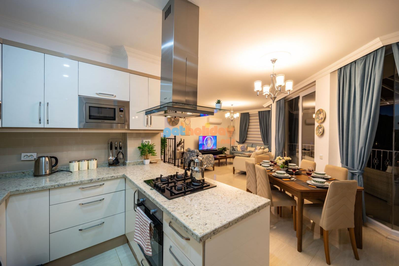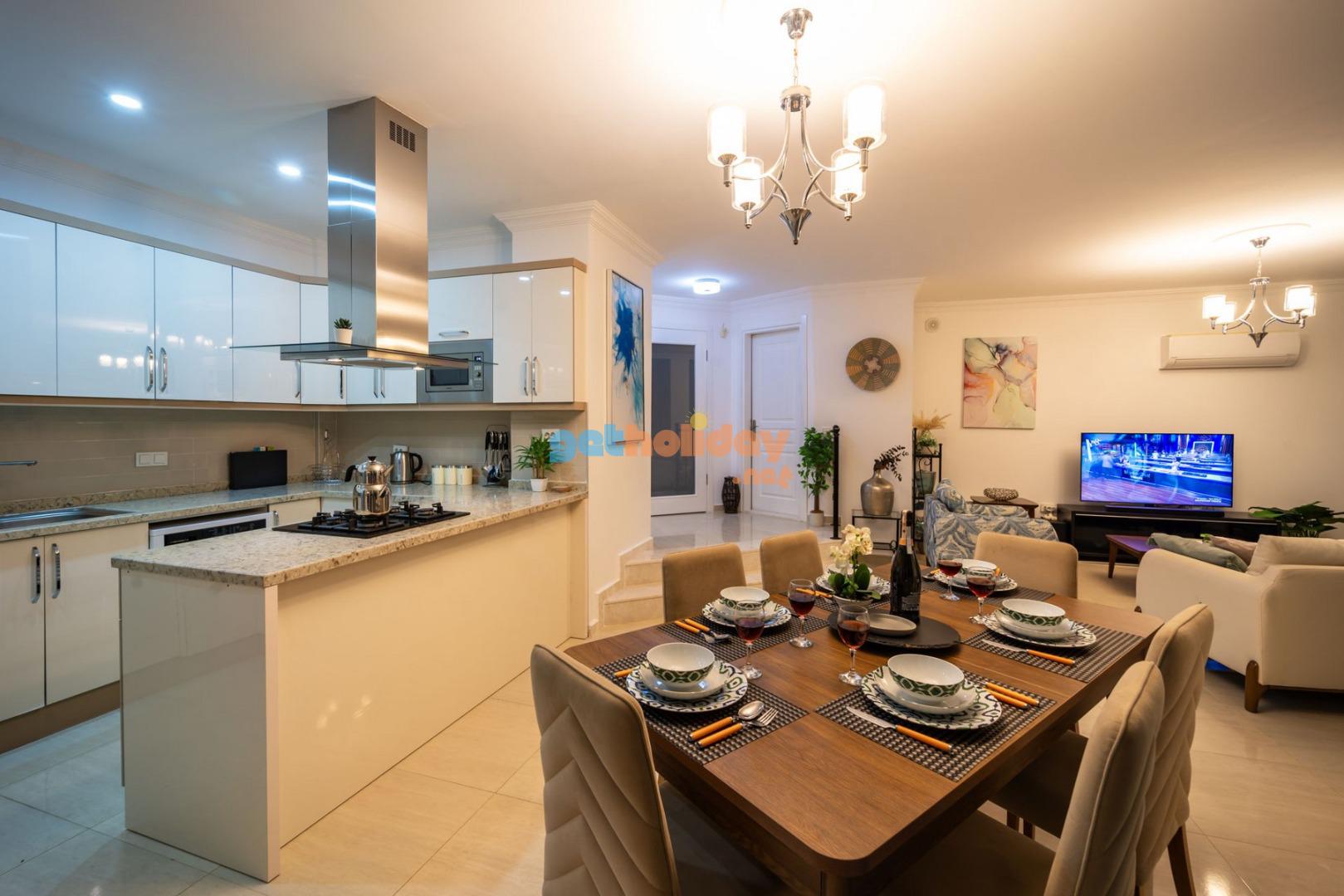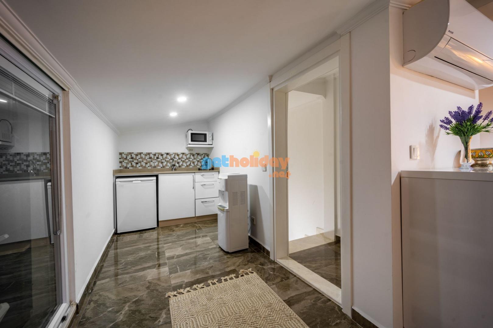 Villanın modern iç tasarımı, şık detaylarla tamamlanmış olup konforlu bir tatil için her şey düşünülmüştür. Deniz manzarasına karşı kahvaltı yapabilir, gün boyu özel havuzda serinleyerek tatilin keyfini çıkarabilirsiniz. Merkeze kolay ulaşımı sayesinde, restoranlar, kafeler ve alışveriş noktaları da birkaç dakika uzaklıkta.